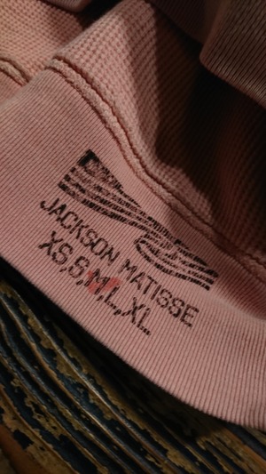 一見、ヴィンテージと見間違えるほど雰囲気ある1着。裏はサーマル仕様になったモデルになります。JACKSON MATISSEのヴィンテージ加工されたスウェットに魅了される方も多く、一見ヴィンテージのよう。男女共にオススメなスウェットです。