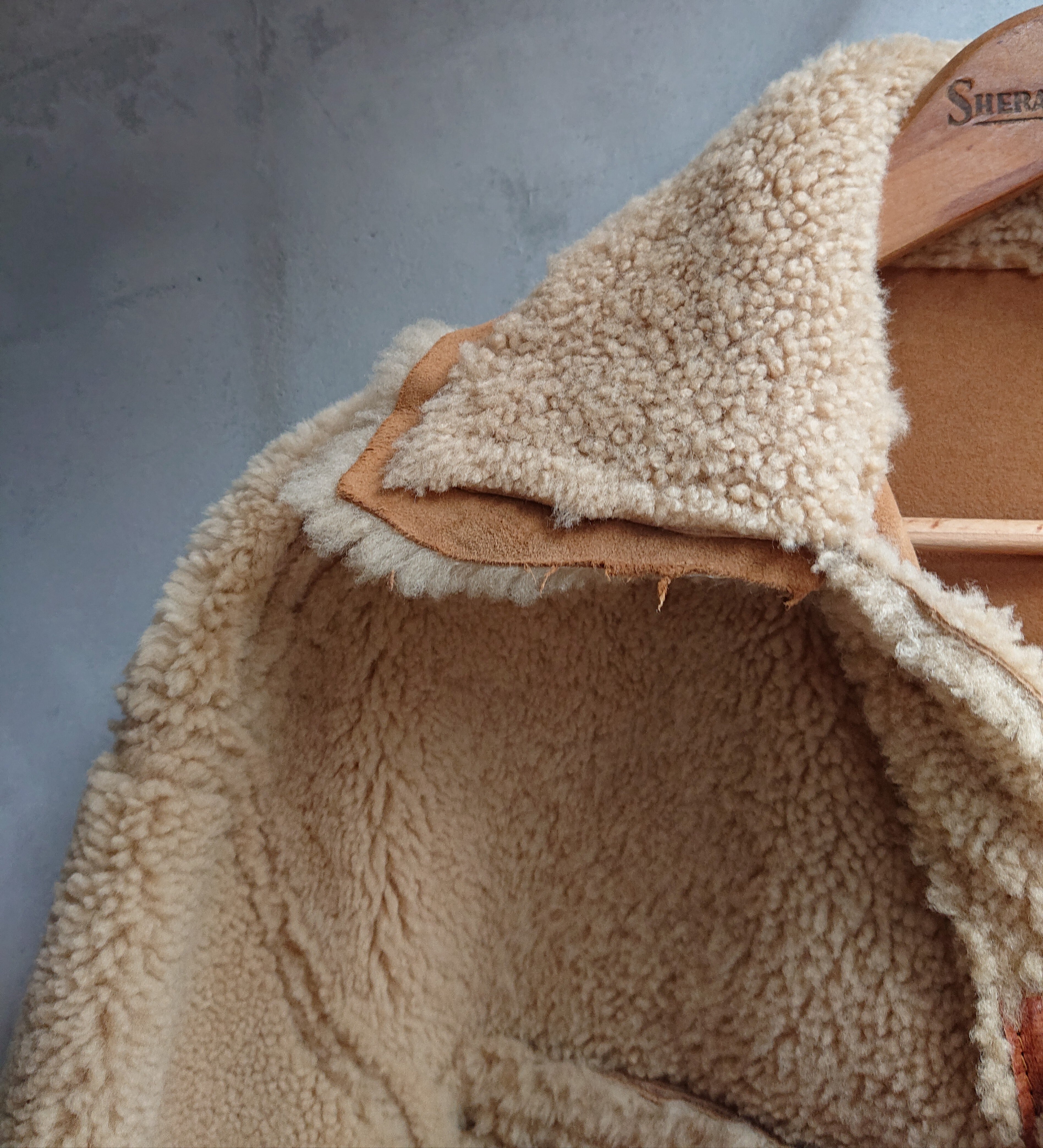 リーバ◯スのオリンピックムートンをモチーフにバイヤー時代にアメリカで買い付けた前所有者(おそらく70年代のヒッピー)がリバーシブル仕様にカスタムしたムートンジャケットから着想を得たリバーシブルムートンジャケット"LUKE(ルーク)"。