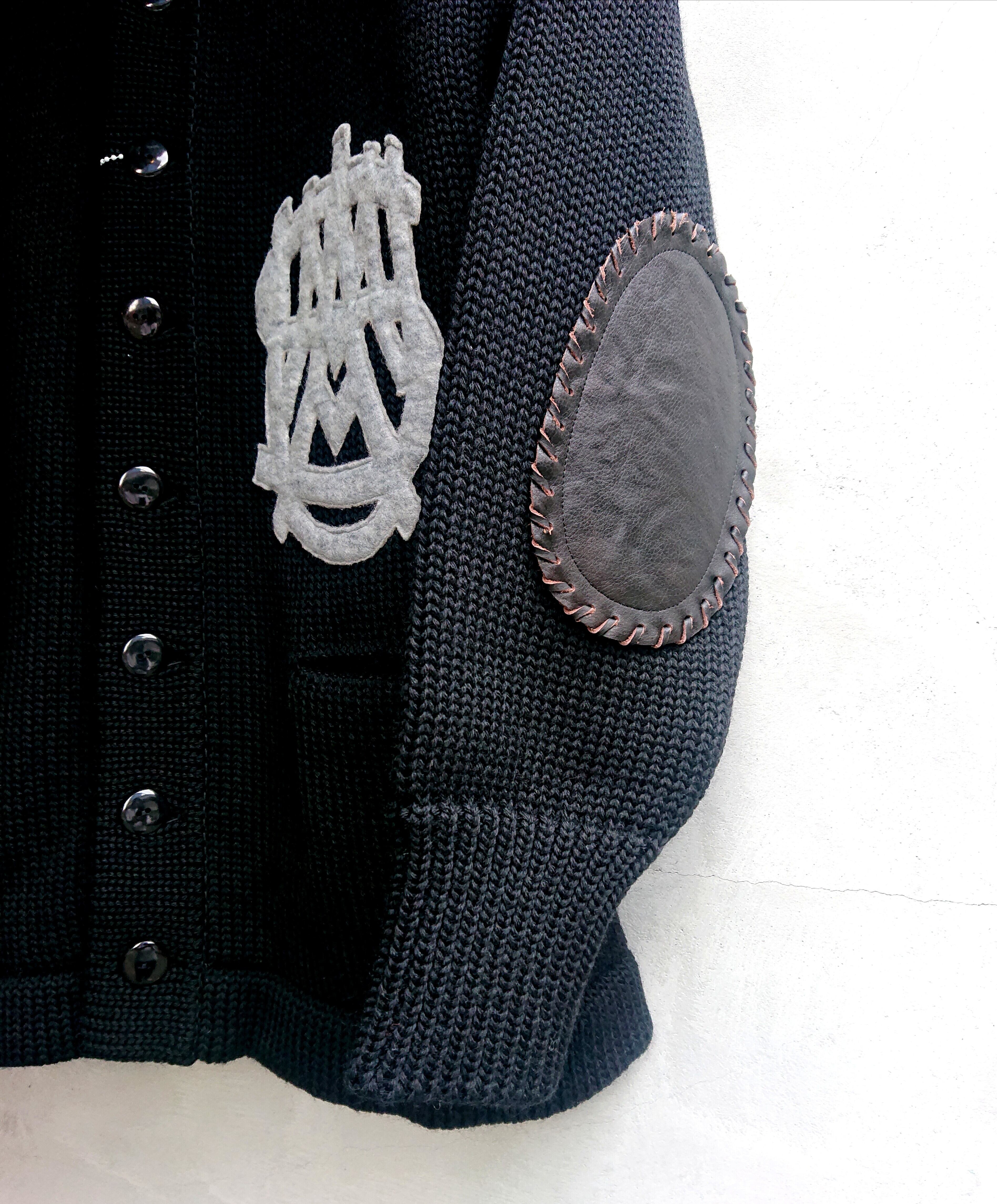 1930年代以前に存在した、USMAウェストポイントパッチを縫い付けた手編みのカーディガン。ディティールは、30年代以前のハーレー物に多く見られる仕様、本物のガサガサした手触りが心に刺さる。
