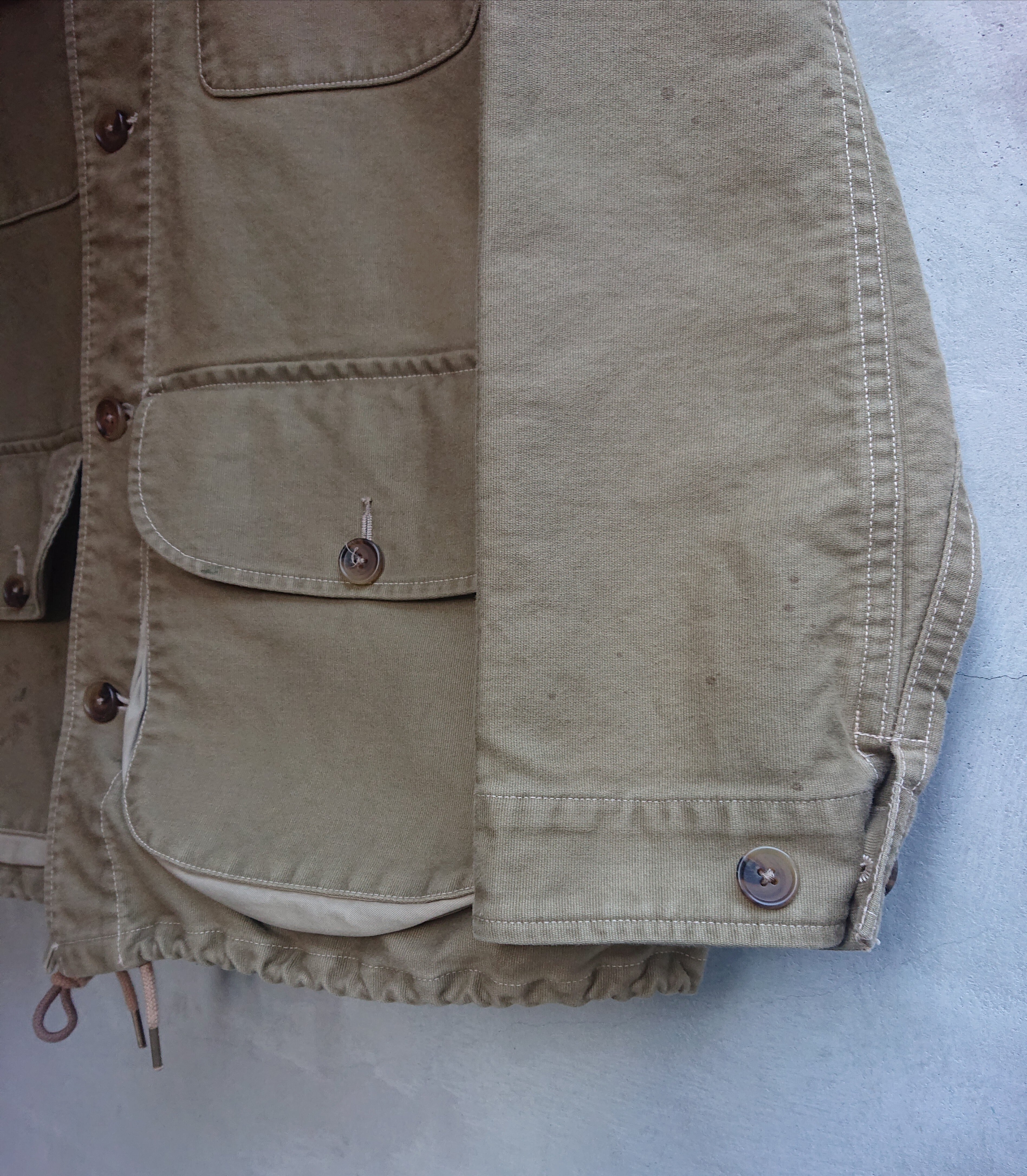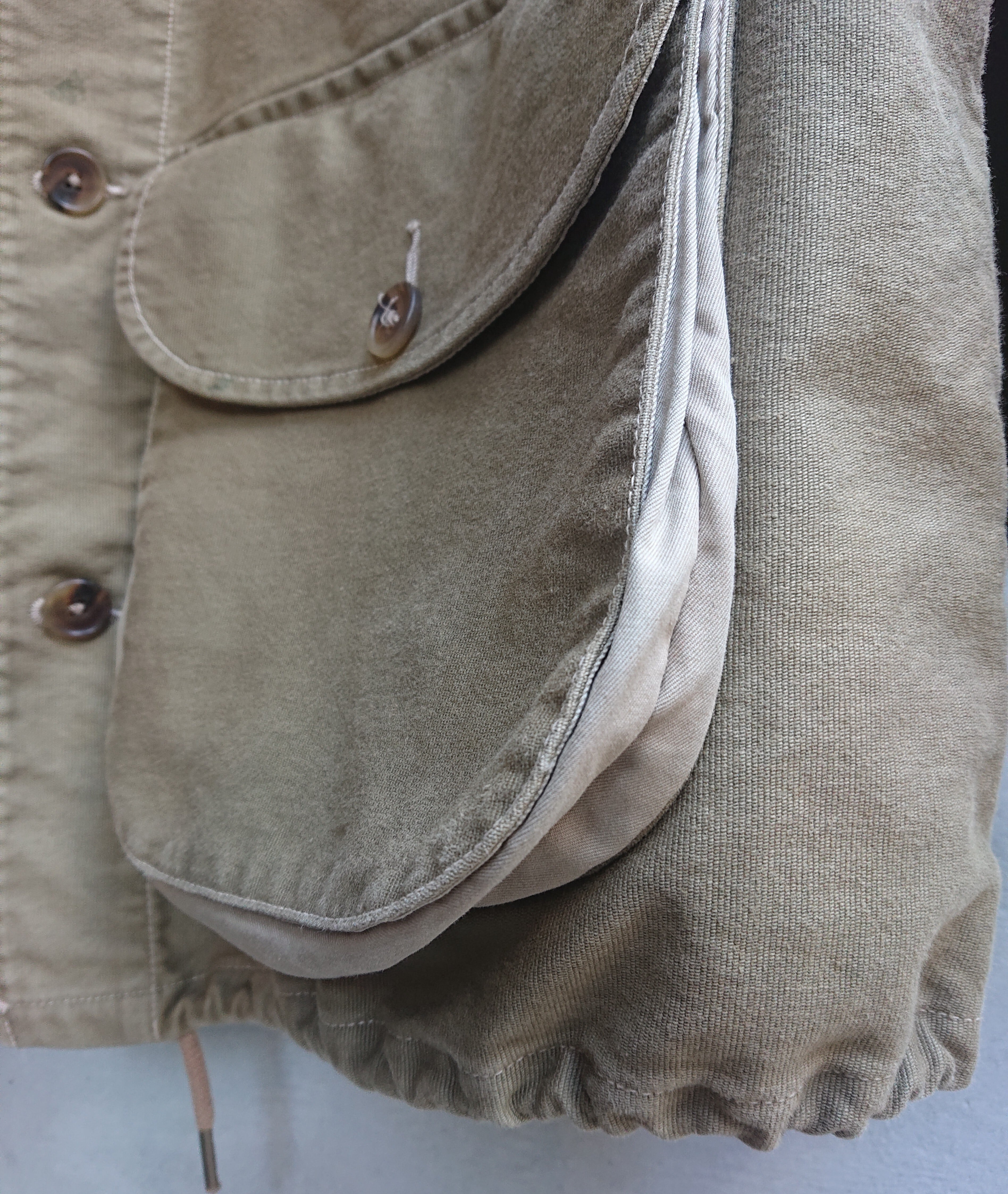 今回製作は、寒い森林を耐えしのぐ、裏起毛、剛健なるジャングルクロス使用のスペシャルであり、ワーデンジャケット史における最初期にのみ存在したスペシャルバージョン。