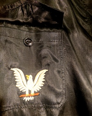 OKINAWA、 HAWAII、 HONG KONG、 PHILIPPINESを鷹を囲むように刺繍。両胸のポケットにもワンポイントで小さな鷹が入ります。