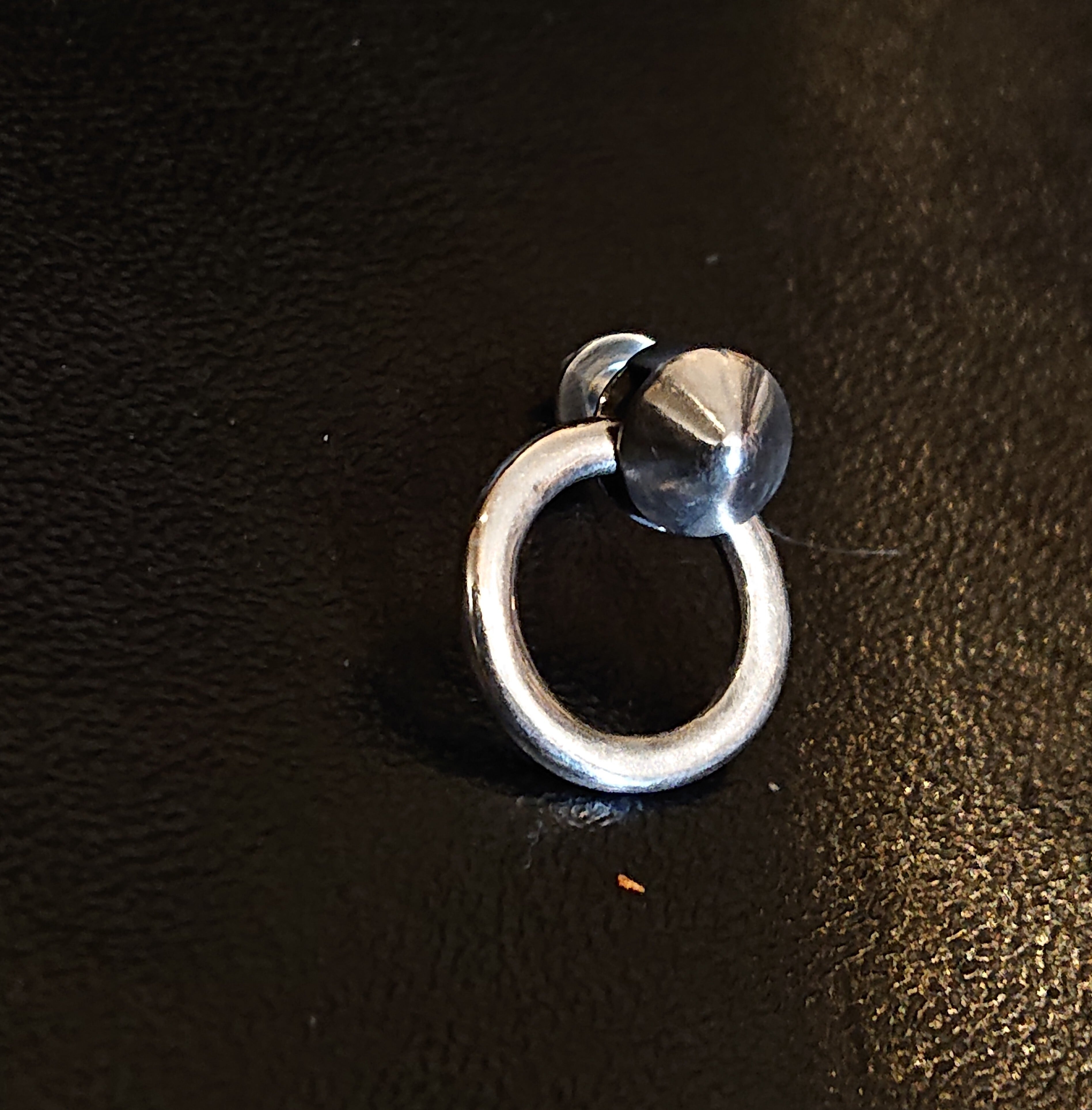 丸みを帯びたUKスタイルのスタッズとボリュームのある丸リングの組み合わせが、無骨さの中にエレガントさを感じます。