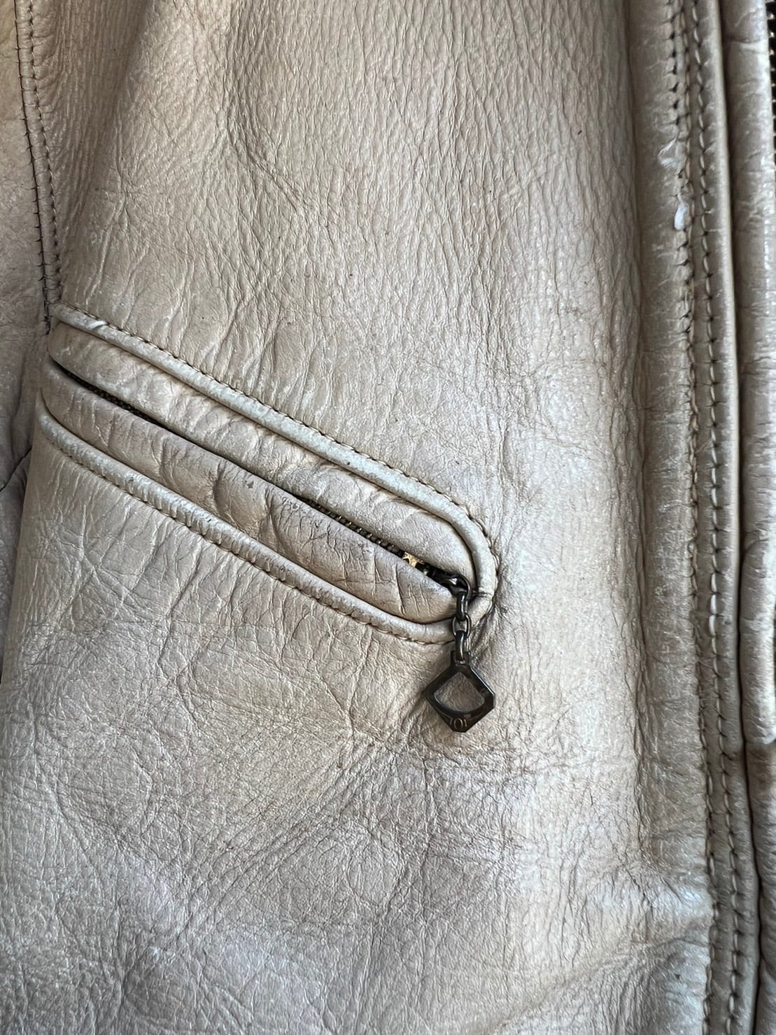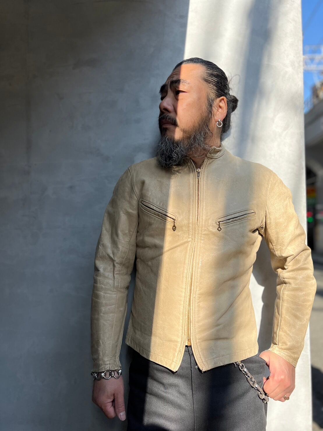 なります。BATESの逆ハのシングルライダースは昔から憧れもあり、変わらず男前なレザージャケットだと思います。カラーはアイボリー。