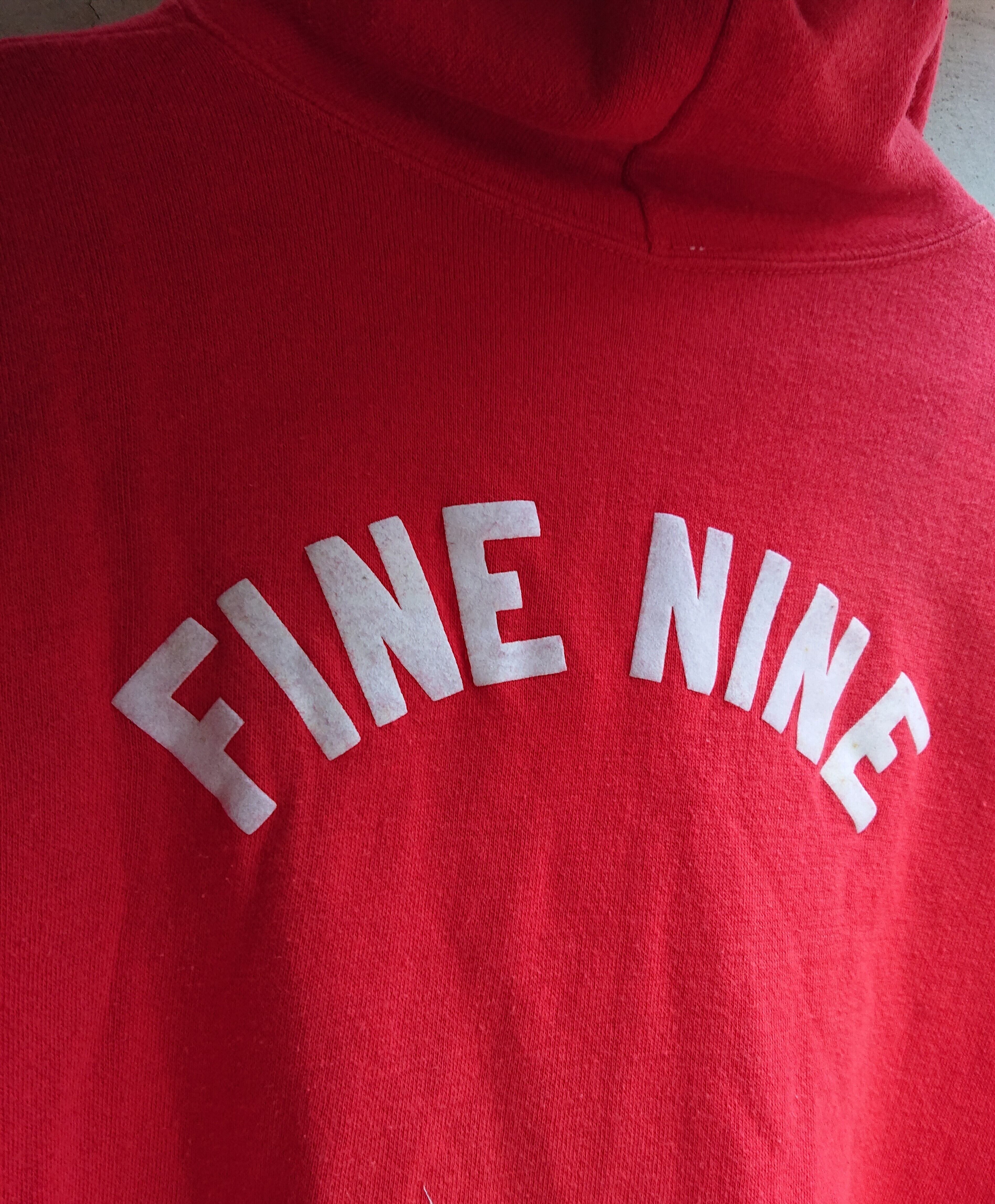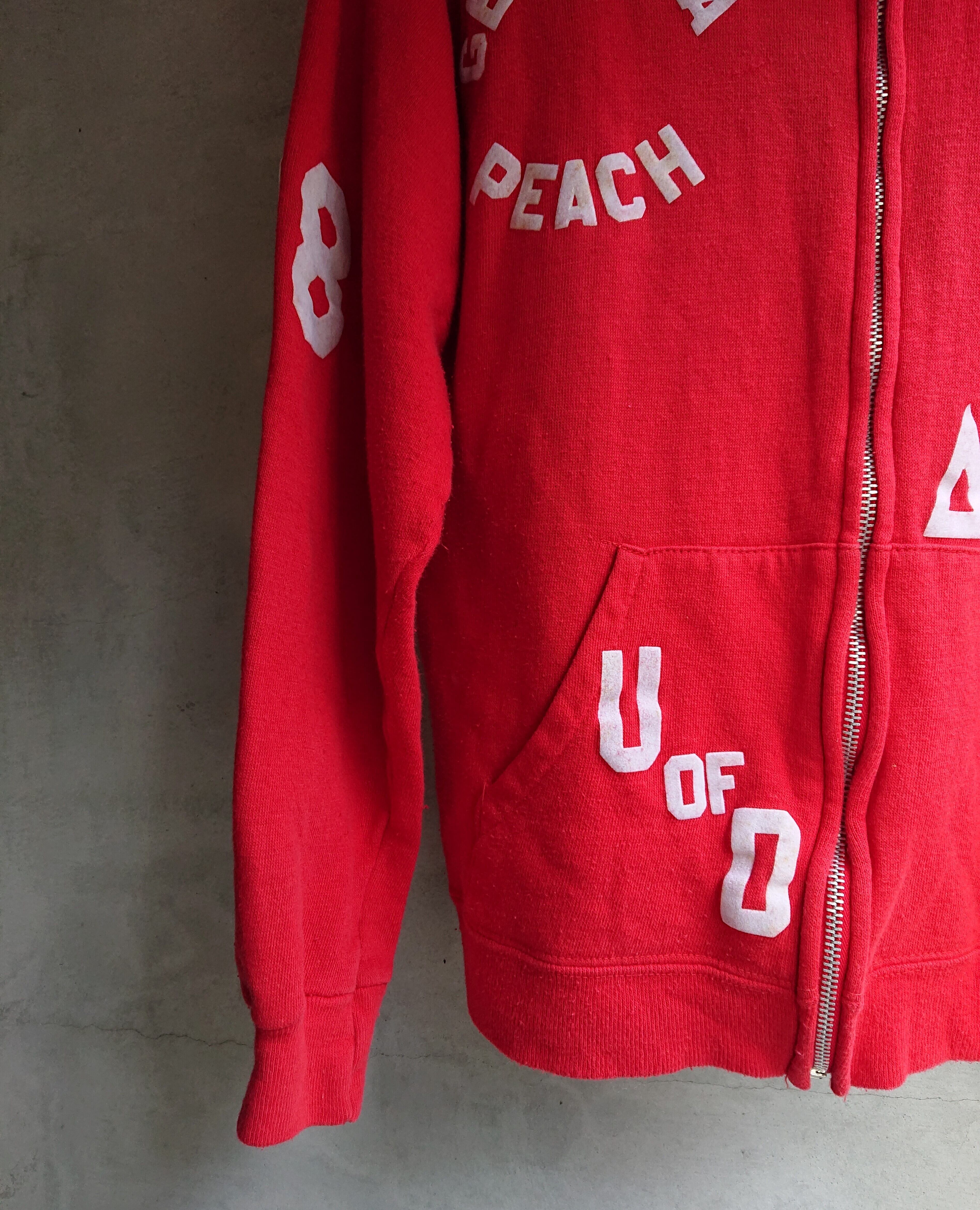 70年代 ジップアップスウェットパーカーになります。前後に両腕、フード内側にフロッキープリントが入ります。ここまでプリントが入るのも