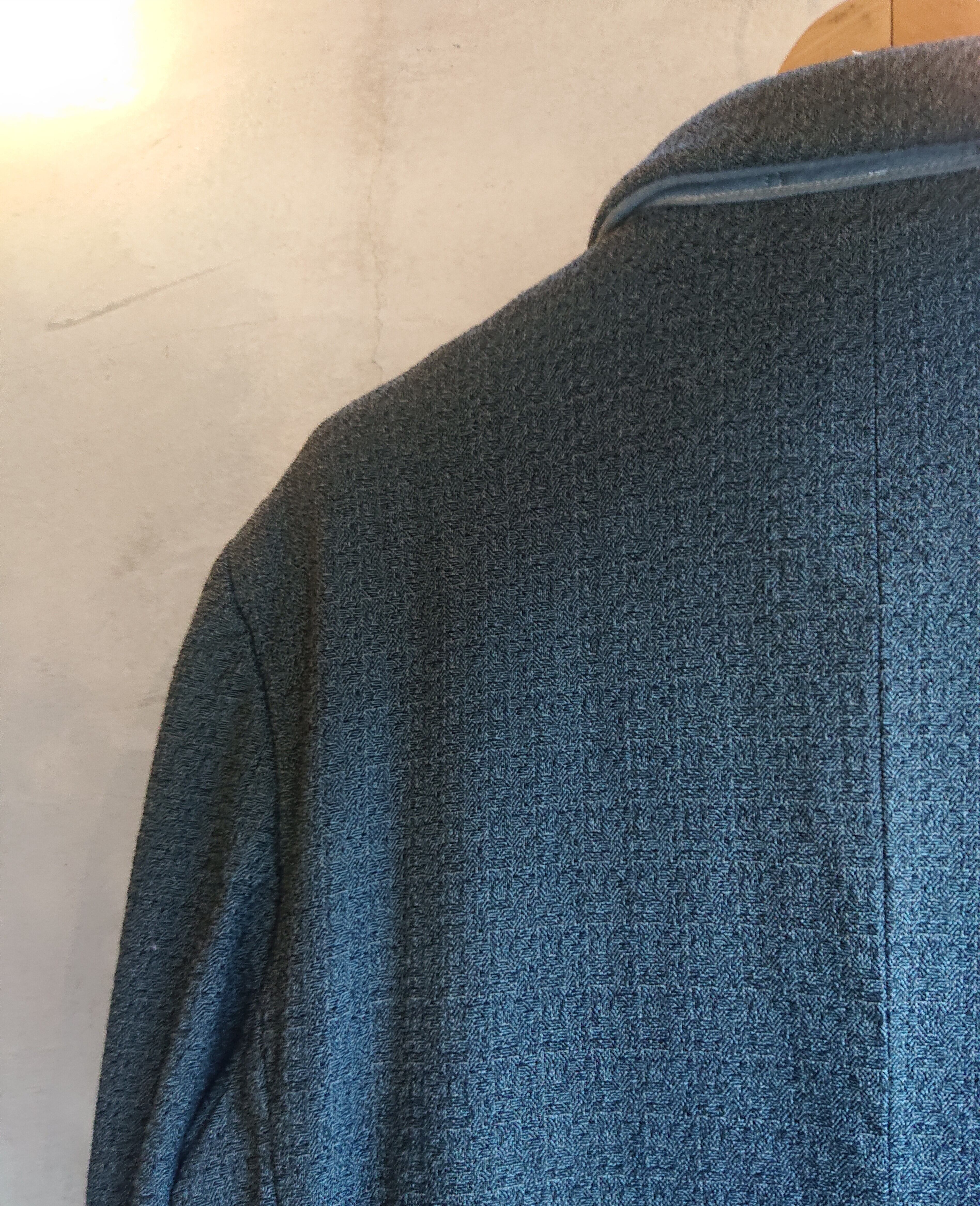 ウール素材で前身ごろ部分が厚みがあり、おそらく中綿が入ってると思われます。