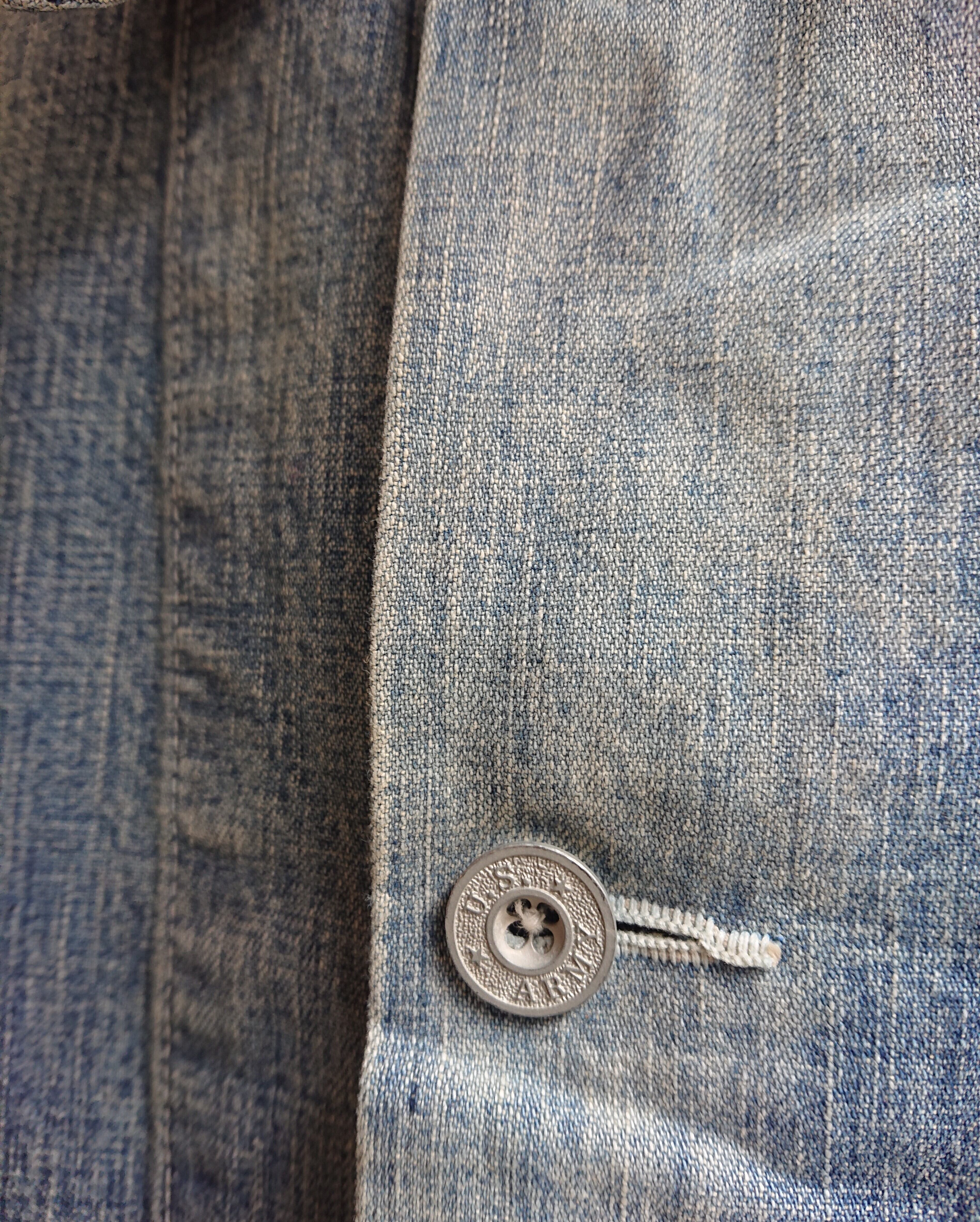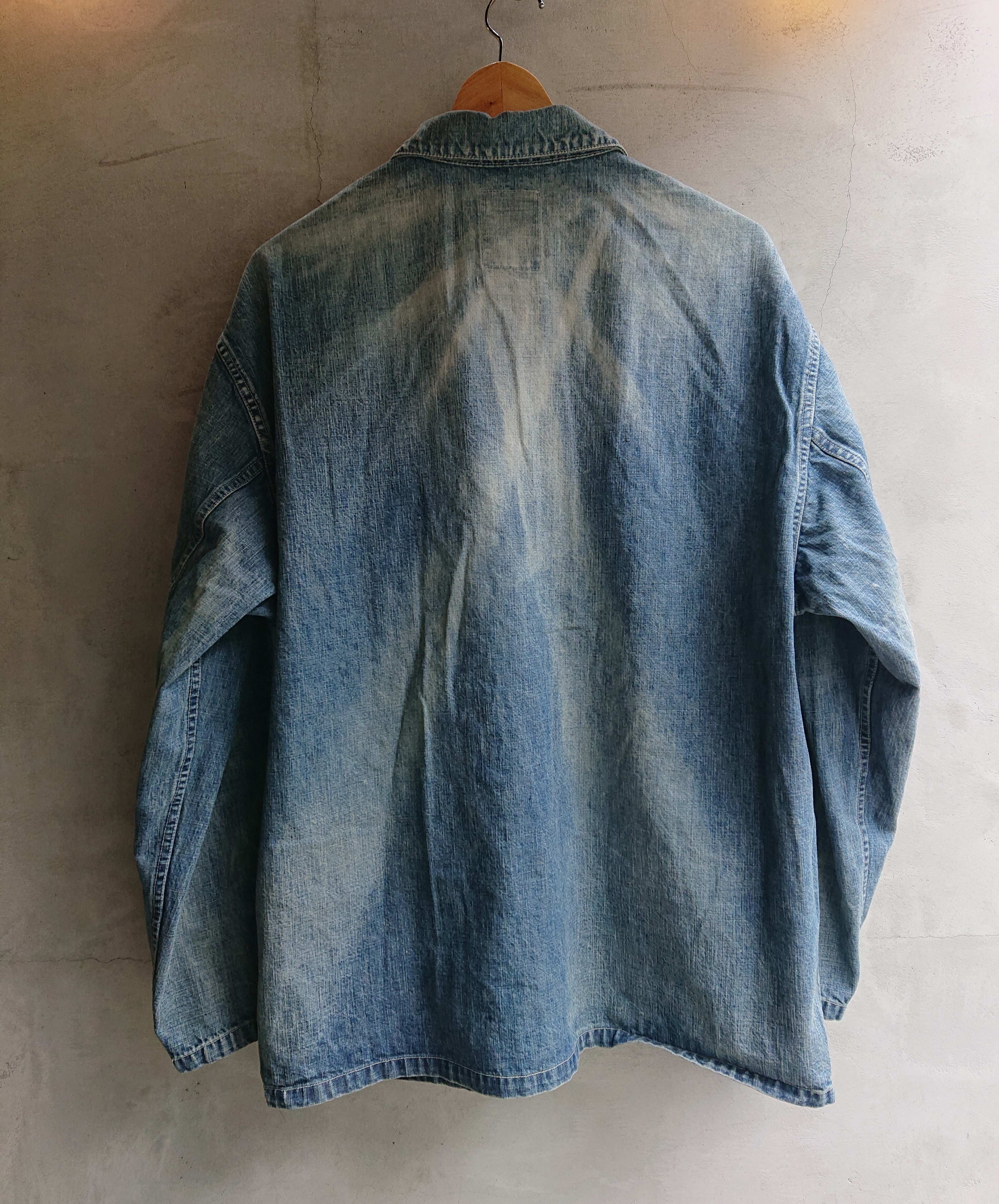 US ARMYにて、プルオーバーに続き採用された前開きタイプのM40デニムジャケット。ヴィンテージ見 られるカジュアルさの少ない肩回りと袖付けのフィ ッティングを見直し、元のイメージをもったままの カジュアルダウン。ファッション製高く、本物を感じる個体に仕上がった。 ビンテージのみに見られる放射線状に日焼けした個 体表現に何年も挑戦し続け、今回見事再現に成功。 こんなブランド独自視点の拘りも見ていただきたい 一品。