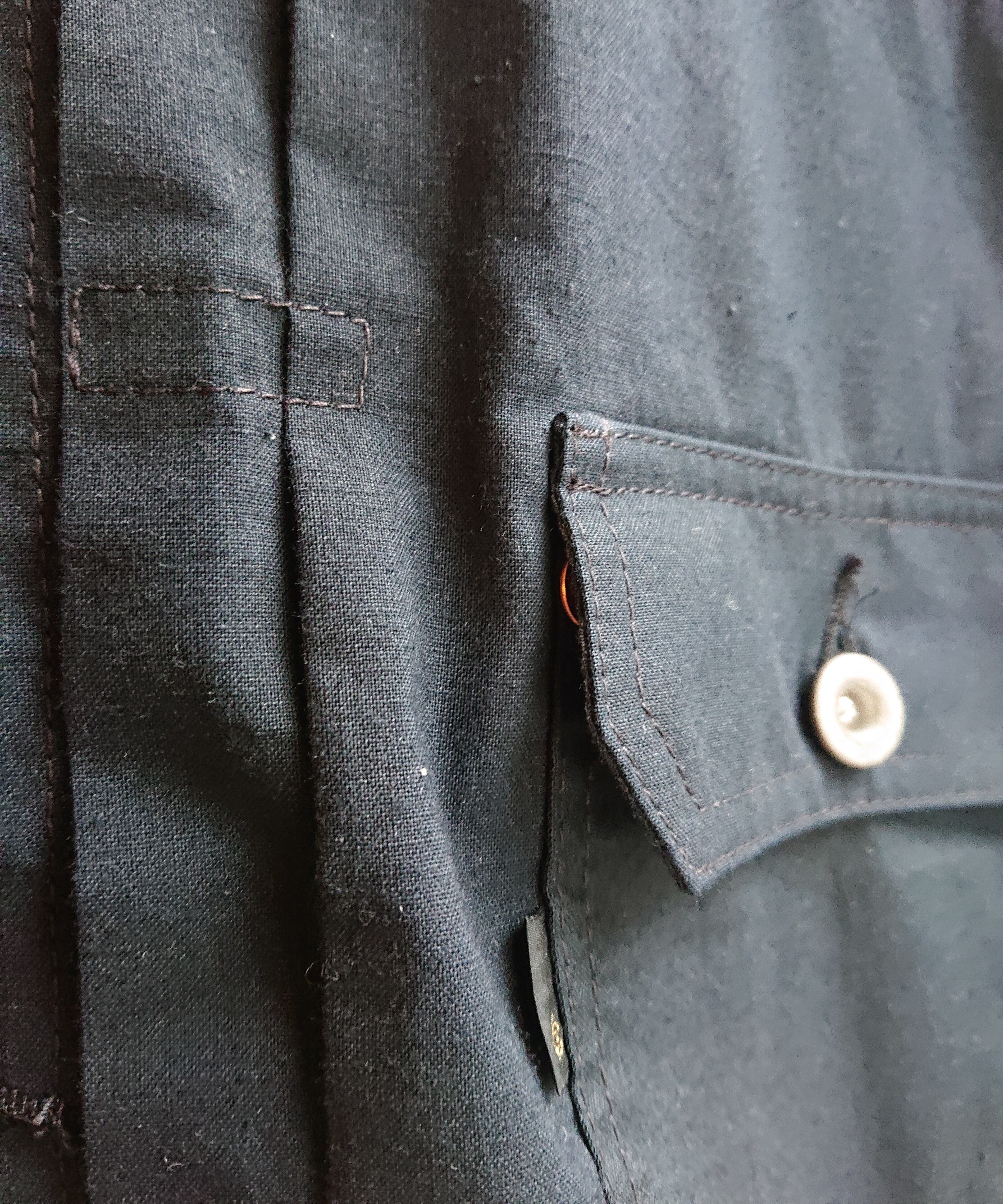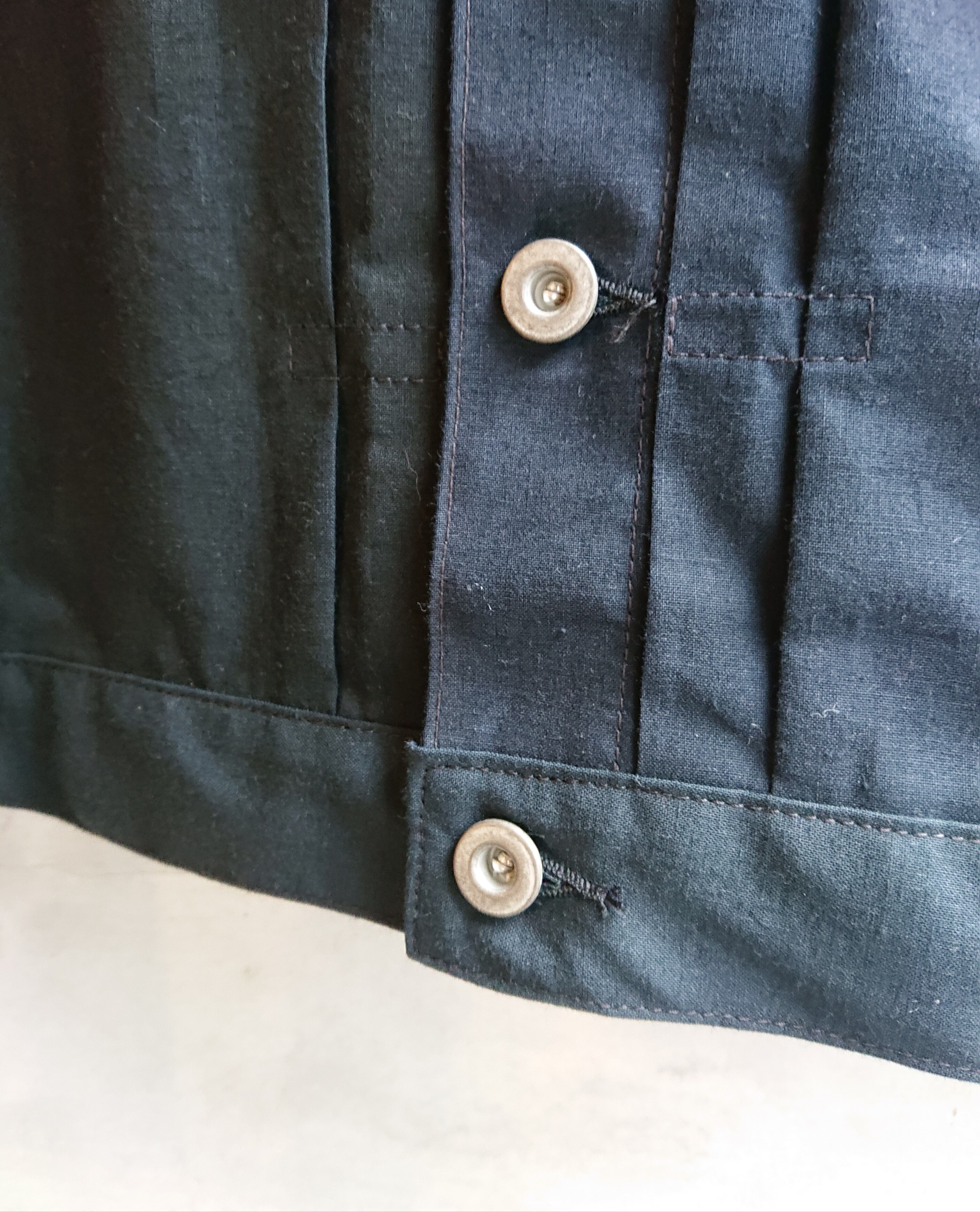 画像のステンシル部分の一部もフラップ裏や、カフスパーツ裏などに配置して製作しております。昨今、この様な素材が纏まって入手出来る事は稀で、素晴らしい素材に巡り会えて嬉しい限りです。