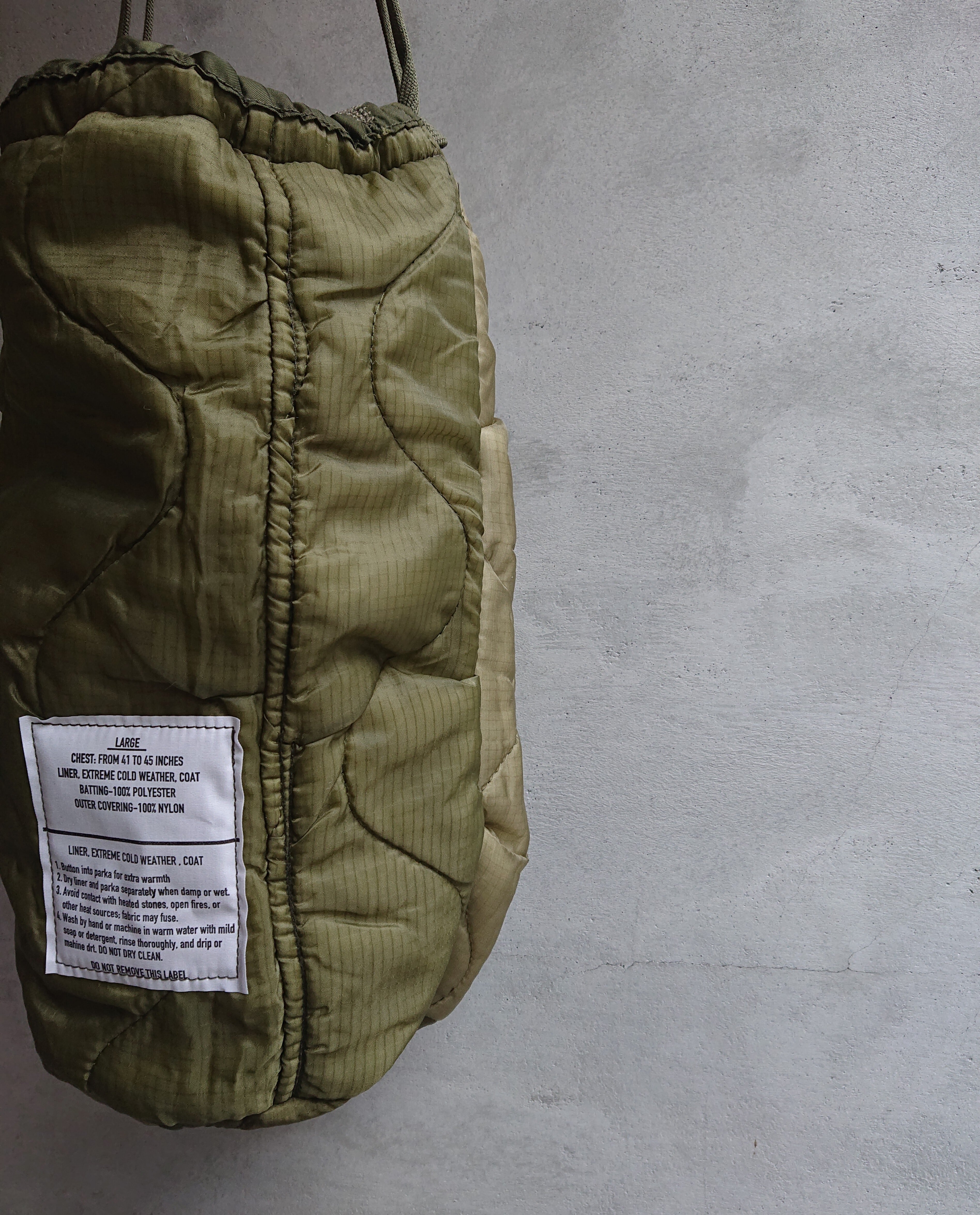 古着のミリタリーライナーをベースにバッグを