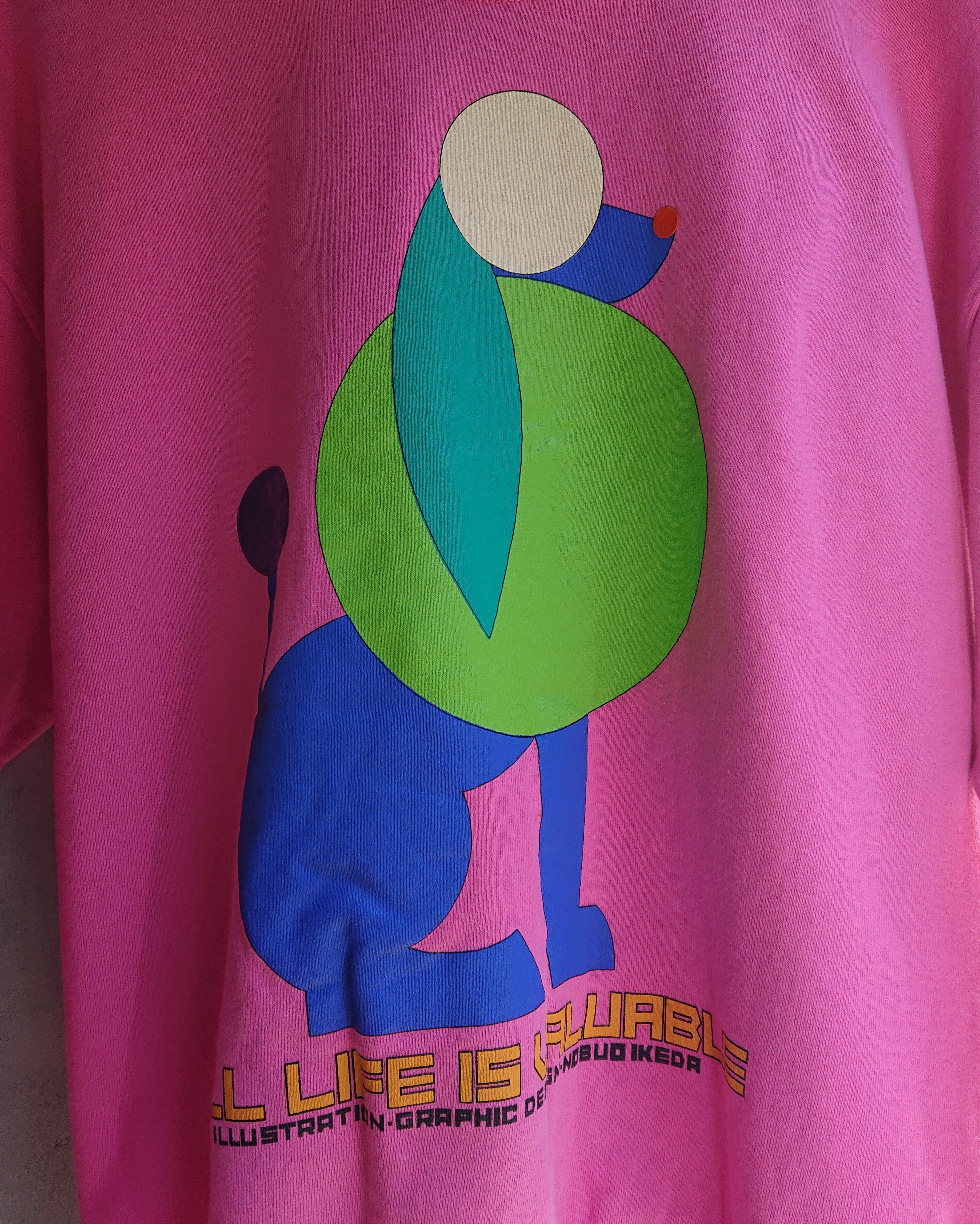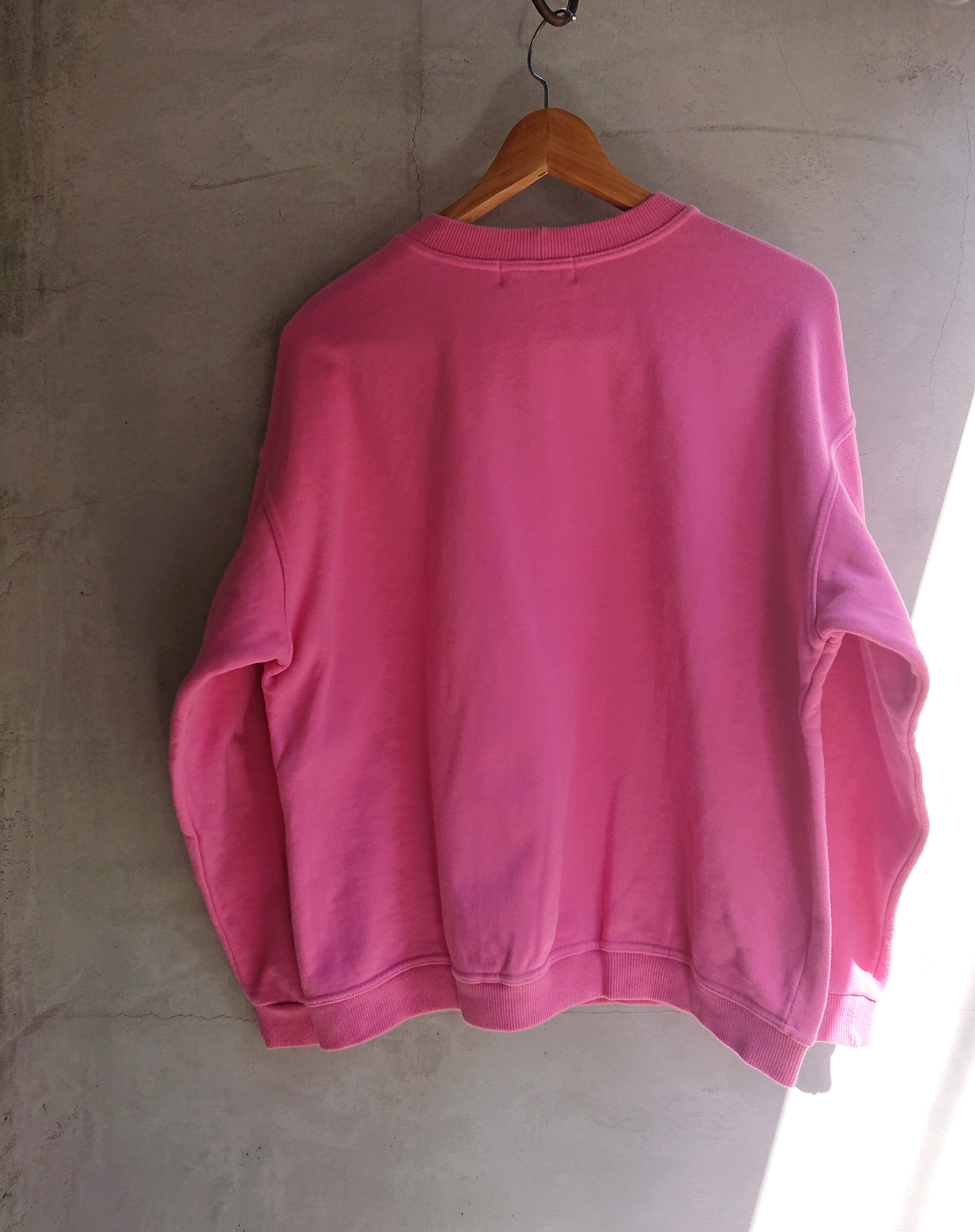 今回紹介するのはI.N. EXPRESS BY NOBUO IKEDAのプリントスウェット。ピンクカラーのボディにフロントにはいる円でデザインしたプードルっぽいプリントに左袖にはブランドネームのプリントが入ります。とにかくこのスウェットの全てが可愛いすぎます。