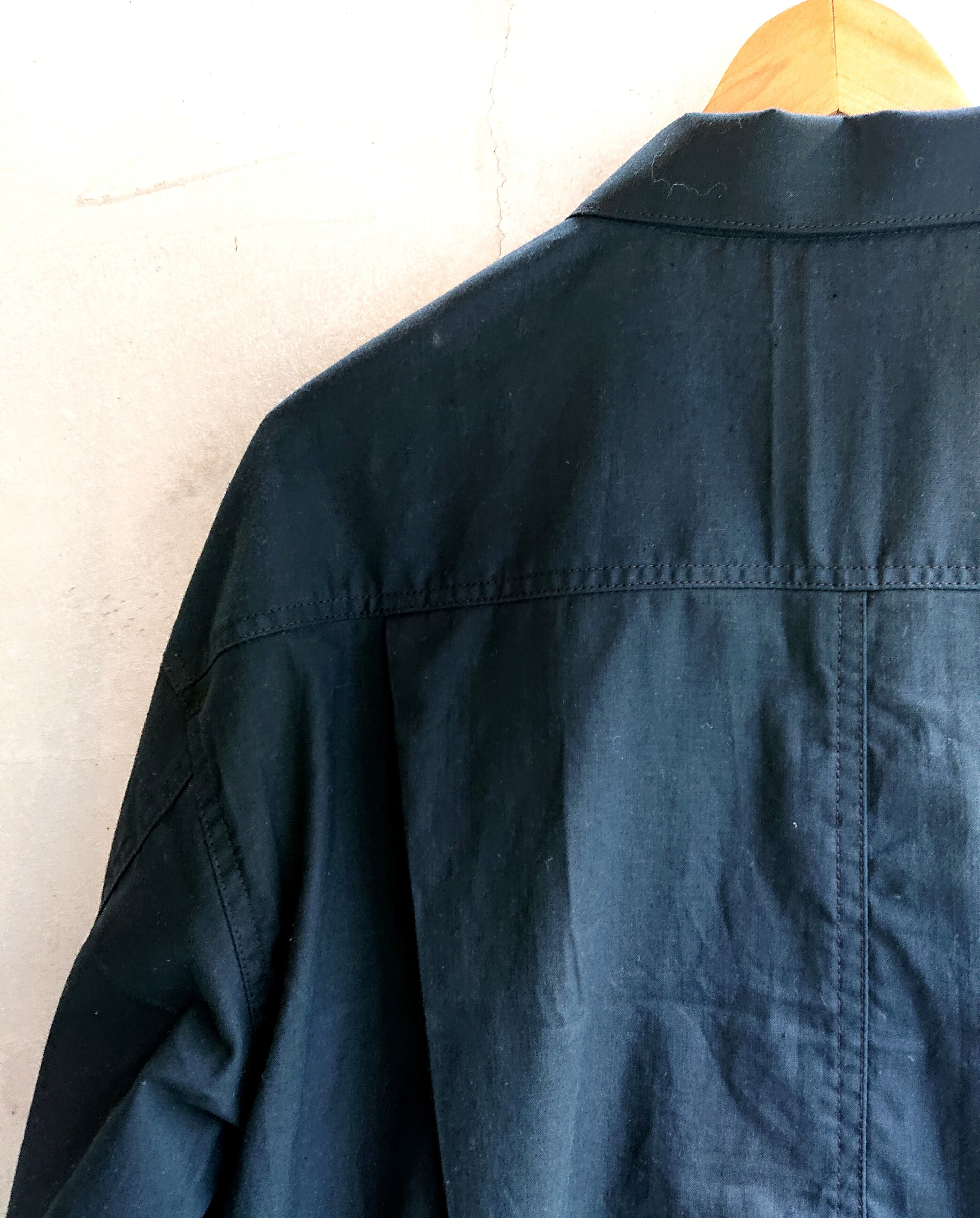 画像のステンシル部分の一部もフラップ裏や、カフスパーツ裏などに配置して製作しております。昨今、この様な素材が纏まって入手出来る事は稀で、素晴らしい素材に巡り会えて嬉しい限りです。セカンドモデルはブラックカラーとホワイトカラーの二色展開となります。