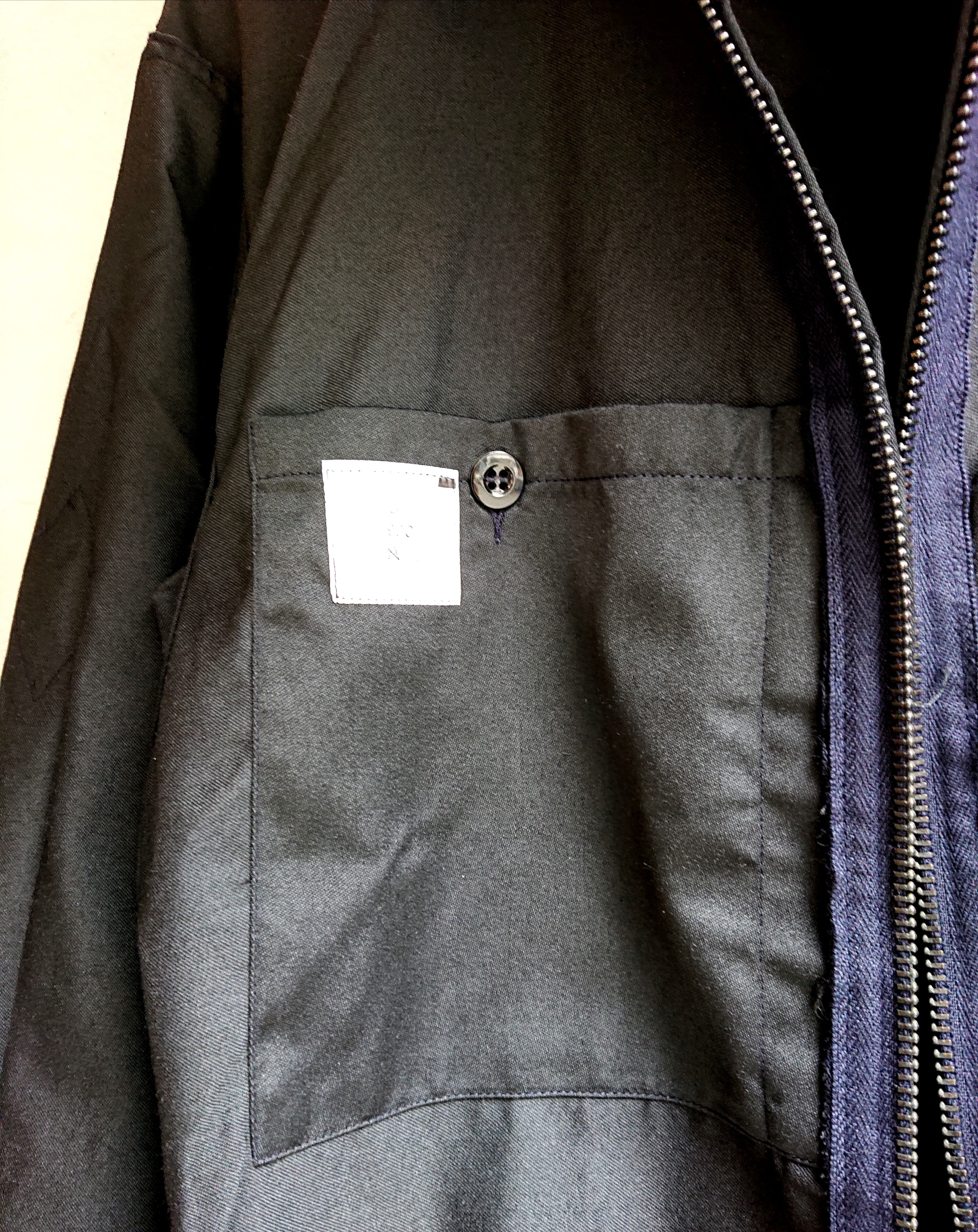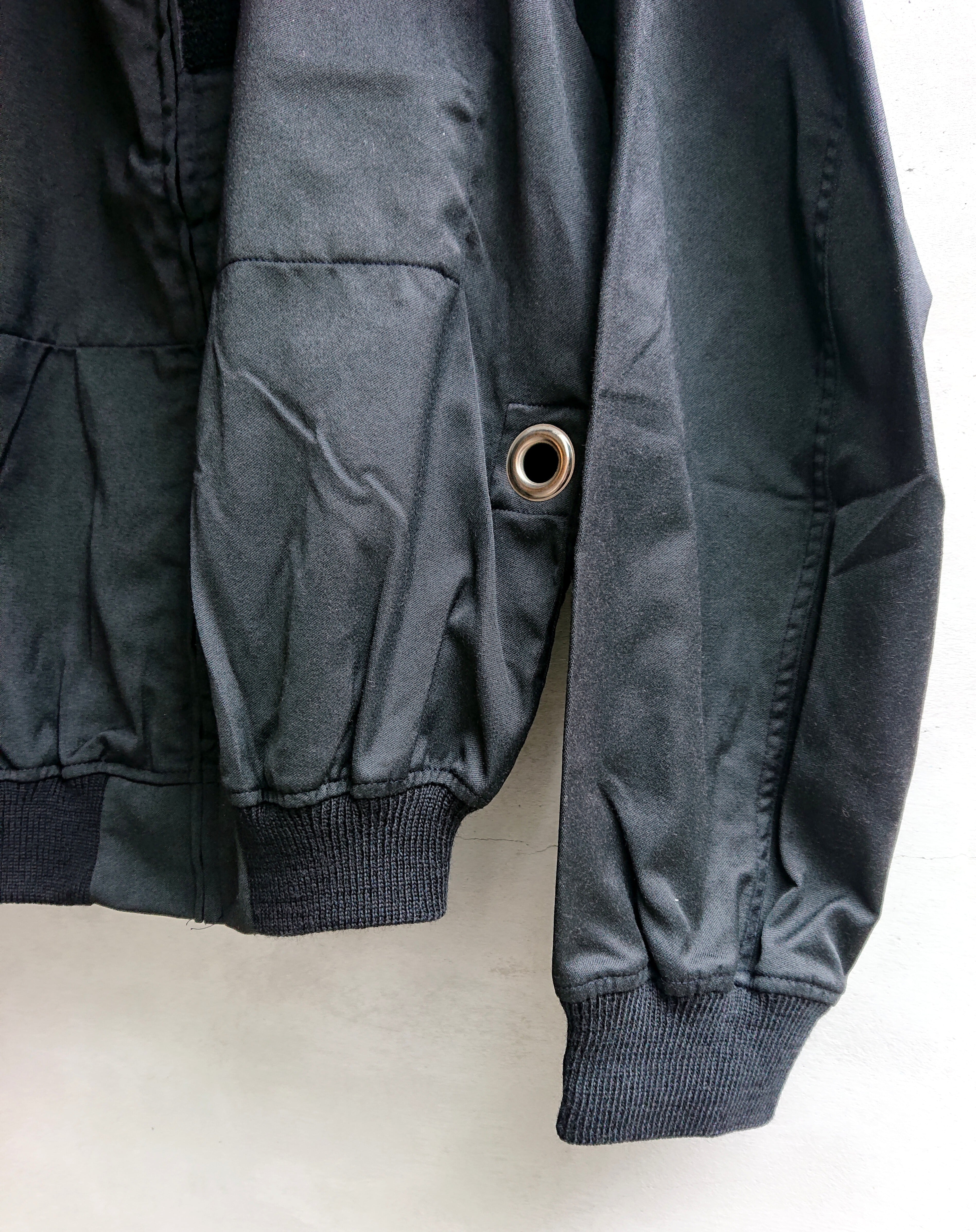 特殊な任務のウェアになる為、殆ど市場に出回る事がないジャケット。襟はスタンドカラーで袖と裾はリブ仕様。表にポケットは無く、内側の両胸部分にポケットがあります。腰には大きめの丸カン、ウエスト内側には金具付きのゴムベルトがついており絞る事が可能。ディテールも面白くファッション性の高いアイテムです。1996年製。
