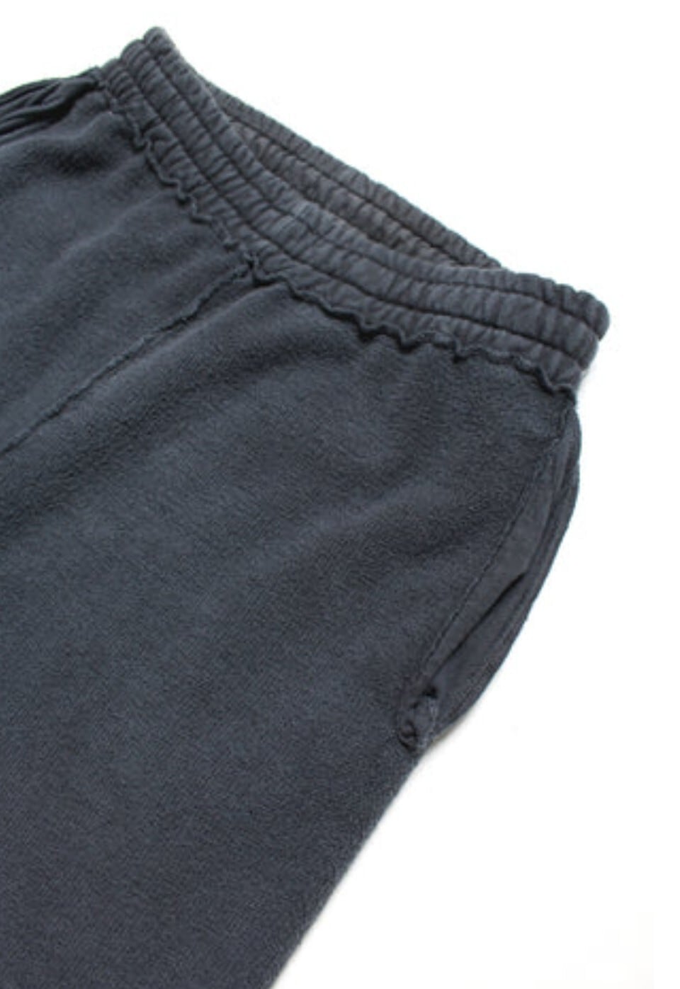 ブランド定番ブラックスウェットショーツに外作業 で日焼けした様を製作。夢を詰め込んだSPACE柄の 植毛フロッキープリントは、当時のプリント技法。