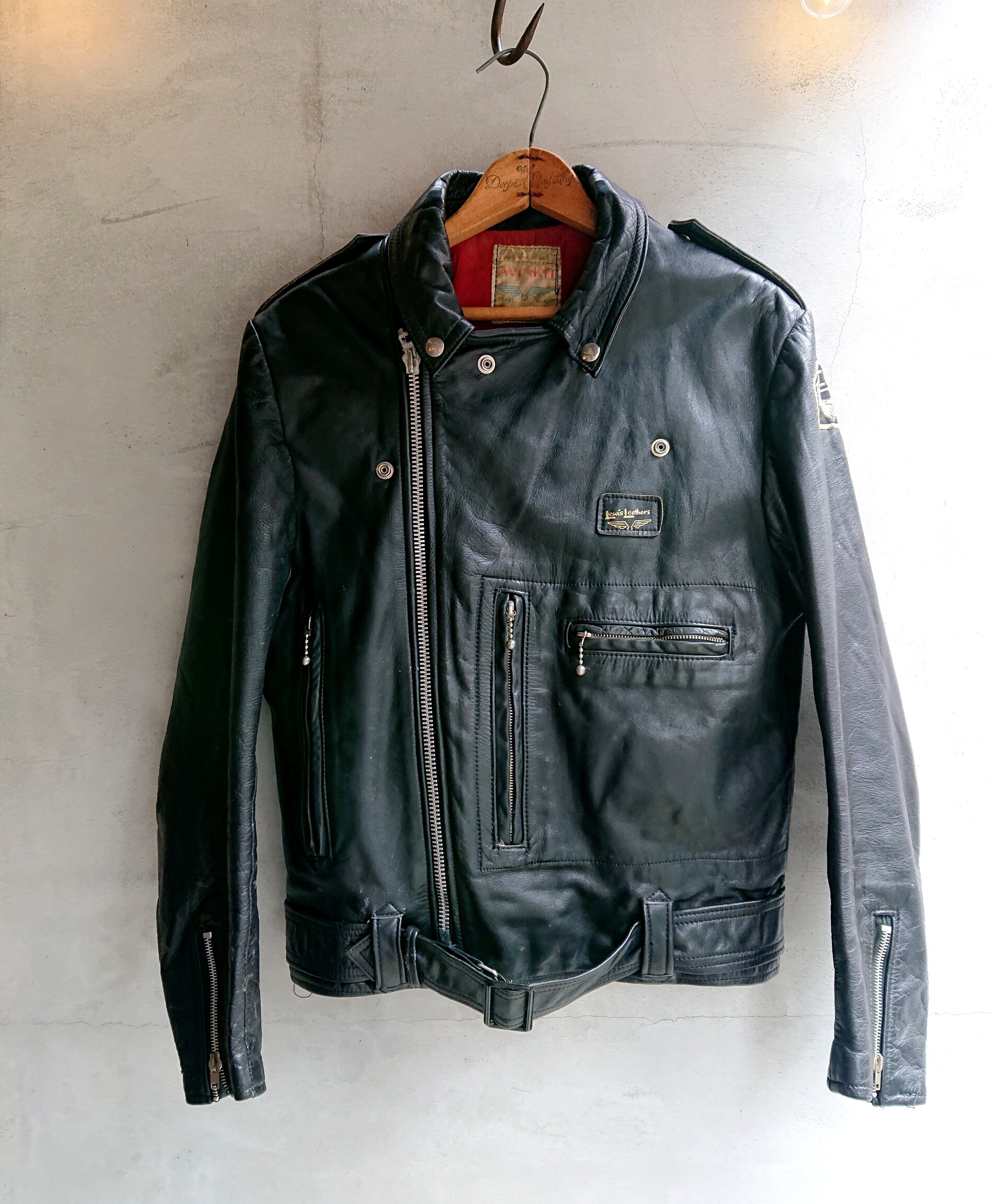 アメリカのライダースから影響をうけたと言われてます。フロントジッパーはLIGHTNINGのダブルジッパー。変わってるのも多いなかオリジナルのままは嬉しい限りす。レザーはREAL HIDEのタグが付くのでHORSE HIDE(馬革)になります。