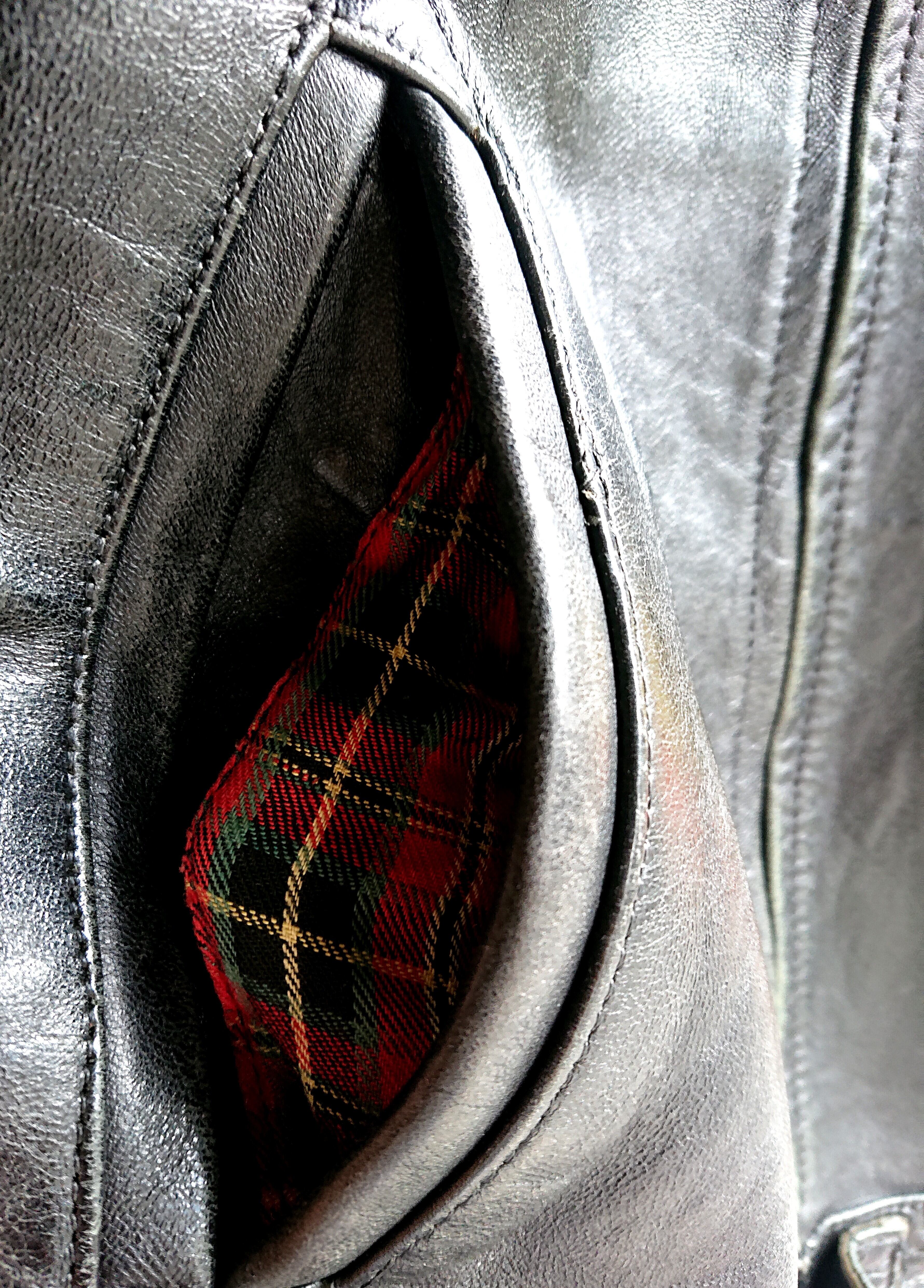 60~70年代 レザーモーターサイクルジャケットになります。イギリス製のレザーモーターサイクルジャケットではベーシックとも言える襟付きのシングルタイプ ライダース。フロントにはAERO’ジッパーが装備。胸元にはポケットは無く、ハンドウォーマーポケットあり。袖口はジッパーではなくカフス仕様。裏地はチェック柄。