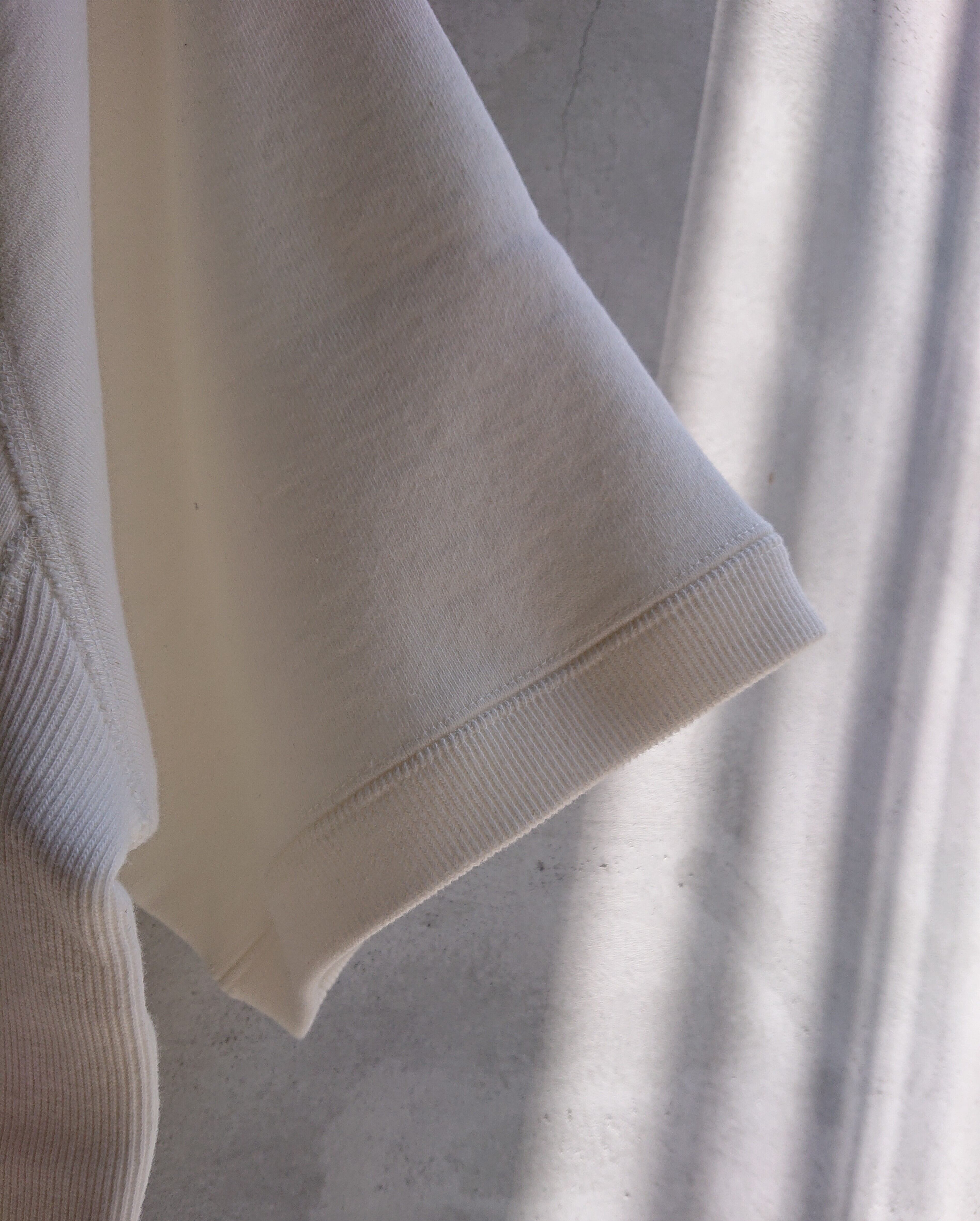WASEW TOUGH BRAIDED SWEATシリーズと同じ経年変化を楽しめるWASEWオリジナル度詰裏毛&リブを使用したショートスリーブスウェット。和歌山の吊り編み機を使用して編み上げたWASEWらしい経年変化の楽しめるオリジナルファブリック。