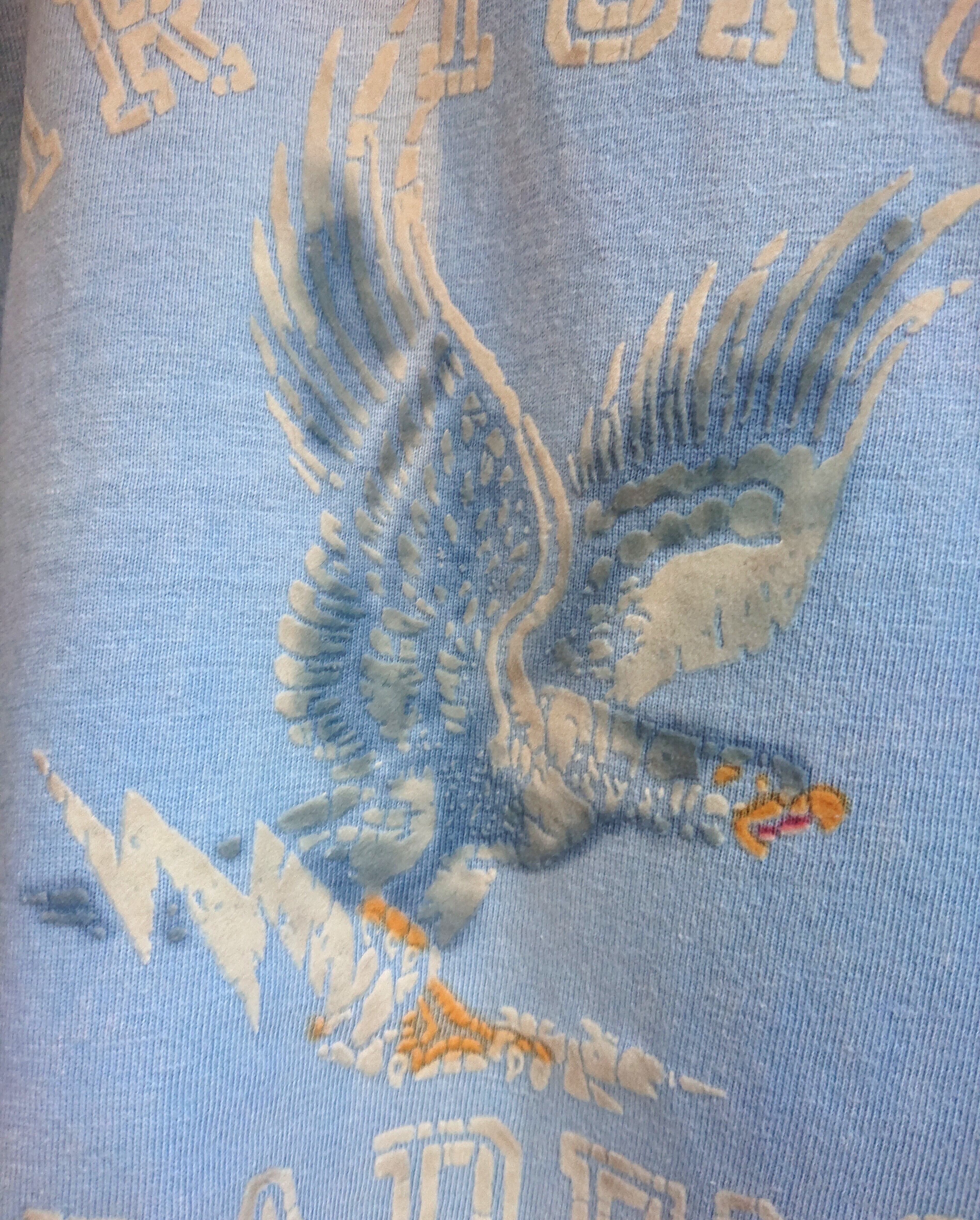 AIR FORCE ACADEMY (空軍士官学校) ものの中でも 異彩を放つ植毛フロッキープリントデザイン。自由の象徴であるイーグルをシンボルに掲げたAIR FORCEデザインに、AIR FORCE BLUEボディーがヴィ ンテージ感を高める。
