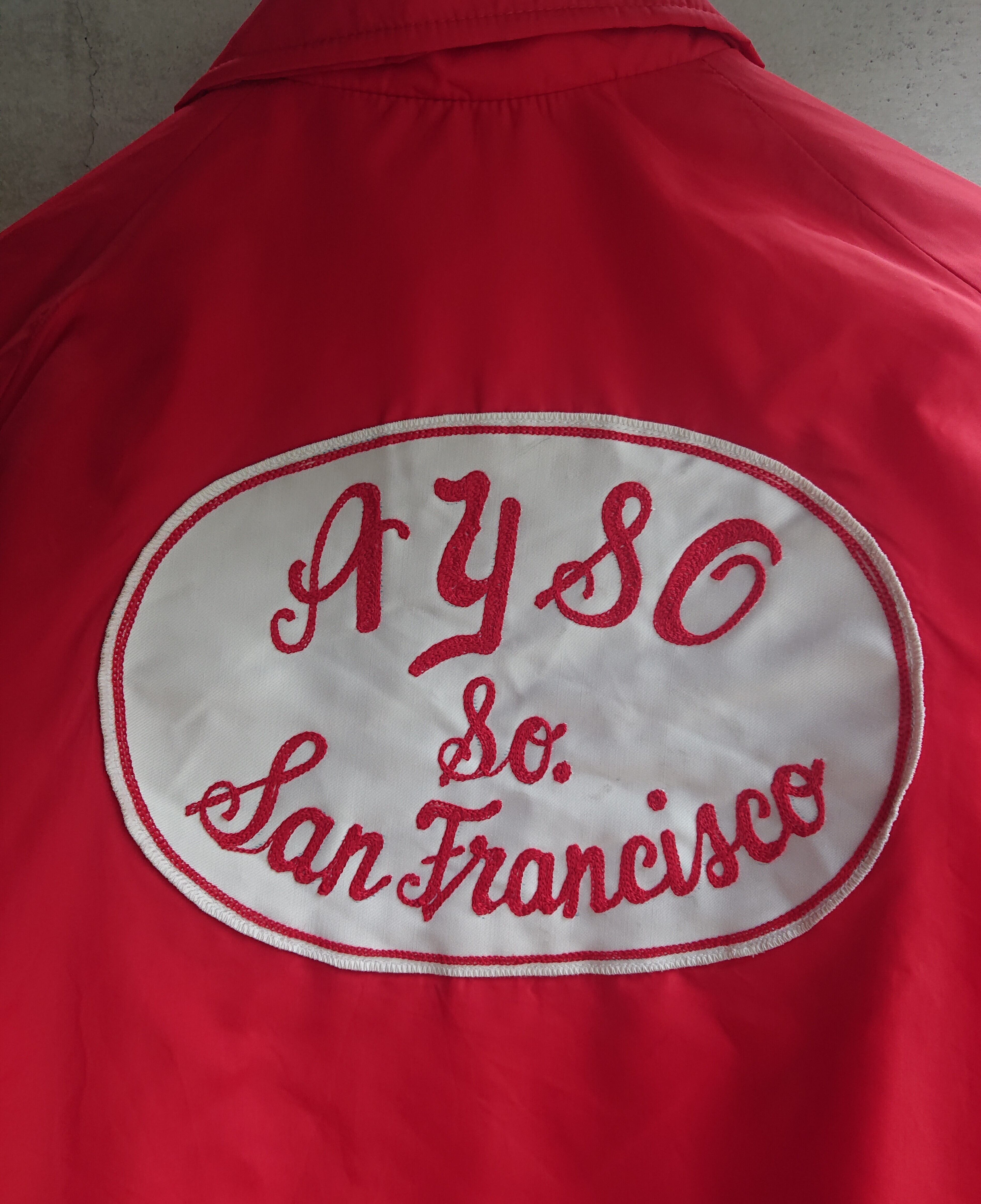 80年代 King Louieボディのナイロンコーチジャケットになります。ボーリングシャツで有名なKing Louie。シャツではなくコーチジャケットなのは意外と少ないと思います。背中には男前なワッペンがつきます。ネルの裏地がつくのでナイロン一枚のテロテロ感はありません。右腕にナイロンの繊維を引っ張ったような織り傷がありますが、その他は全体的にコンディション良い一着です、