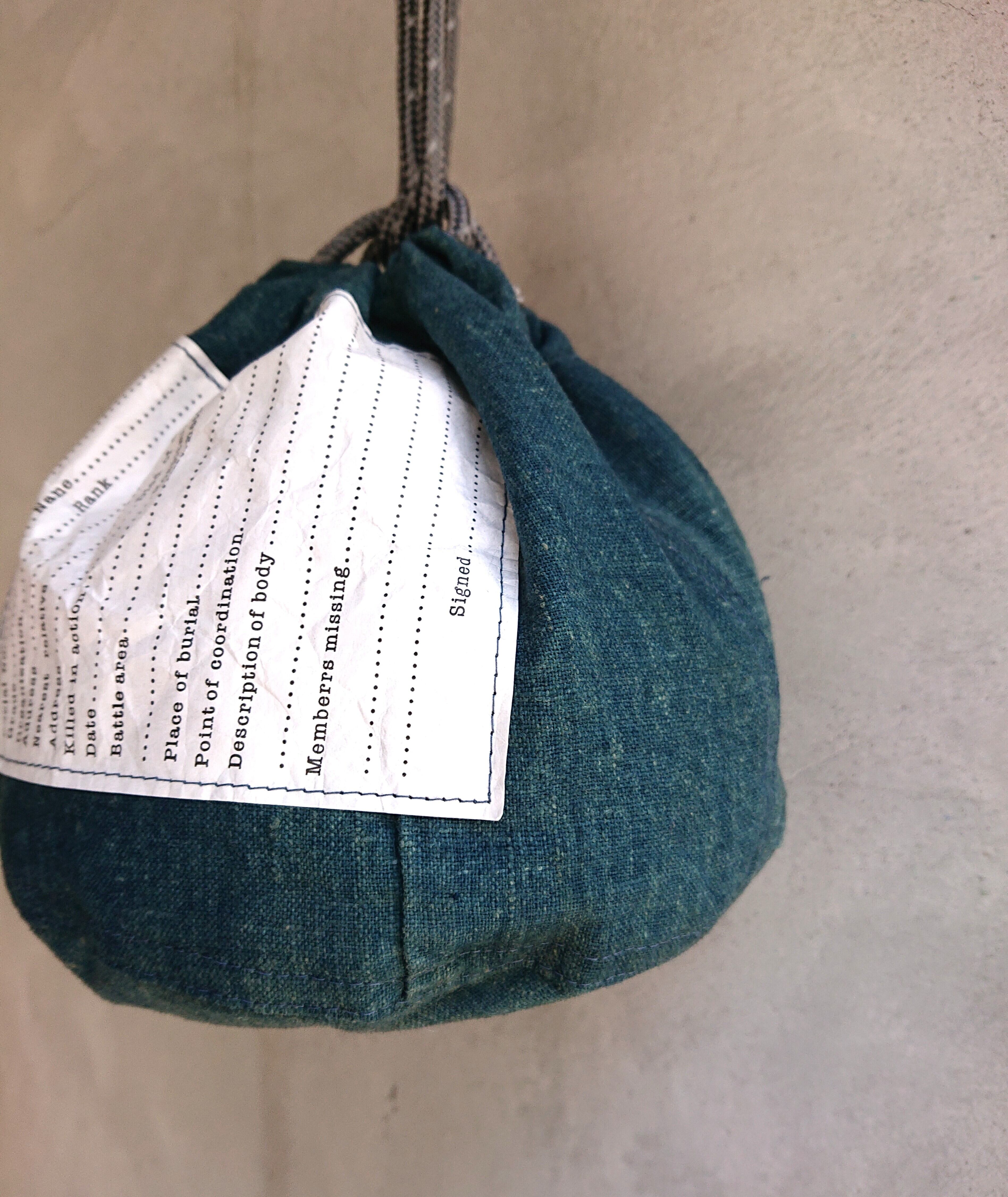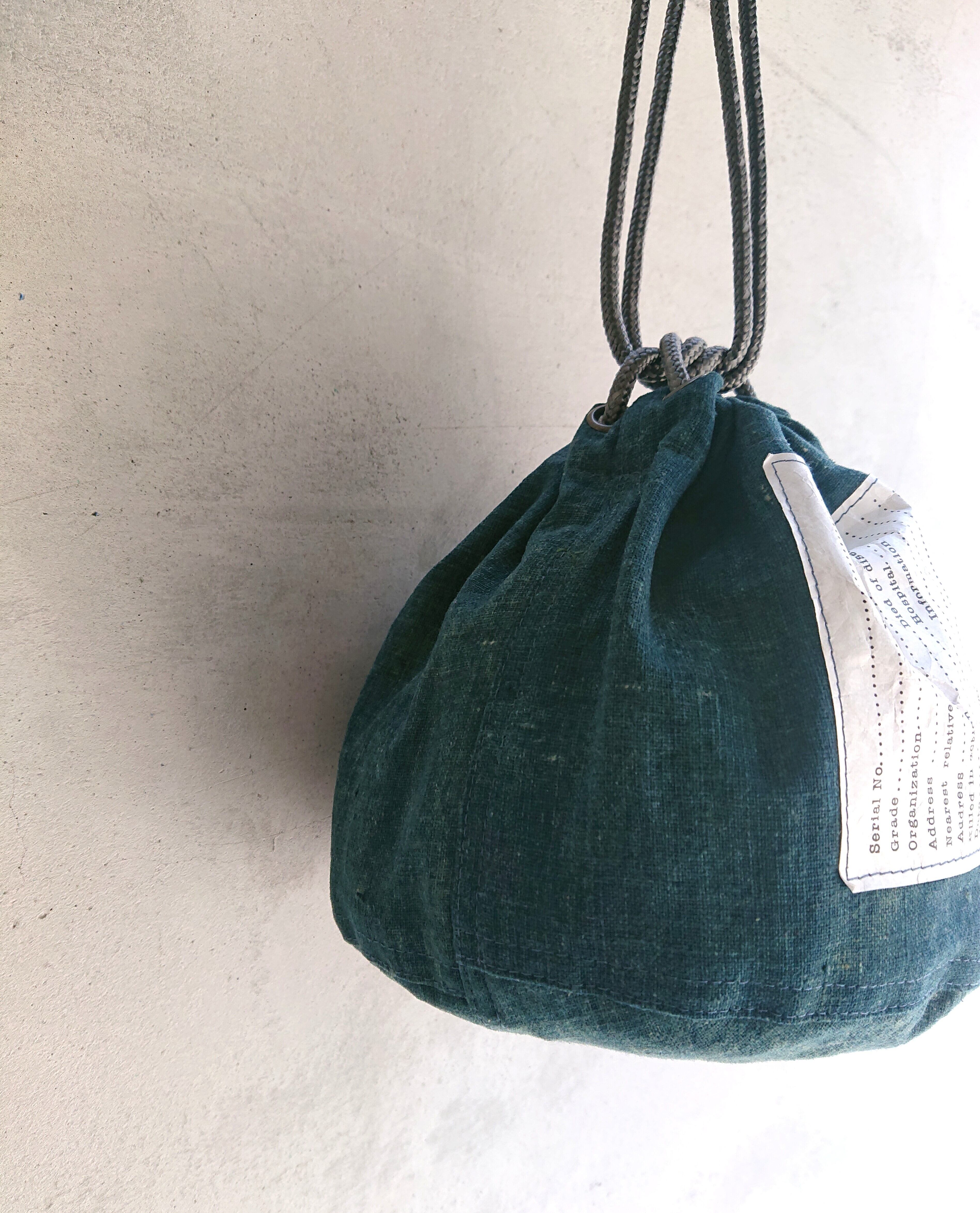 ヴィンテージを再現。ヴィンテージの本藍古布を可能な限り色合わせして組み上げ本藍の贅沢な PERSONAL EFFECTS BAG製作致しました。一点一点雰囲気が異なるのも魅力。ドローコードにはアウトドア用の反射材入りパラコードを使用し、タウンユースに耐える強度に仕上げました。
