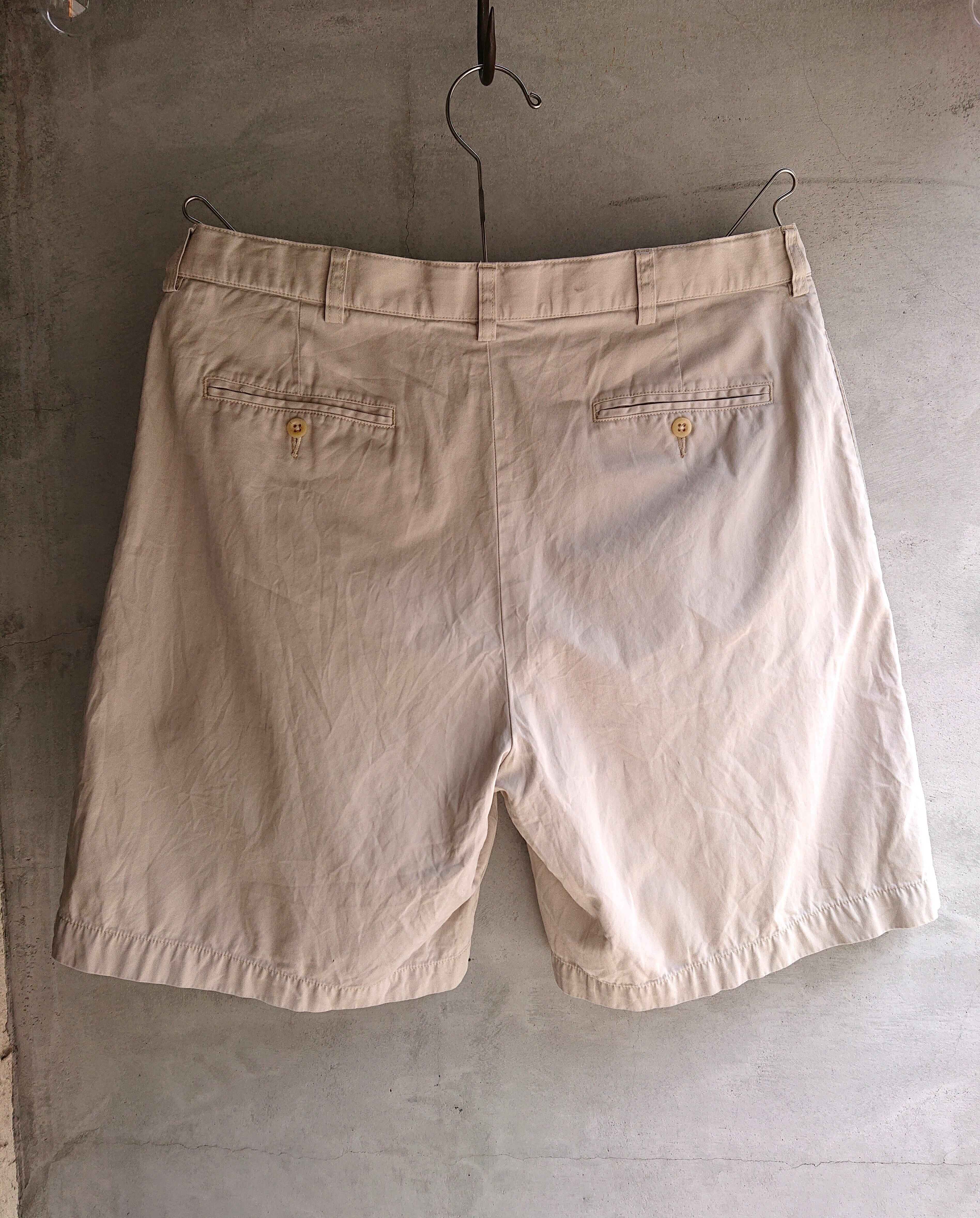 POLO RALPH LAURENのTYLER SHORTになります。ツータックのチノショーツ。タックが入るだけで、カジュアル感も少しぬけて、どことなく大人な雰囲気も感じます。幅広いスタイルに使いやすいチノショーツは一本あるだけで重宝します。素材はCOTTON 100%。着用感あり。致命的な傷等はございません。