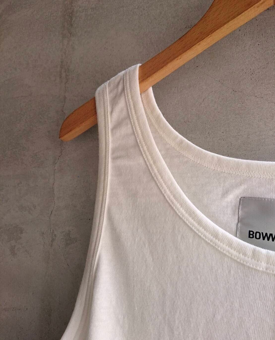 コットンとレーヨンにより編み立てられたBOW WOWオリジナルの88/12天竺。肌触り、着心地も良く服選びの時に何気なく手にとってしまうそんな一着。タンクトップのみをメインにしたスタイルは勿論、シャツやジャケット、カットソーのインナーとしても活躍してくれます。ヴィンテージを彷彿 とさせる生地は、糸から選び抜かれ編み立てたスペ シャル丸胴仕様でファッション性高いビッグサイズ。着回しの効くタンクトップは、サイズを大きく変えた2サイズによる展開。※LとXLの2サイズのみの展開。
