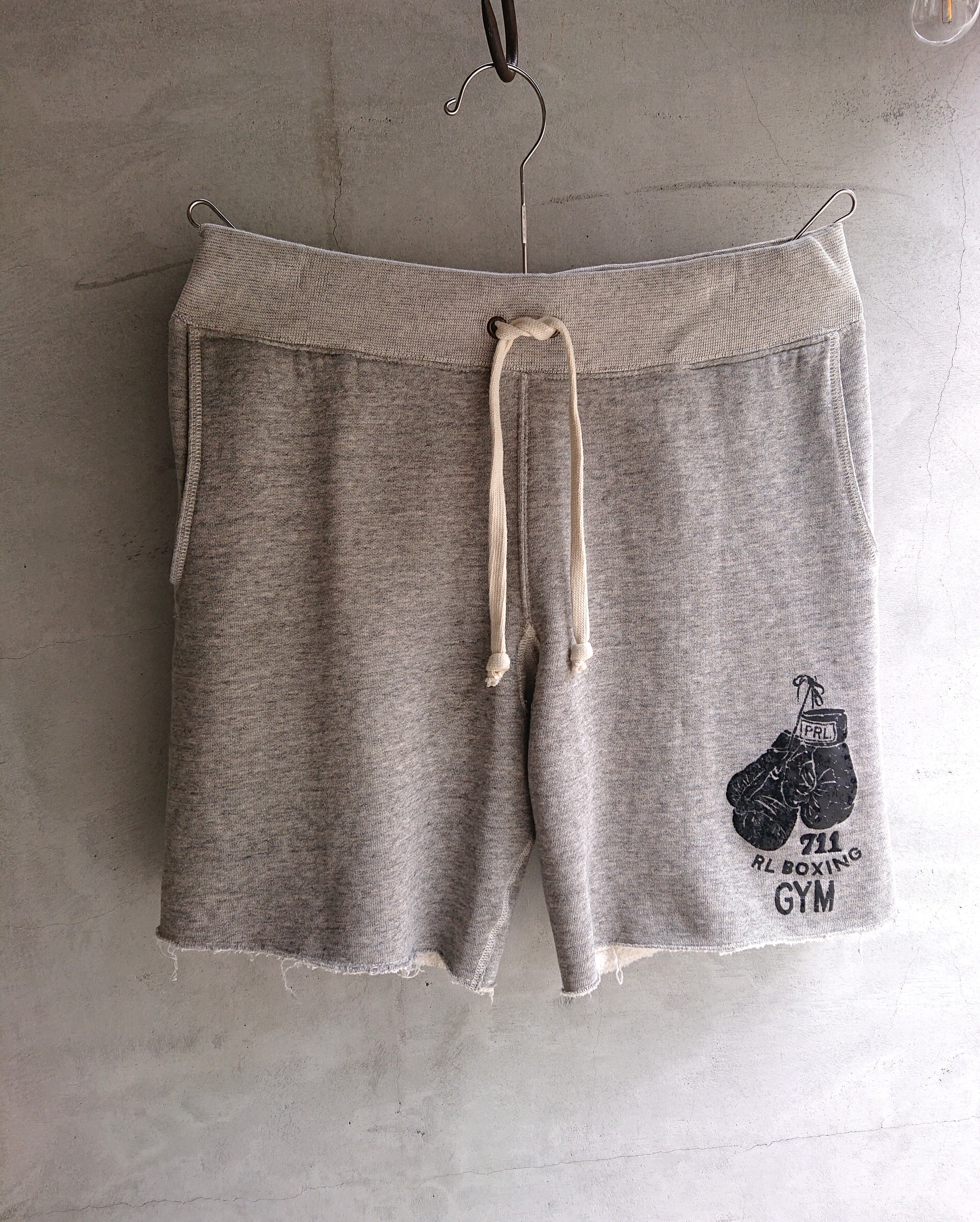 POLO RALPH LAURENのスウェットショーツになります。グレーカラーで左足裾にはRL BOXING GYMの文字にグローブのプリント。711の三桁はプリントではなく刺繍と一見全てプリントに見えてしまうところにさりげなく変化をかけてます。