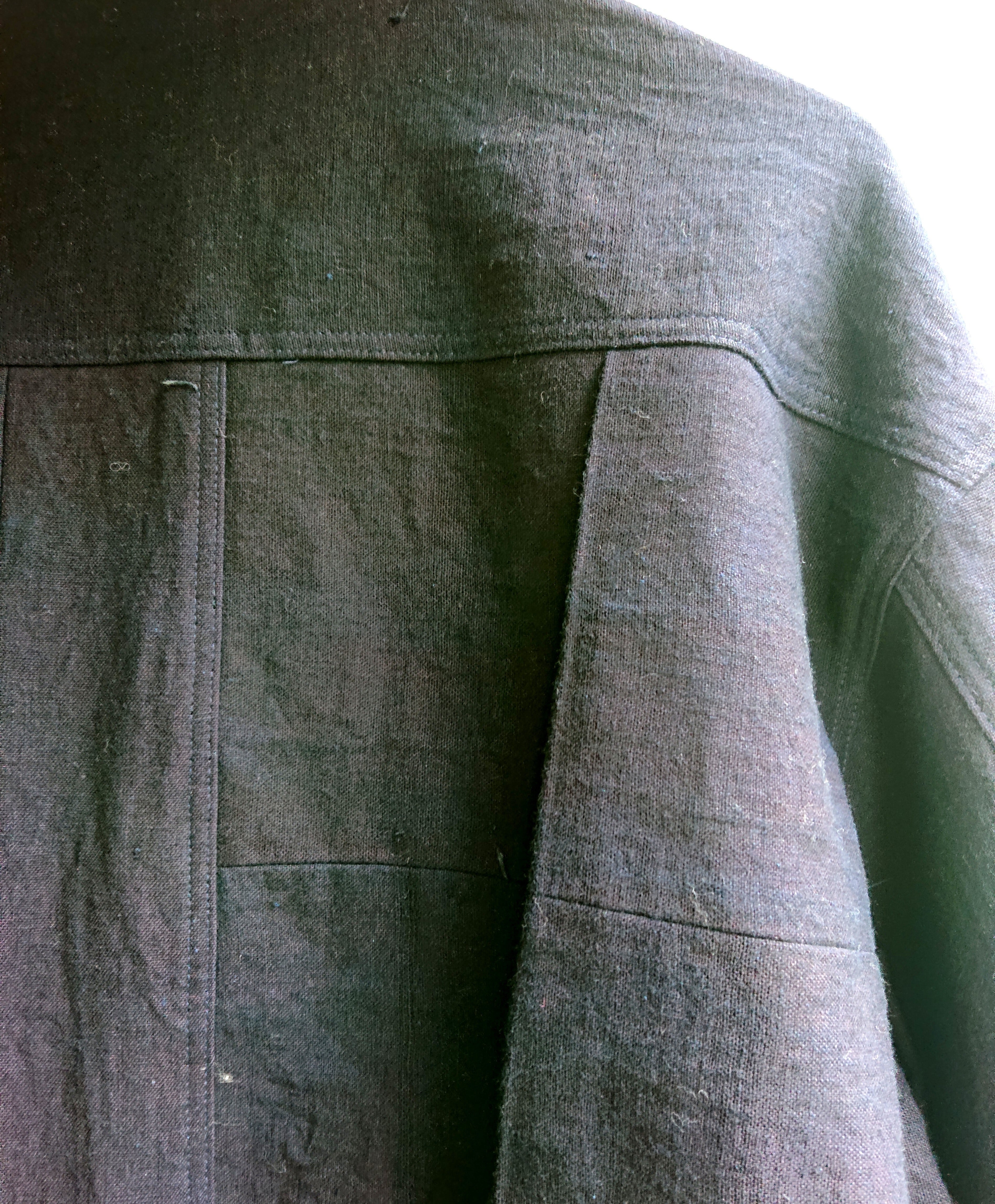 ヴィンテージの本藍古布を可能な限り色合わせして組み上げ本藍の贅沢な 1stタイプのスプリットバック(ワイドシルエット)を製作致しました。