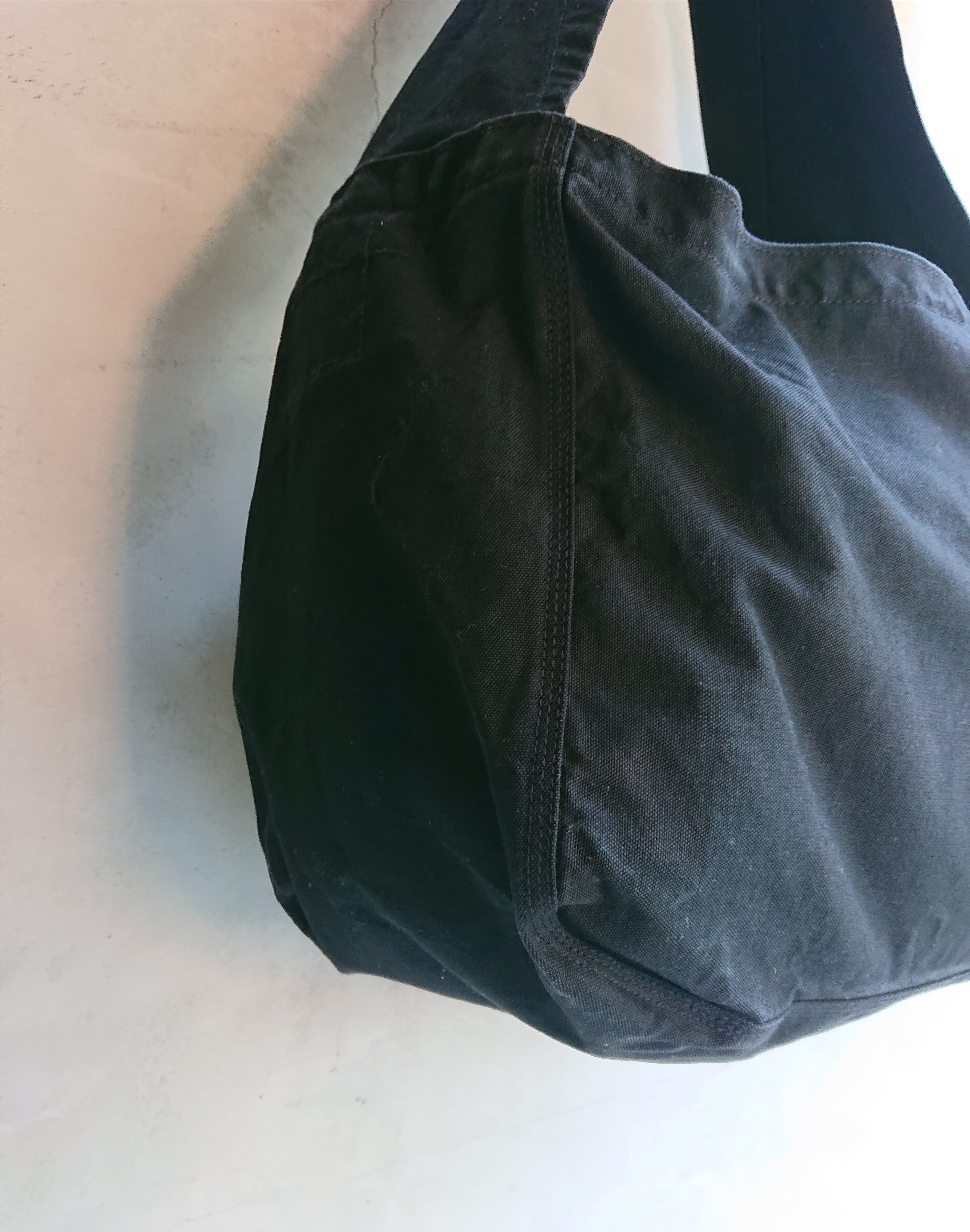 久々にLABORDAYの宮内氏との歓談中に出た 別注 話。以前、自宅の改装時に共通の友人のOWL SIGNS の住氏に描いて頂いたサインを、宮内氏がデザイン したニュースペーパーバッグにプリントし、アドバ タイジングバッグを製作させて頂きました。製品 は、未加工での販売ですが、各色サンプルを洗い加工して撮影致しました。購入をご検討される時に気 になるのが、エイジングでどんな感じになるのか? ですよね? ナチュラルボディには、シルクスクリー ンプリント(染み込み)を施し、洗い後の抜け感は、想 像通りの良い感じになりました。ブラックボディと ネイビーボディには、クラックプリントを施しまし たので使い込むと程良くプリントにゆっくりとクラ ックが入ってまいります。サンプルは、洗濯機にか けましたので割れるというよりは削れる感じに仕上 がりました。これもまた良しです。予期せぬ結果も また嬉し。洗濯の際は、ジッパーの引き手のレザー は外してから洗うのが良いでしょう。乾燥機は避け て下さい。