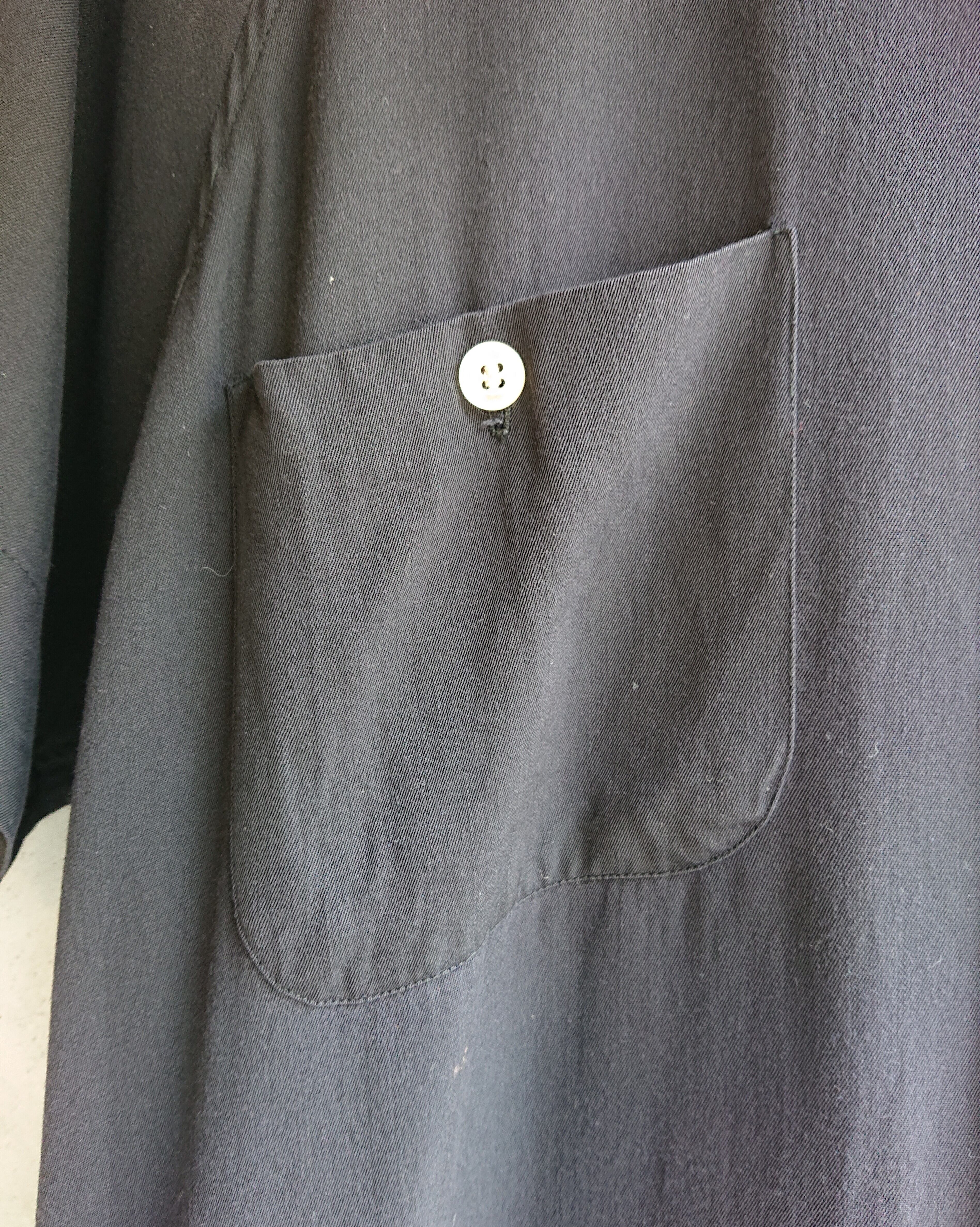 1950から60年代のブラックレーヨンのボーリングシャツになります。背中に"SELBY RECORD"の刺繍。ボディはDunbrookeでラグランスリーブ!!ブラックレーヨンのボーリングシャツでラグランスリーブは珍しく、アイテムだけでなくディテールからも魅力を感じるシャツ。オープンカラーで裾はボックスシルエットではなくラウンドシルエット。フロントの一番下のボタン横にうっすらと小さな染み汚れがありますが気にならない程度かと思います。年々入手も難しいブラックレーヨンのボーリングシャツ。お探しの方に是非オススメしたい一着です。