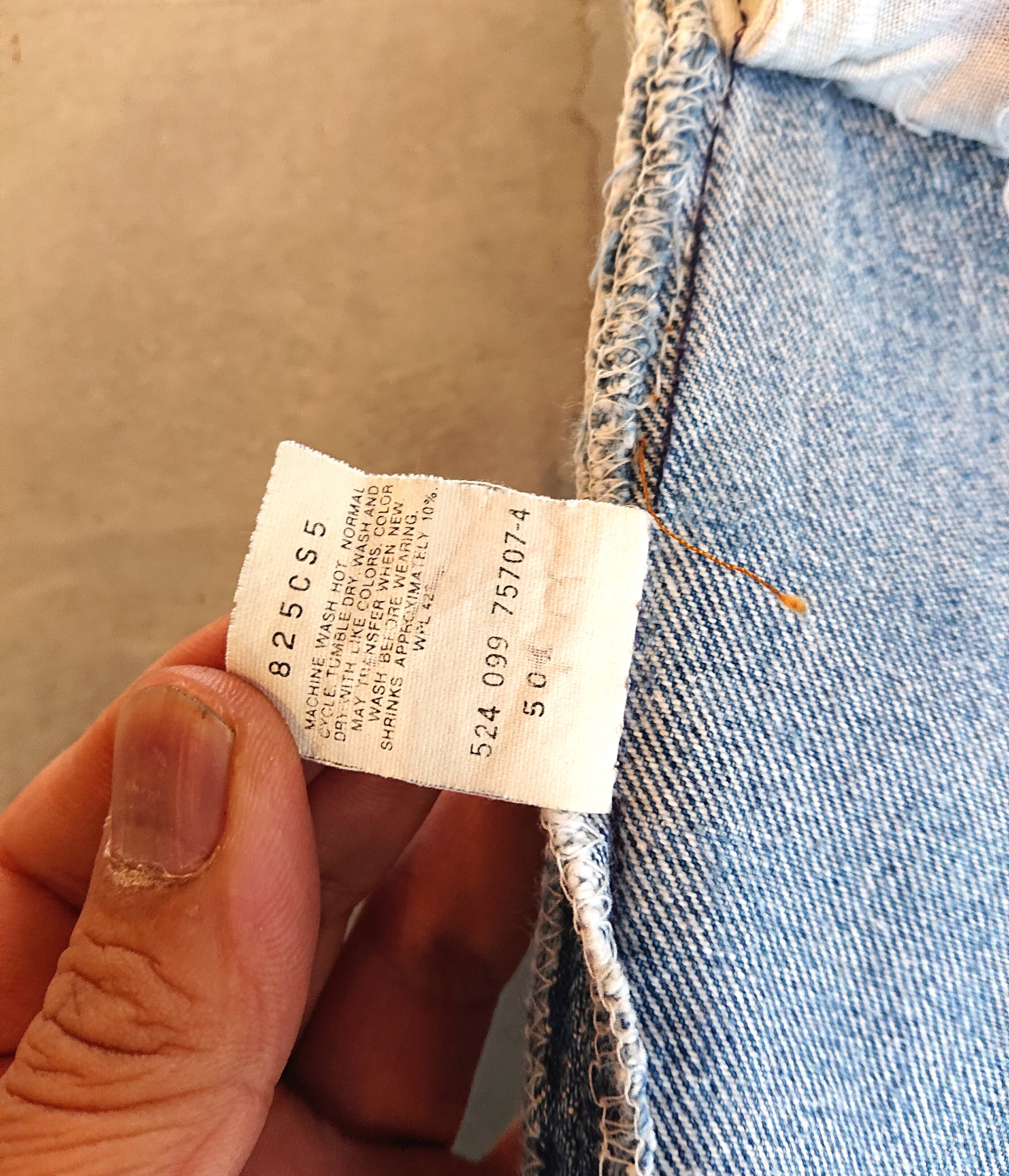 この年代の501らしい色落ち。個人的に好きな色落ちで、濃淡あってバキバキの色落ちも勿論良いんですが少し薄くてアタリがちゃんと出てる色落ち具合は色々トップスに合わしやすくて昔から大好物です。カットオフにしたら股下が少し長くなりますがカットオフなんで短めが良ければカットしてもらって、膝下位の長さを少しロールアップして履きたい方はそのままで。最初から短いカットオフよりはお好みの長さに合わして履いてもらえます。ボタン裏刻印は524。致命的な傷や汚れはありません。