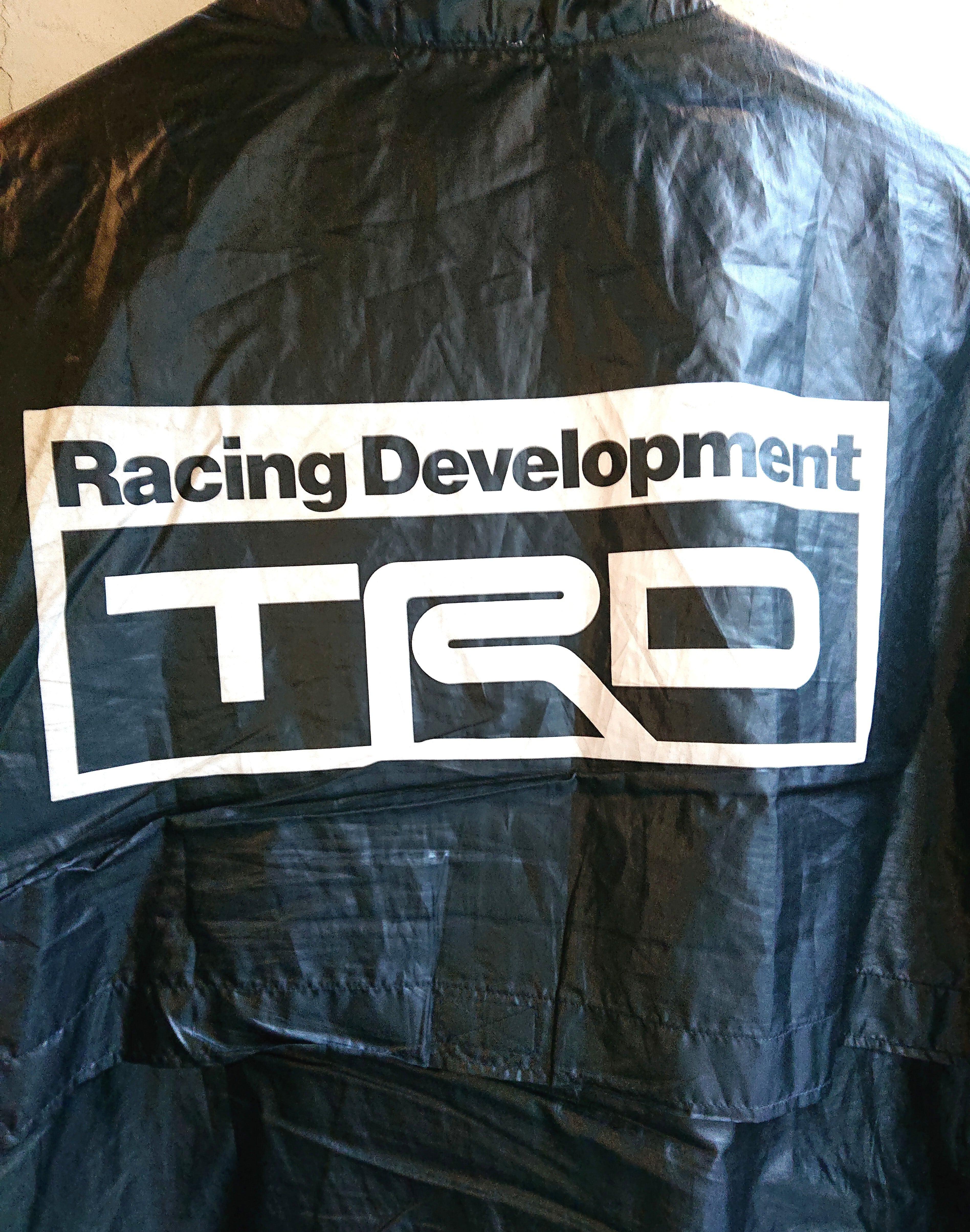 国内のレースやラリー用のトヨタのワークスマシンやエンジンの開発を担当し、市販車用 のチューニング、アクセサリーパーツの開発なども行ってます。今回紹介するのはTRDのナイロンジャケット。内側の上部分ははメッシュ仕様で背中はマジックテープで開けれるようになっており通気性もあります。未使用の商品なのでコンディションも良いジャケットになります。