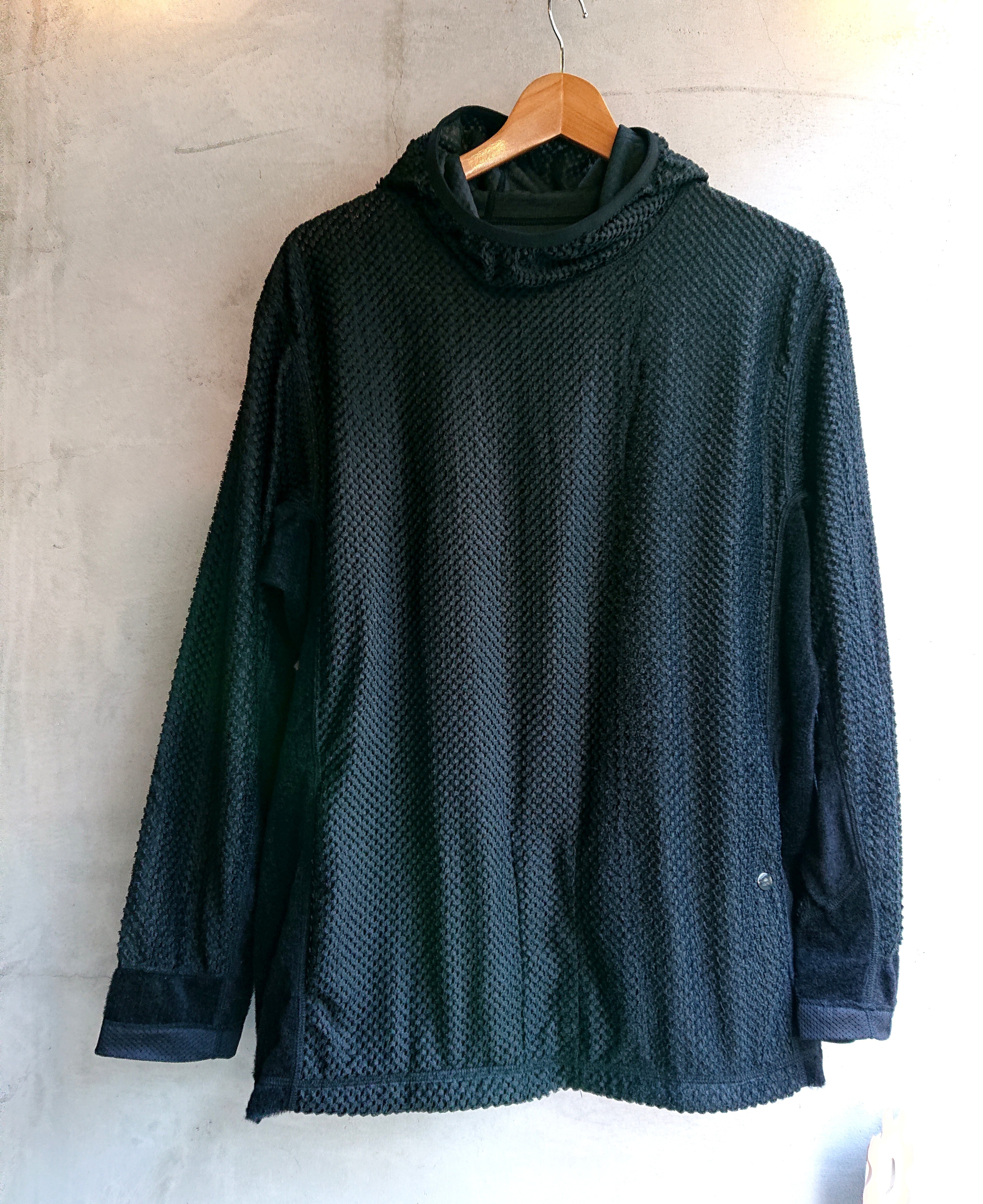 今までなぜか作っていなかったOCTAのフード版。寒冷時のベースレイヤーとして使用は勿論、これからの季節はTシャツ等と重ね着でコーディネートを楽しんでほしい一着。パッカブル仕様。当店はBLACKカラーのみの入荷となります。