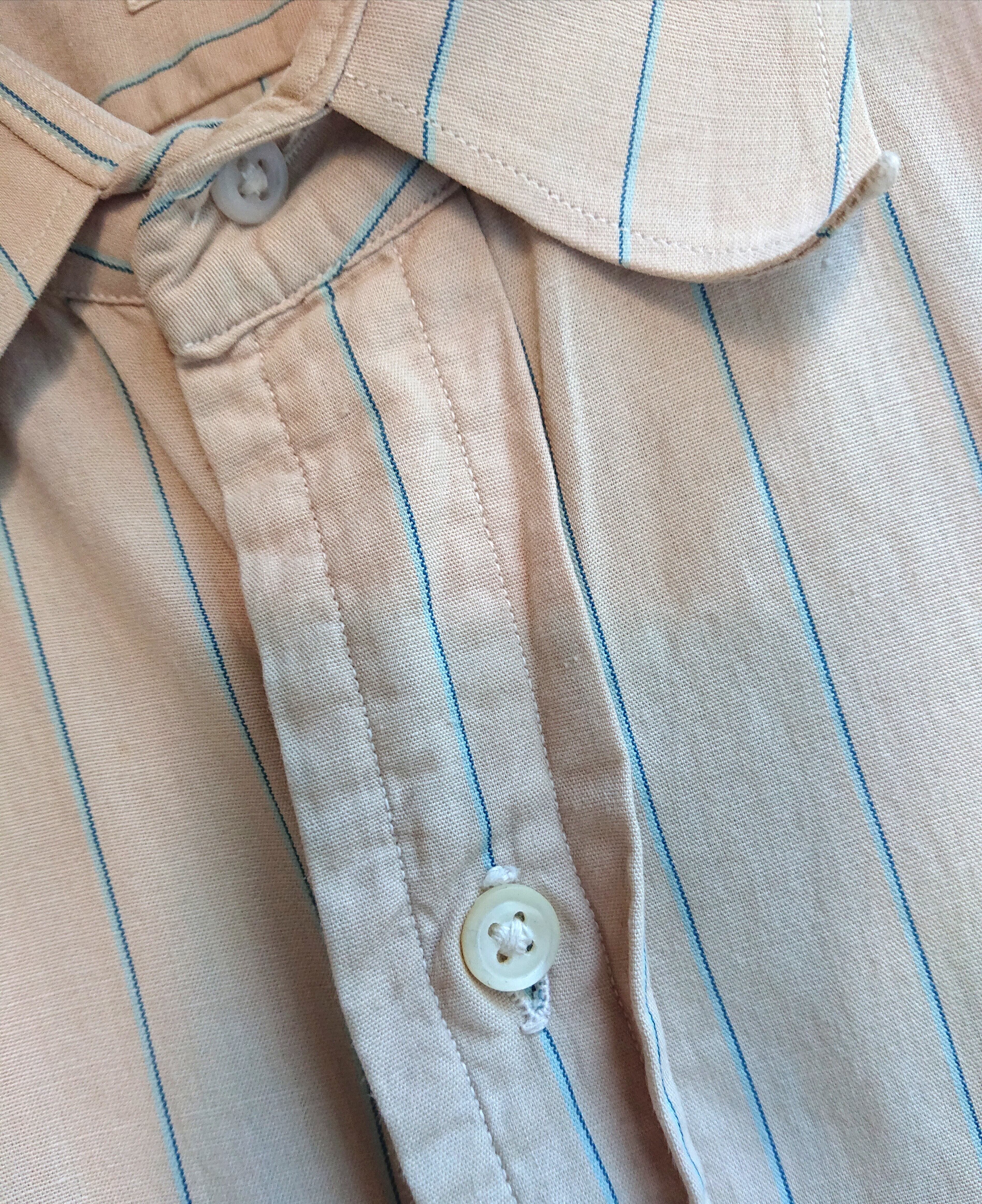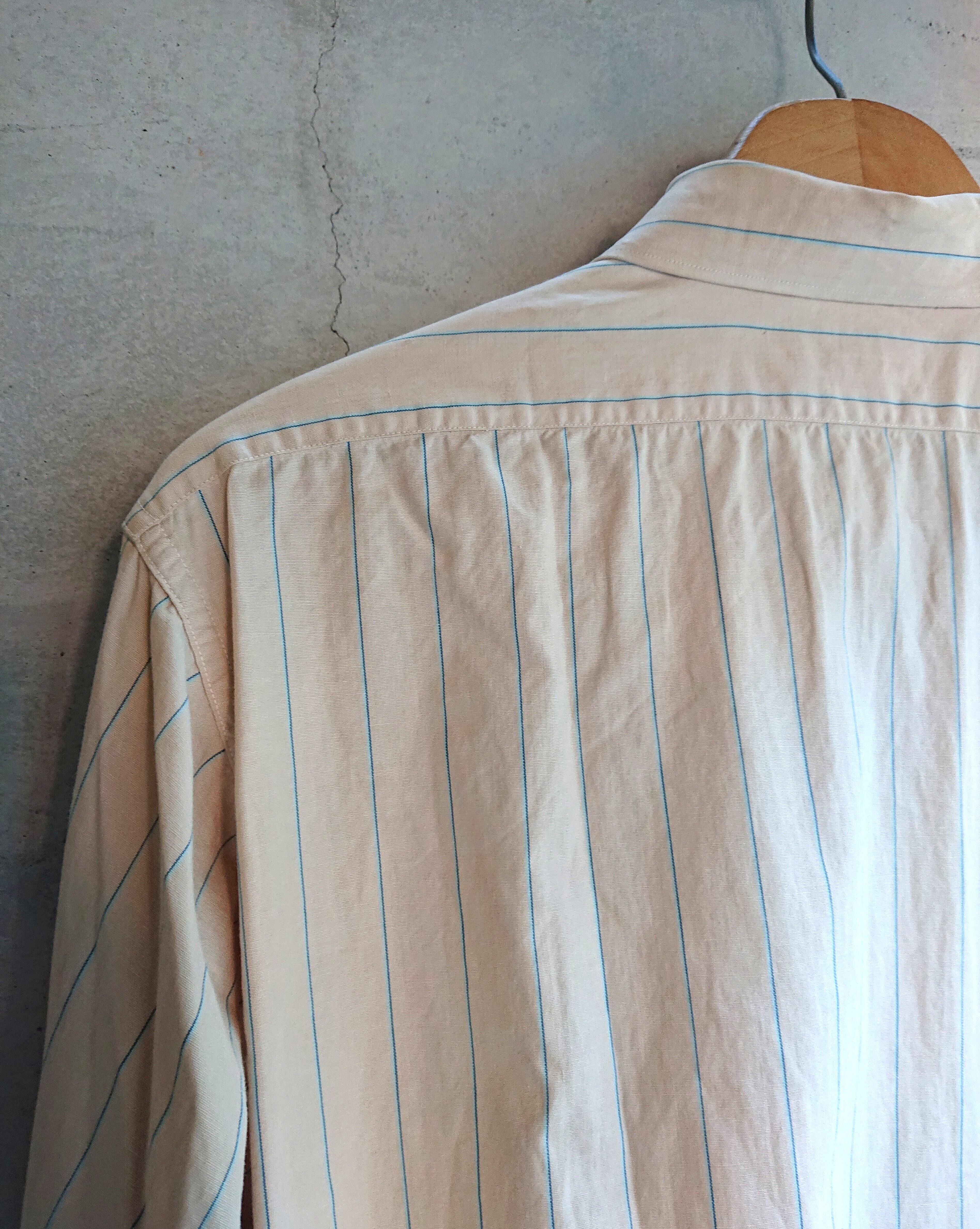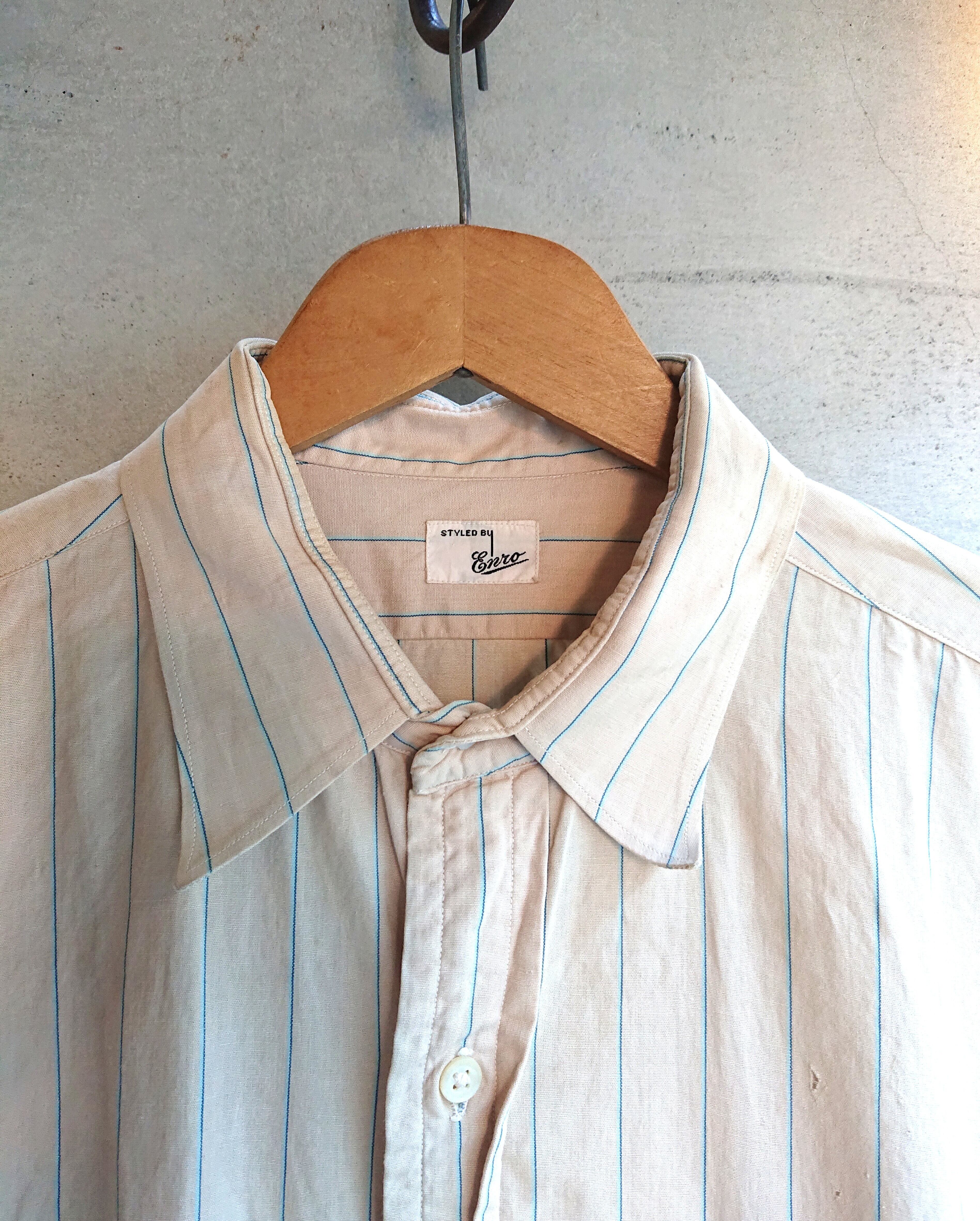 1940~50年代 Encoブランドのストライプシャツになります。落ちついた色目でワークシャツを着る感じで合わしたい一着。左胸ポケットの上に小さなホールがあります。雰囲気系のシャツお探しの方にオススメです。