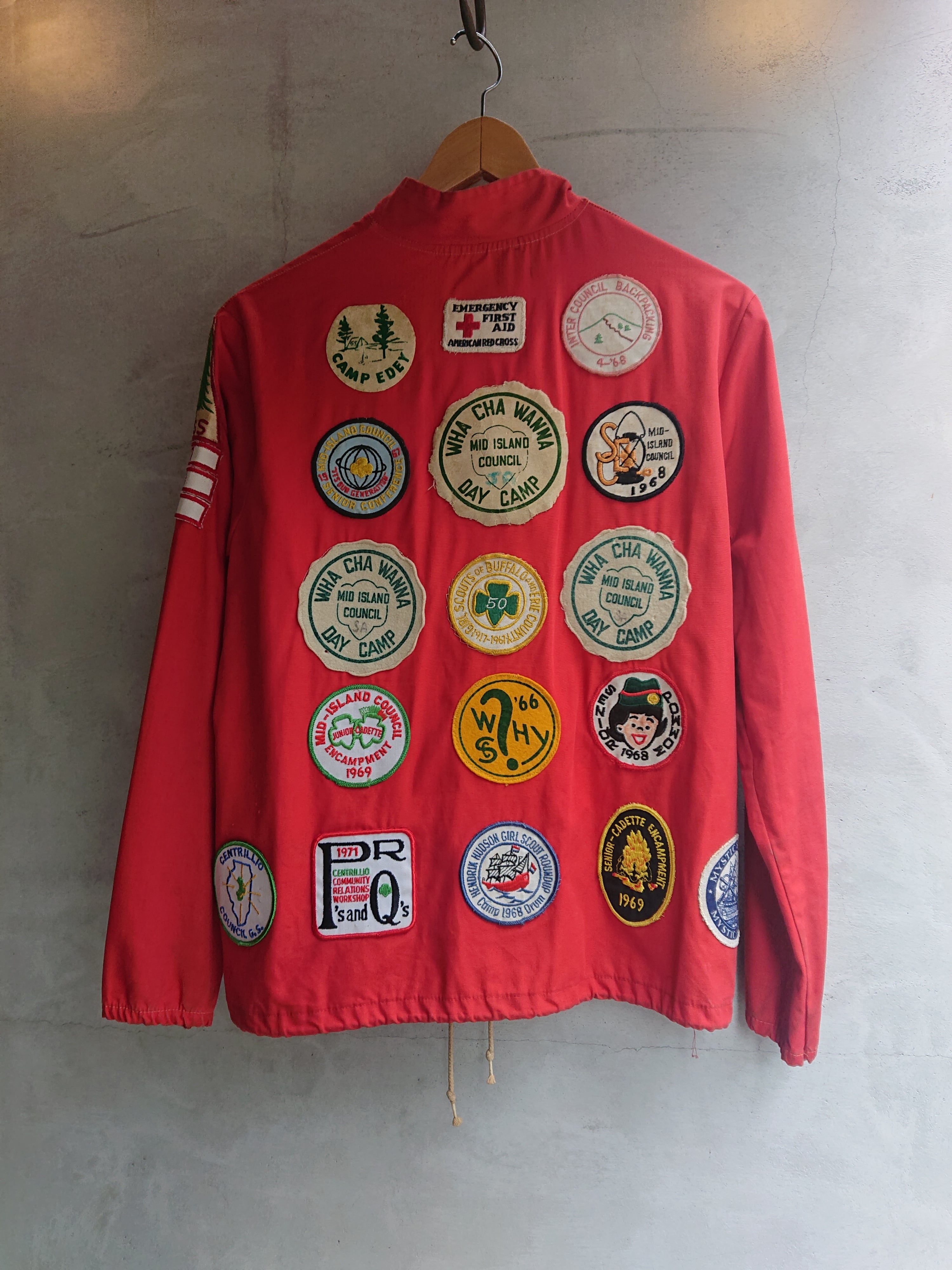 60年代 ボーイスカウトのジャケットになります。背中をメインに両袖、胸元にワッペンがつきます。サイズは小さめなのでアメカジ女子にジャストで着ていただきたいジャケット。多少汚れはありますが気にならない程度かと。多数ワッペンがつくジャケットは見た目にもインパクトあります。