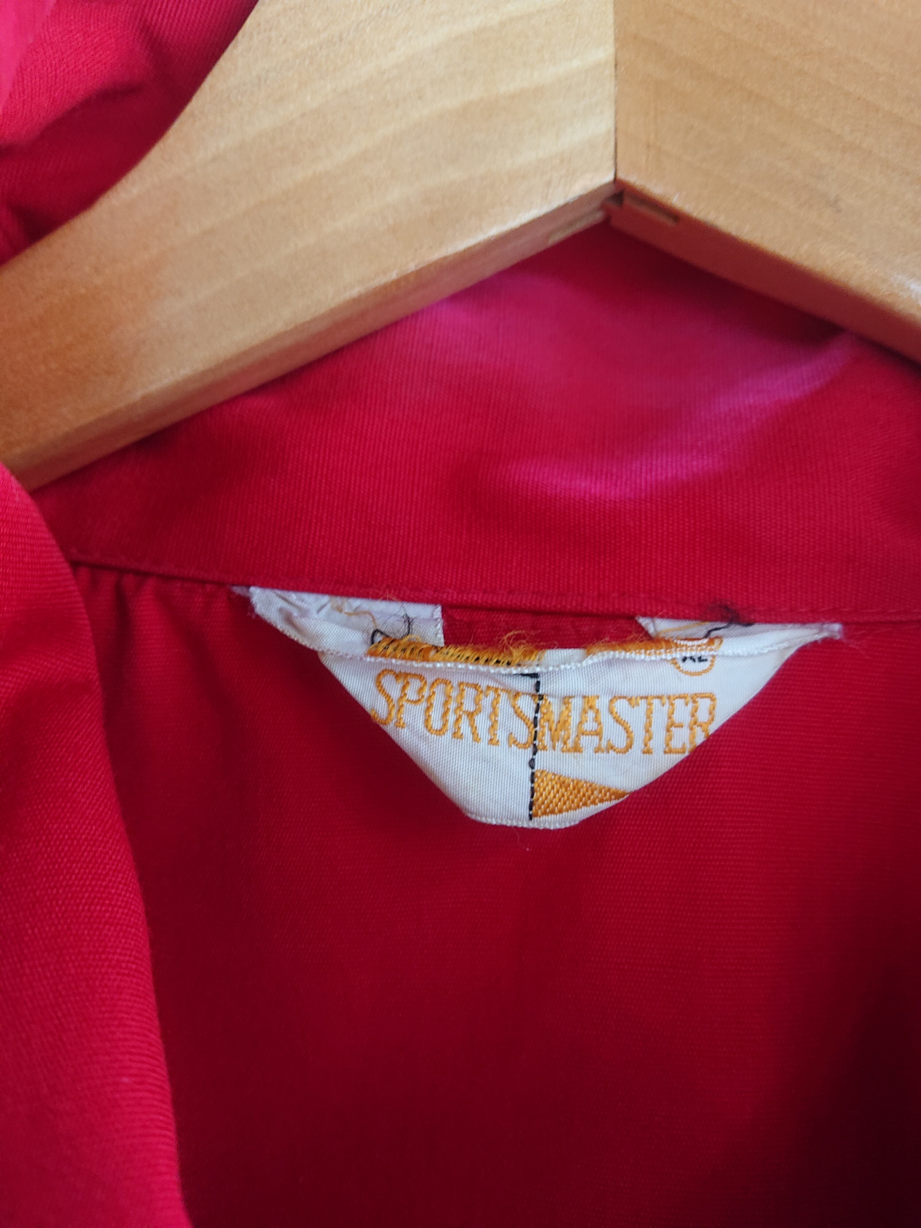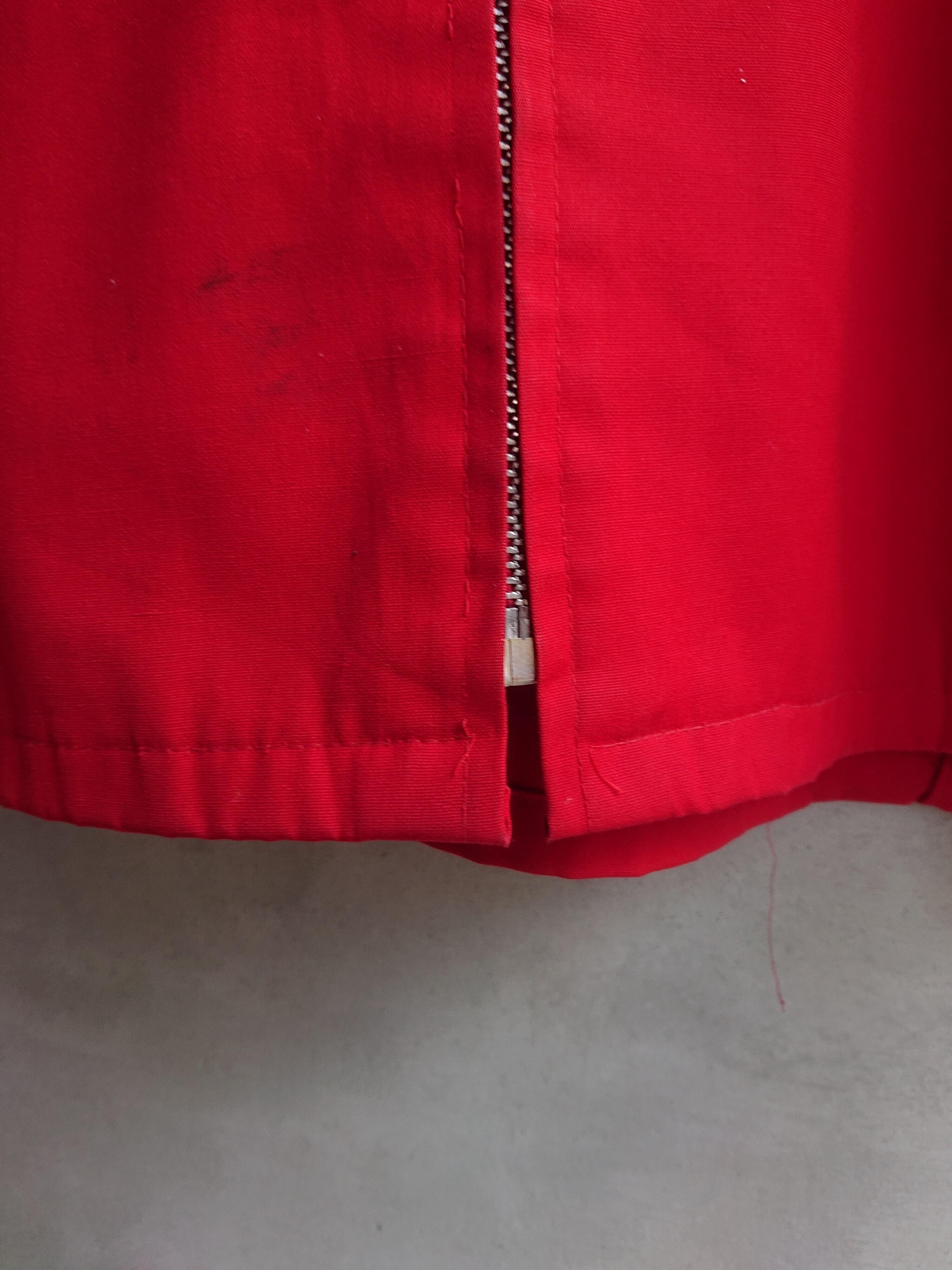60年代 HONDAIのスウィングトップになります。背中にプリント。アメリカ IOWAのディーラーものになるかと。赤ボディに白プリントが男前。サイズも大きめのXLサイズ。数ヶ所染み汚れがありますがせそれも雰囲気。ボディはSPORTSMASTER。
