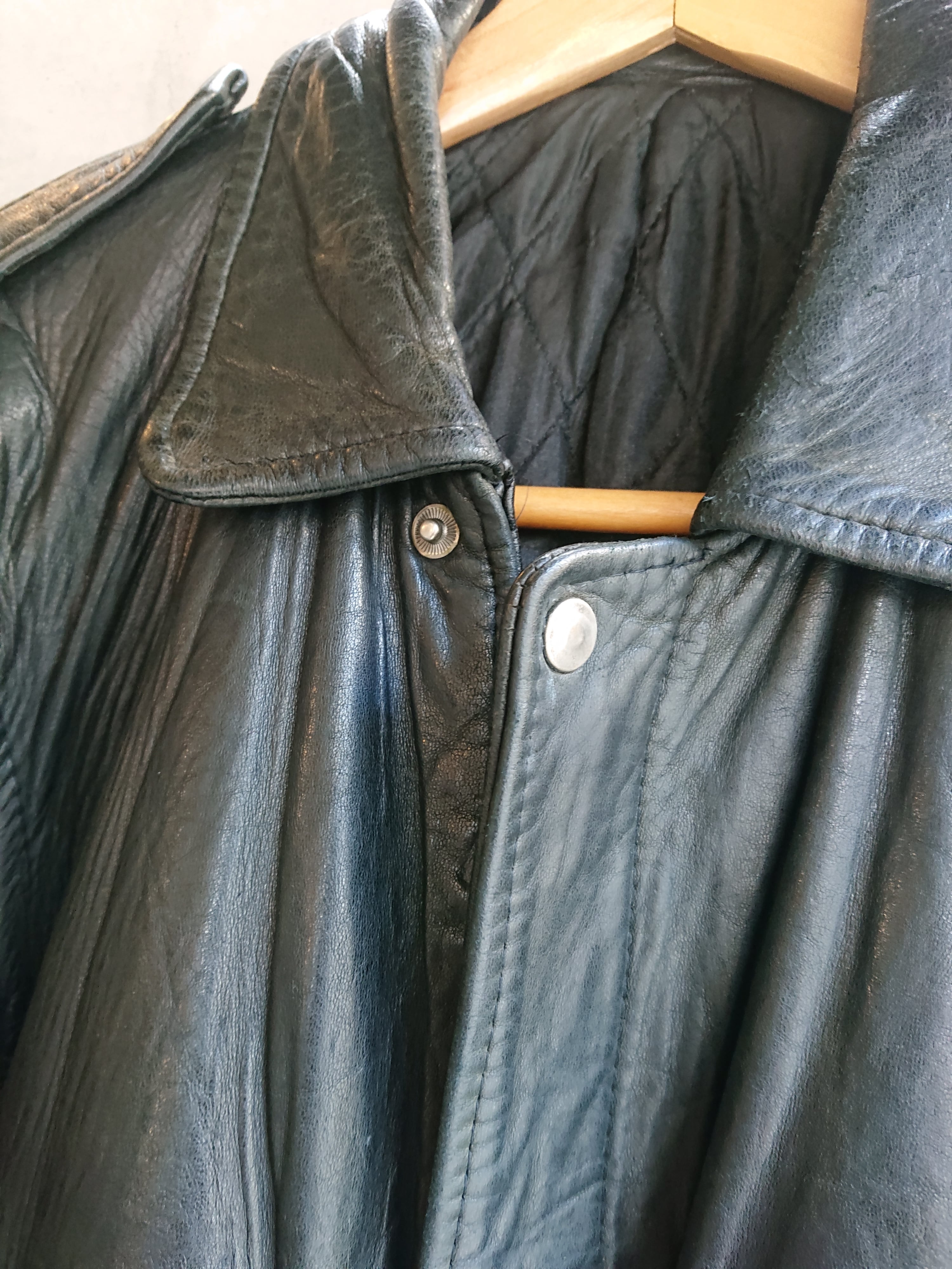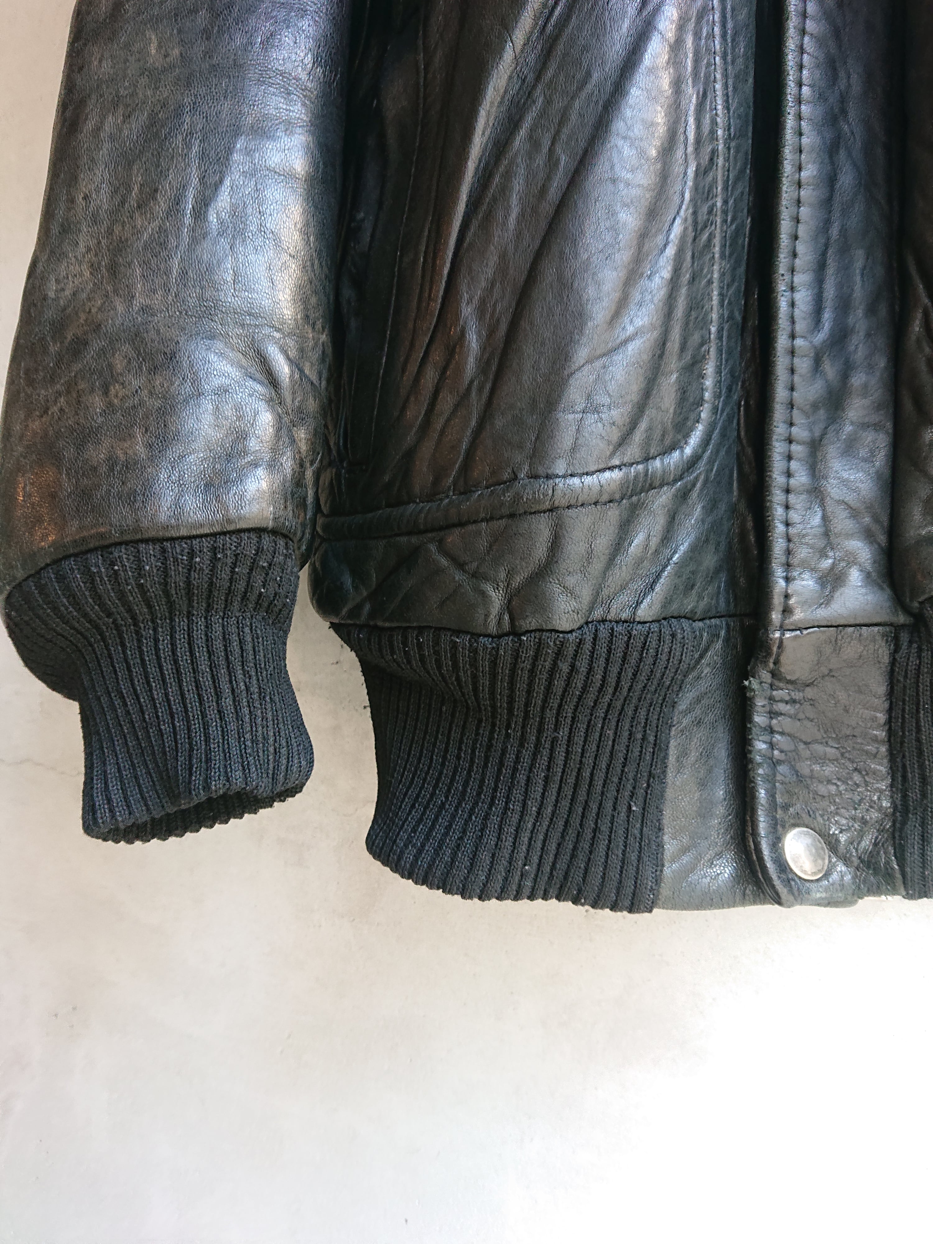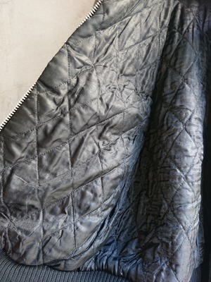アメリカ物のボンバージャケットは丸みあるシルエットでどちらと言うと少しどんくさい感じもするシルエットですが、今回紹介するイギリスのボンバージャケットはスッキリしており着た時のシルエットは綺麗です、内側はキルティング仕様。レザーは触り心地からおそらくシープスキンになります。フロントの上のスナップがヅレておりますが着用に問題はなく、その他致命的な傷等はありません。