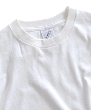 PACK TEEとは対極のTEEを作る為に生地からオリジナルで作りました。できる限り度詰めで編んで作った生地は着た瞬間から力強さとタフさを感じていただけると思います。オープンエンドの糸を使用する事でザラ感がありドライタッチなアメリカのTシャツのタフで力強い感じを出しています。度詰めで編んでいますので伸縮性が弱くその分着用しやすいようにサイズ感はパックTよりも少し大きめに作っています。毎日着用してもへこたれないタフさを感じていただければと思います。WHITEは定番カラーとして、BLACK SUNが2024AWシーズンカラーとなります。
