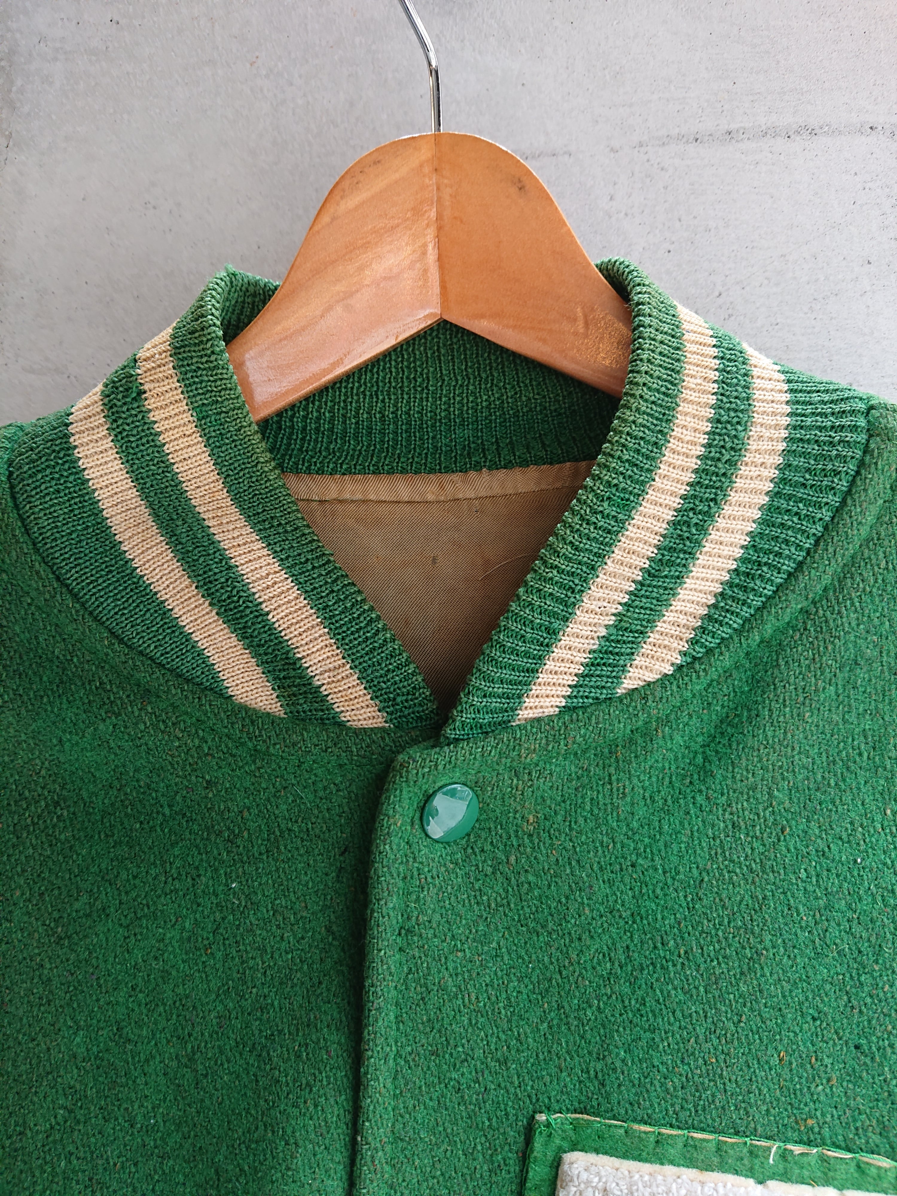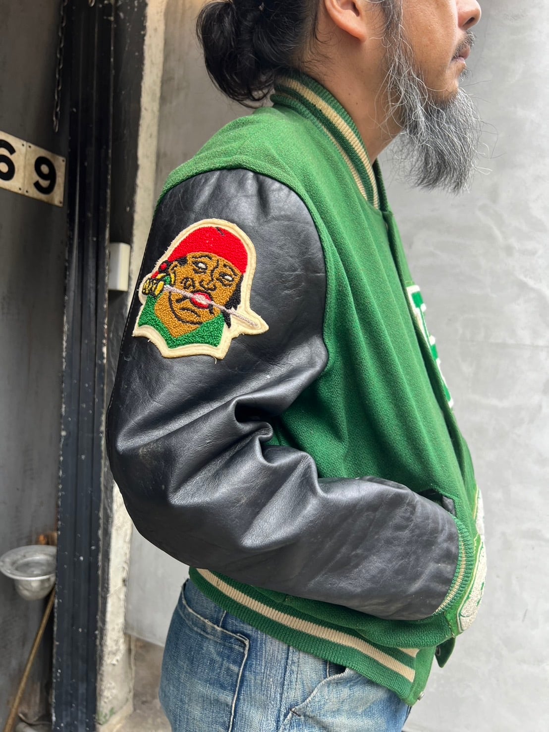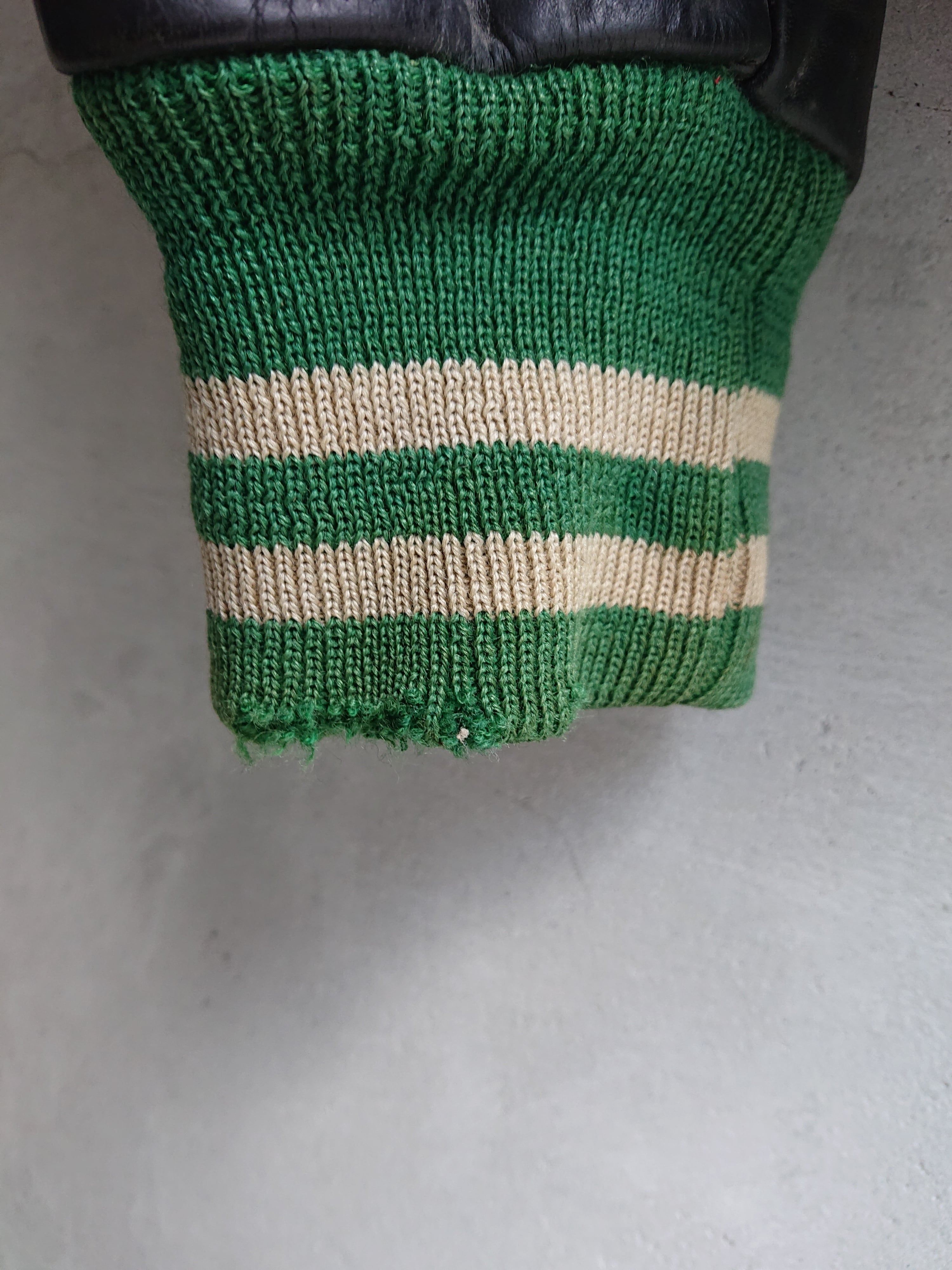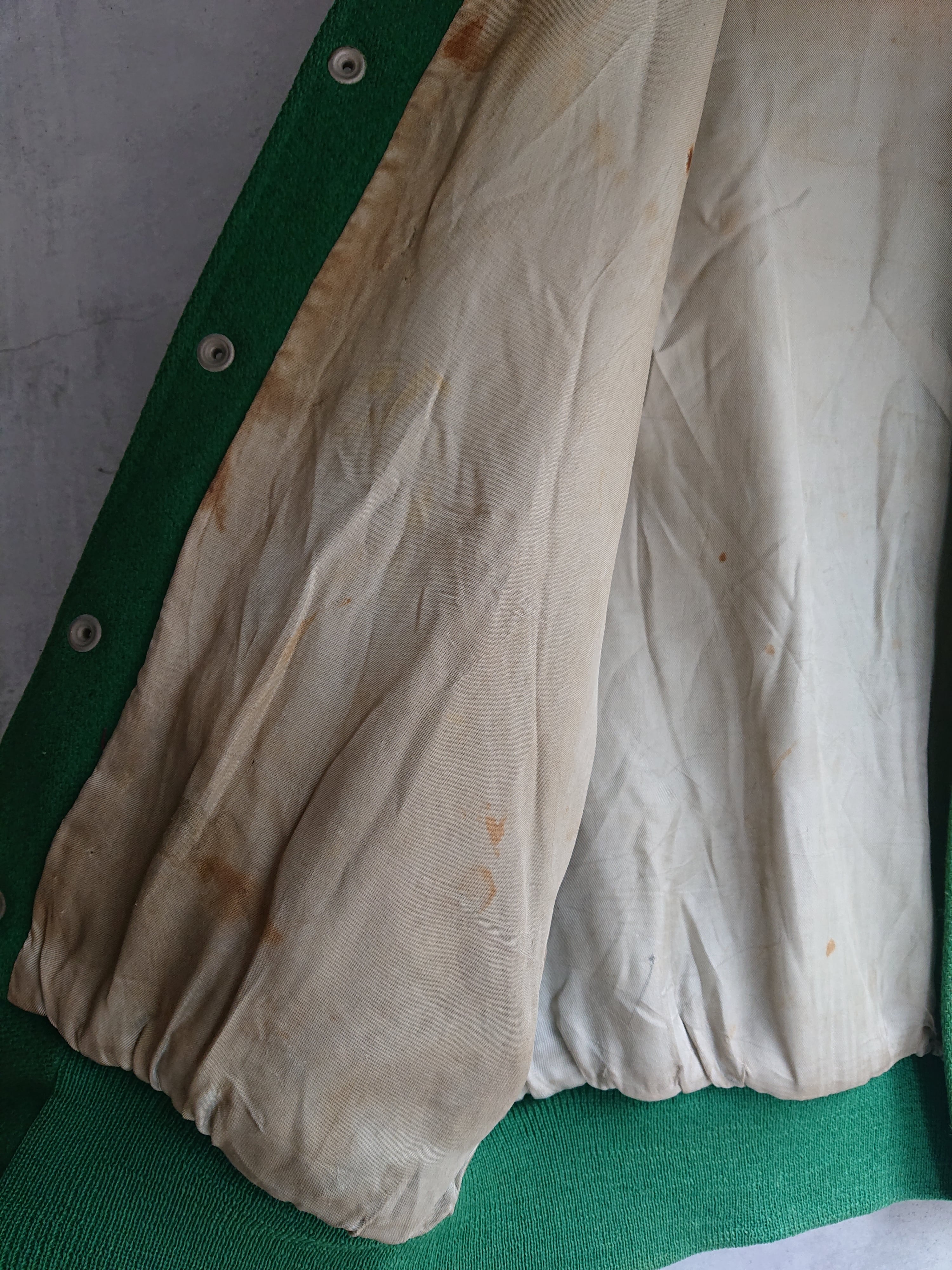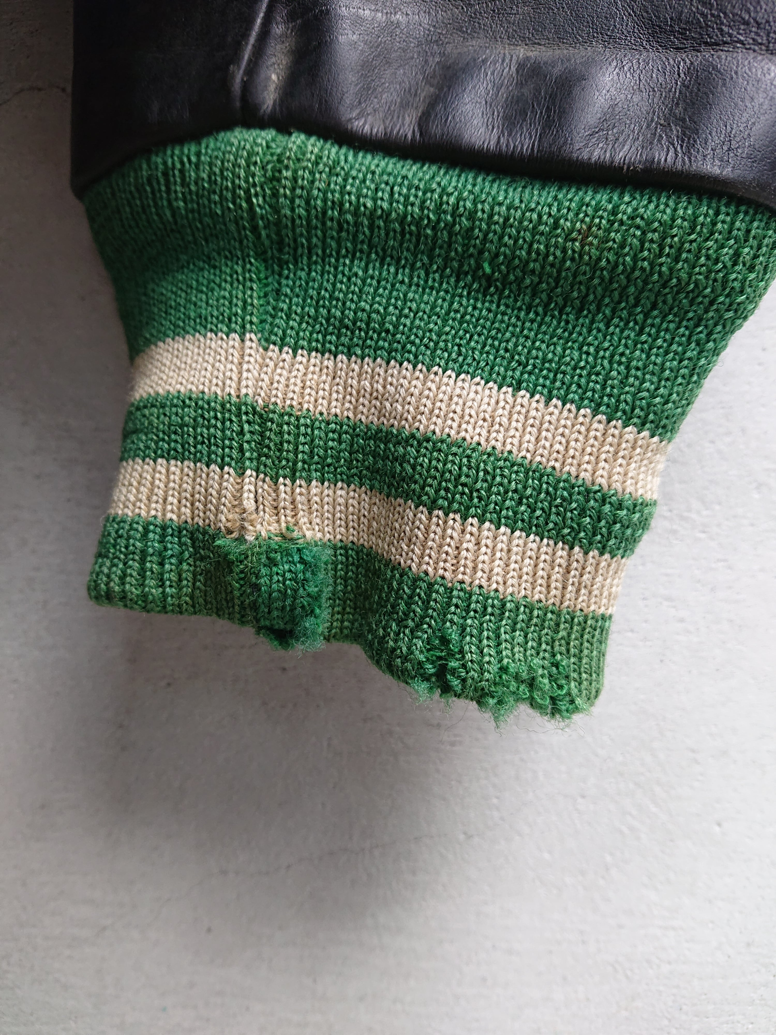 1950~60年代 VINTAGE AWARD JACKETになります。セットインタイプでグリーンボディにブラックレザーの袖。抜群の配色。何よりも右腕につくパイレーツワッペンがポイント!襟、袖リブに擦れ傷、全体に少し汚れがありますが着用に問題はありません。