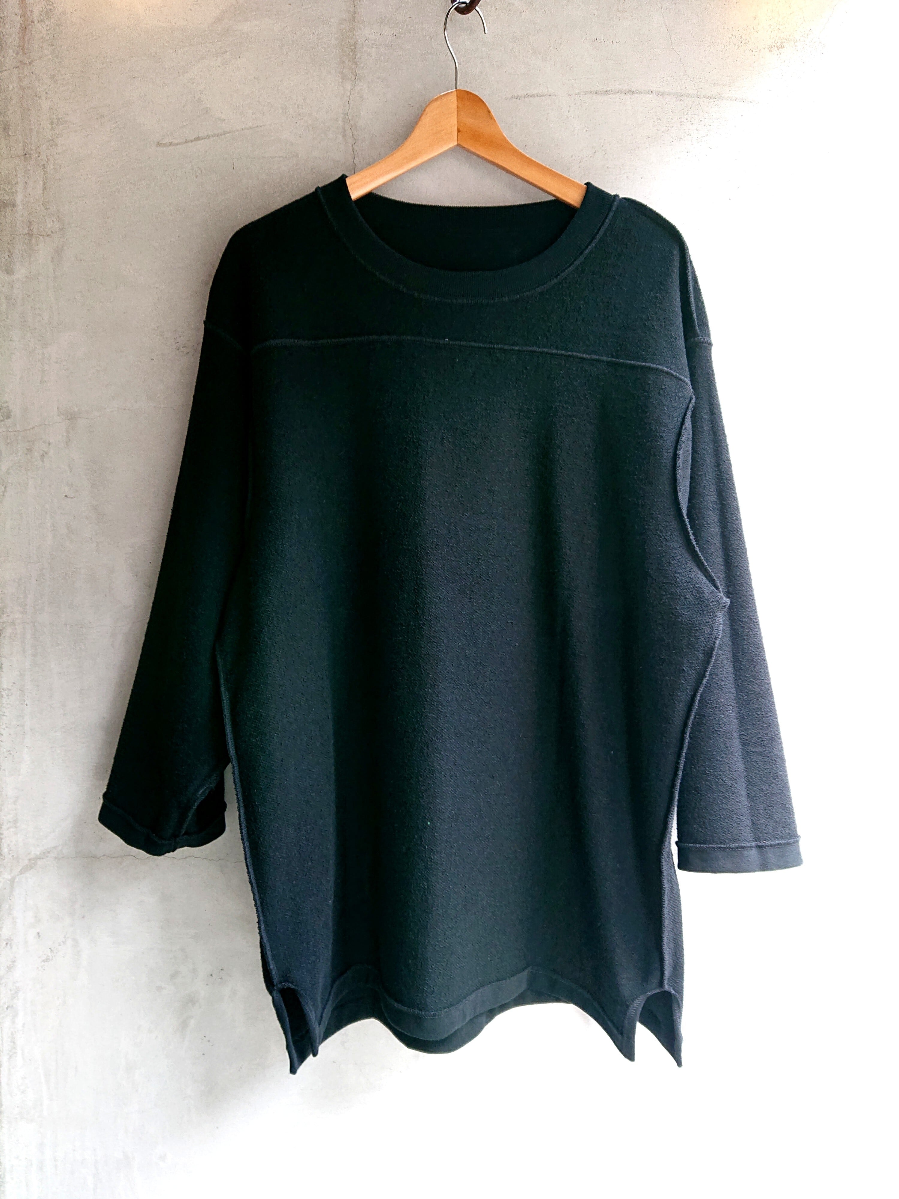 縫製仕様としての拘った部分としては、前後の切り替えの周囲のみをまたぎ2本針ステッチにて処理。その他の部分はロック始末にて表にステッチが入らない仕様にて製作。リバーシブル仕様でUKパンク的な要素もふまえ、裏面でも着用してもらえます。