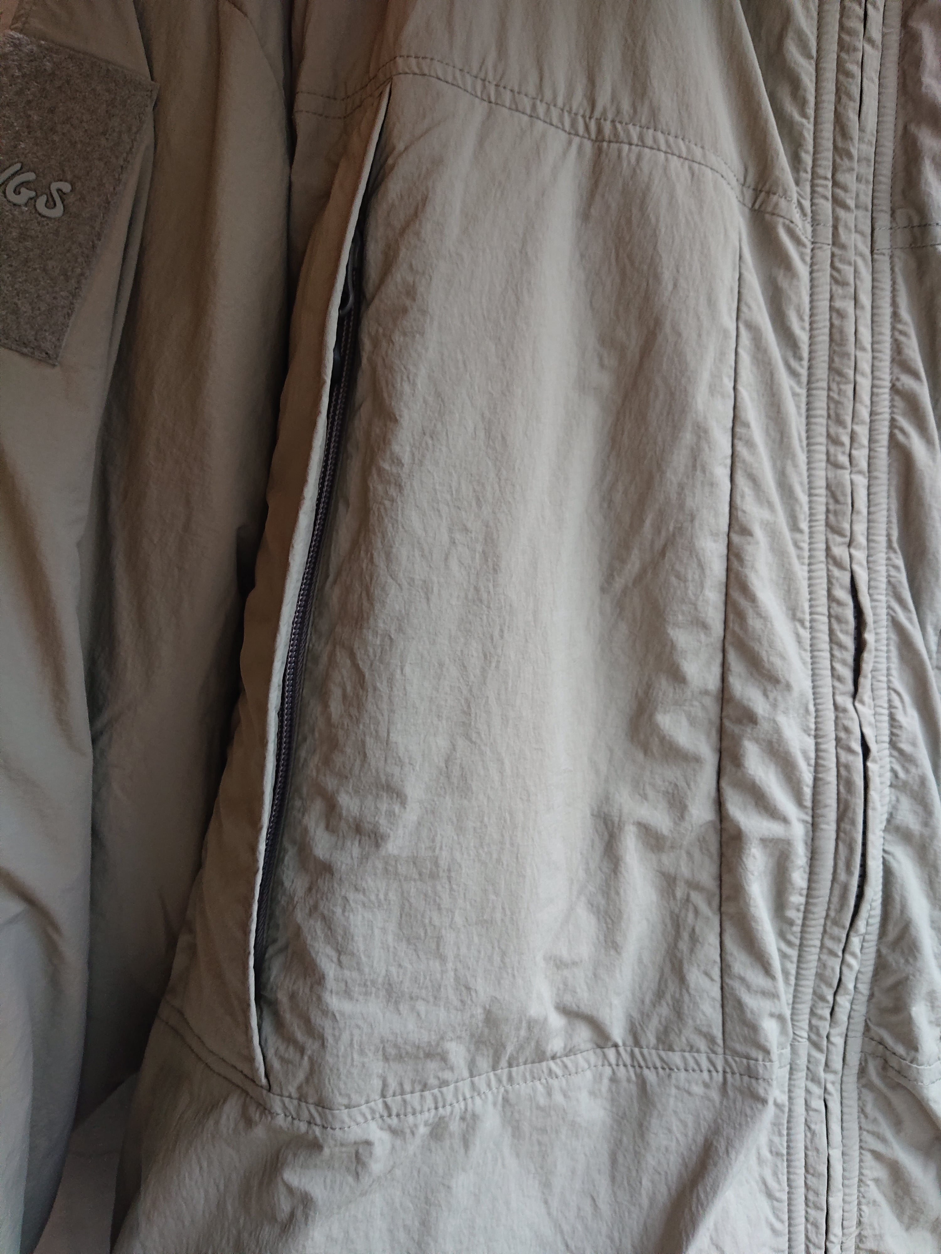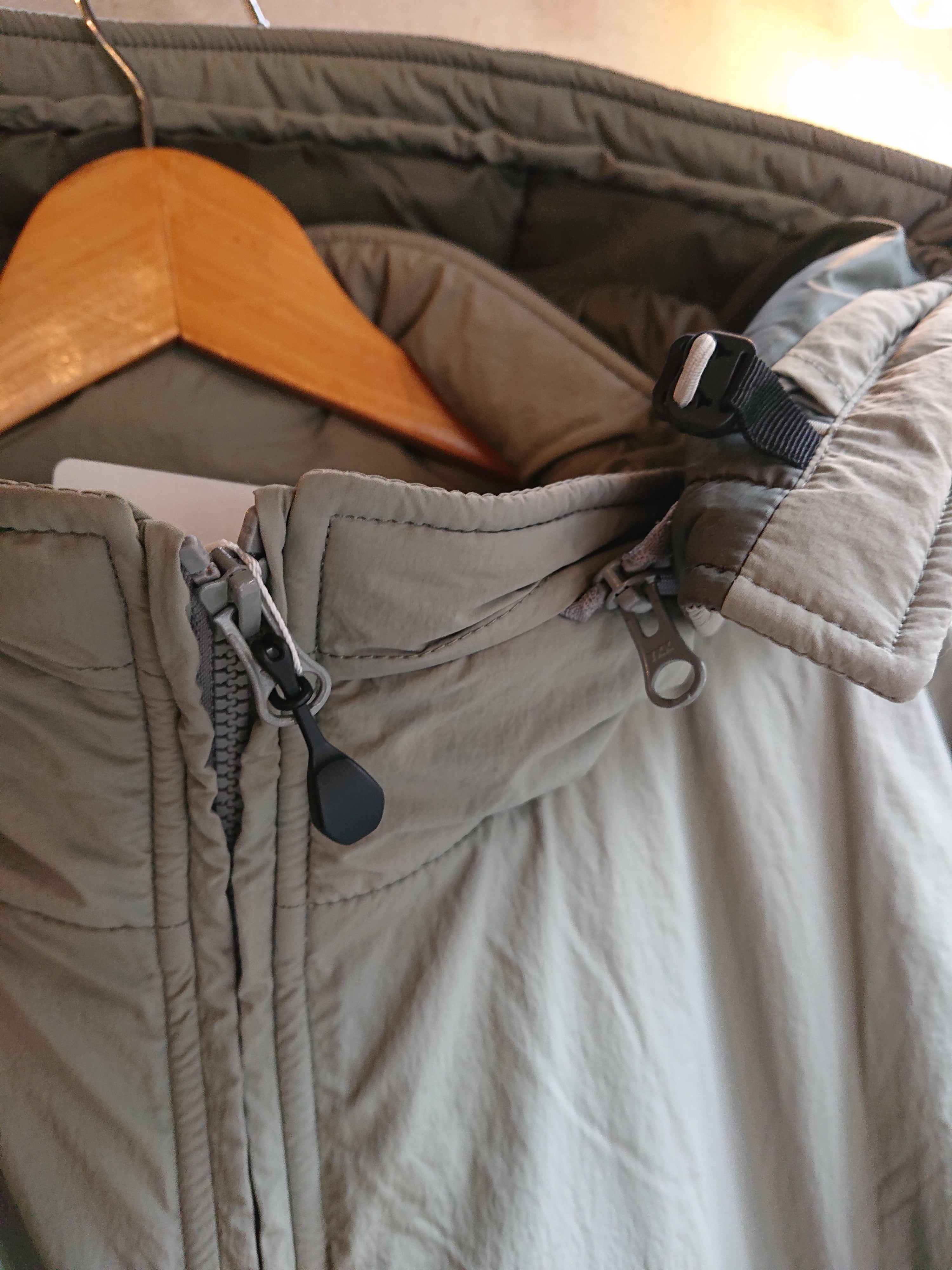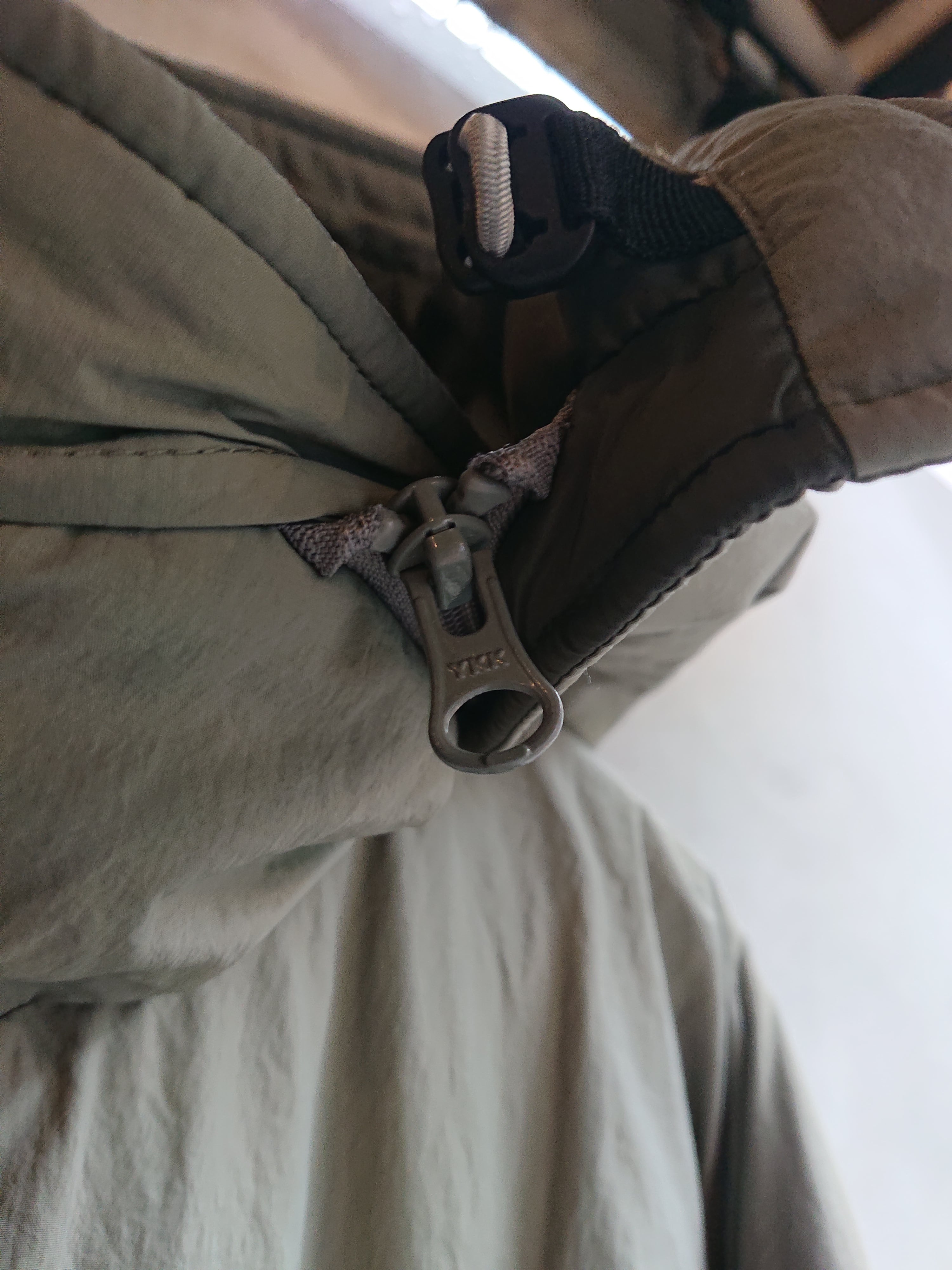 CMFとしては初となるアウトドアブランドに別注し たこの型は九州は博多にある名店SNUGから サンプル提供をしてもらって製作したTYPE1。米軍 のサプライヤーでもあるWILD THINGSから リリースされているモンスターパーカは長丈のTYPE 2が主流であるいま、TYPE1が次流になる と思い、製作。WILD THINGS側から再三パターンの 見直しを頼まれたが、今回は古着市場で枯 渇状態であるこの型できる限り忠実に再現する、い わゆるリプロダクションに比重おいて製作。