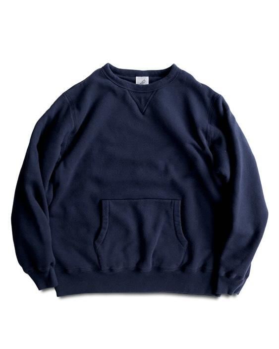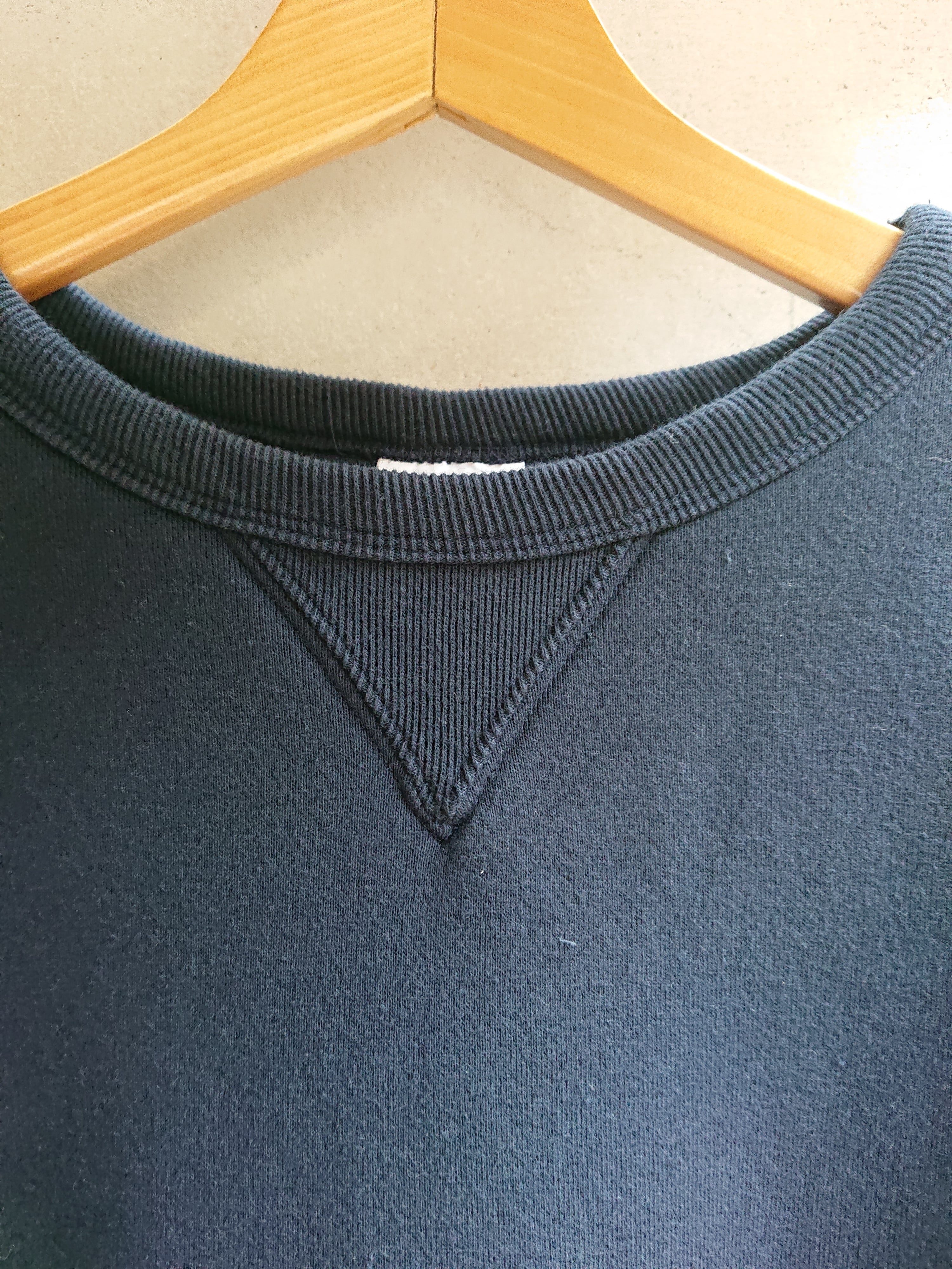 ヴィンテージ後付けパーカーのパーカーを削ぎ落としたデザインのクルーネックスウェット。裏毛の生地を贅沢にも2重で使用したダブルフェイスでボリュームのある1着。Vガゼットなどヴィンテージ仕様で仕立ています。