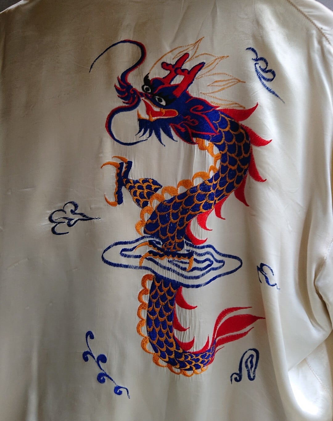 両腕にも龍の刺繍が入ります。リバーシブルタイプではなく、内側は柄入りの生地。刺繍のタッチからジャパンではないですが、ベトジャンやコリアジャンみたいなチープな刺繍ではありません。