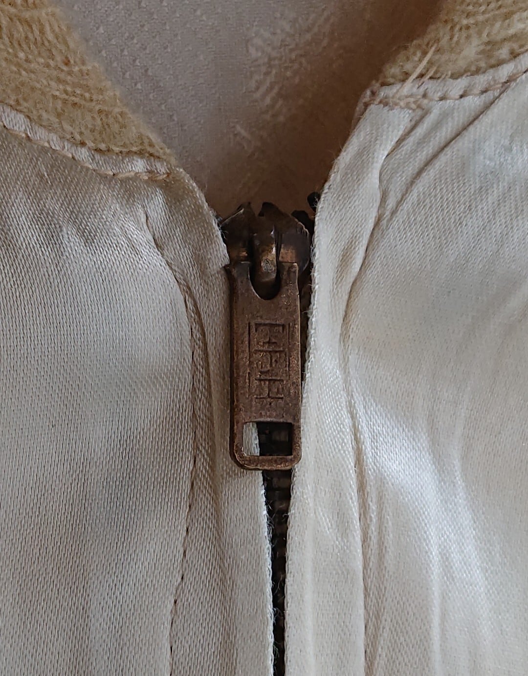 ホワイトボディなので数ヶ所うっすらと汚れありますが気にならない程度かと。あとリブにホール、左胸の虎の上に傷、裏地の右肩部分にヤブレがあります。人と違ったスーベニアをお探しの方には刺さってくれるジャケットかと思います。