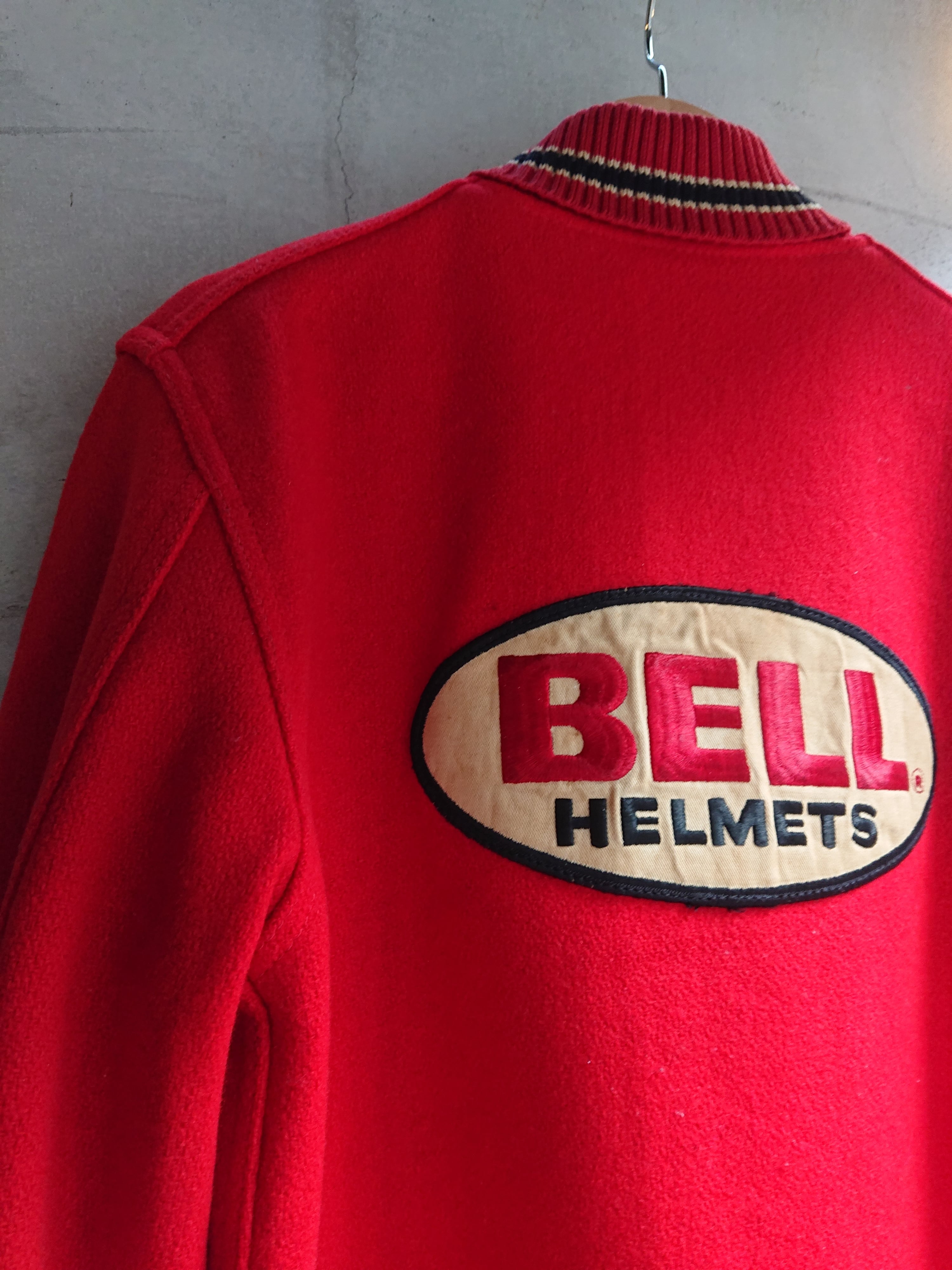 50~60年代 BELL HELMETSのウールジャケットになります。久しぶりの入荷になります!ハーフ丈のタイプと二型で今回紹介するのは裾がリブ仕様になったアワードジャケットタイプ。ボディはWhiting。フロントと背中にBELL HELMETSのワッペンがつきます。ワッペンだけとシンプルだと感じる方もいてると思いますが、BELLのワッペンの存在感が半端ないです。着用感あり。表と裏地に多少汚れもありますがそこも雰囲気。お探しの方も多いBELL HELMETSのジャケット。サイズ合う方は是非!!