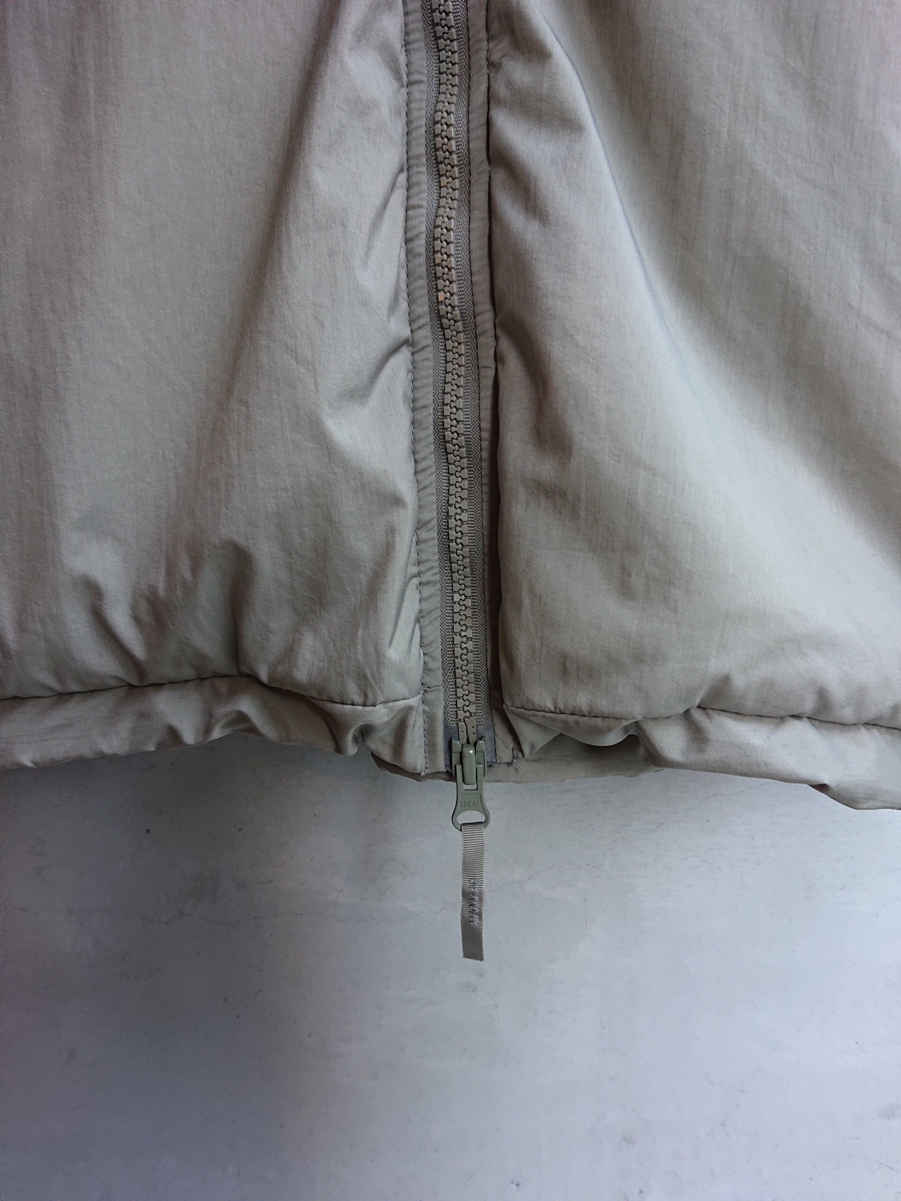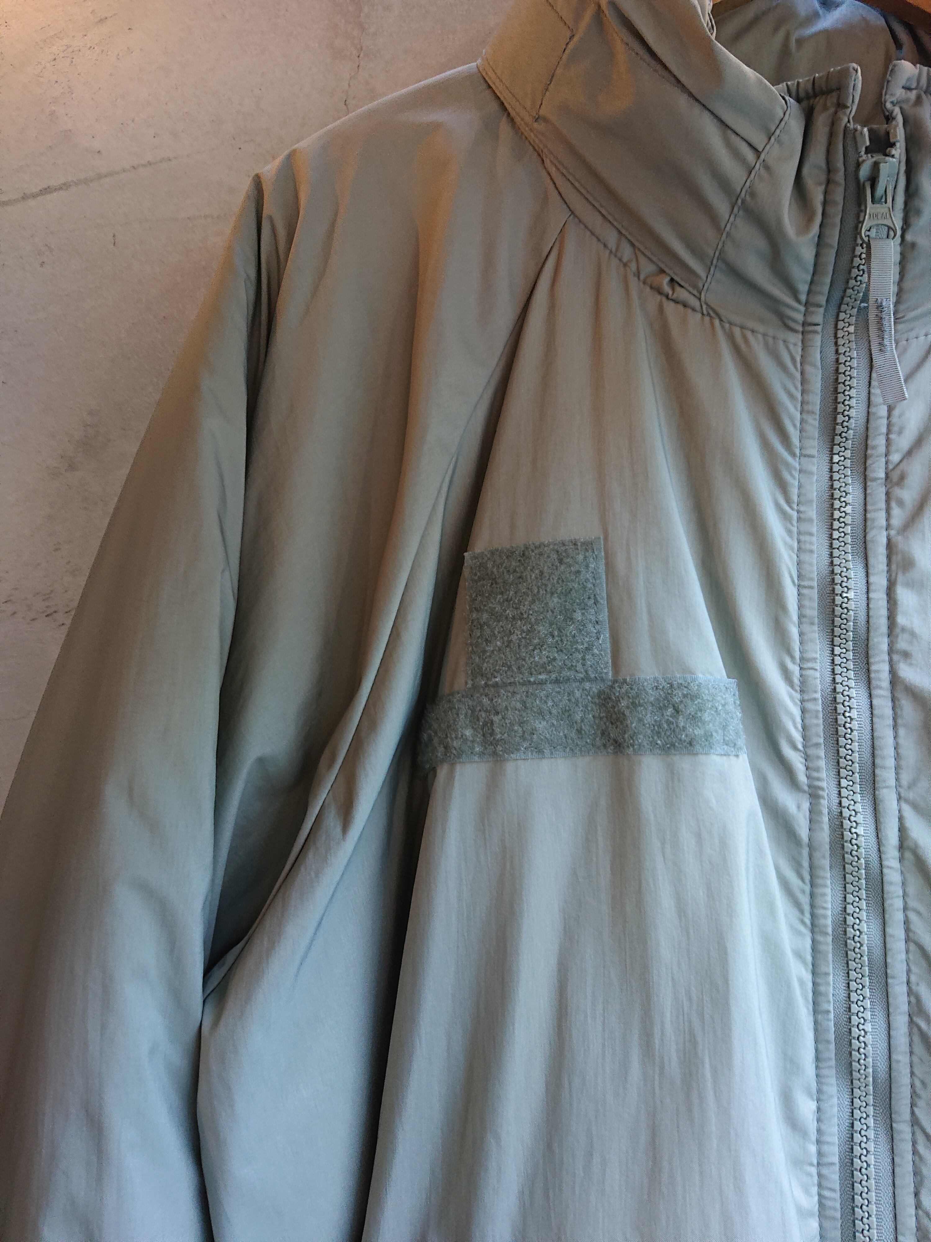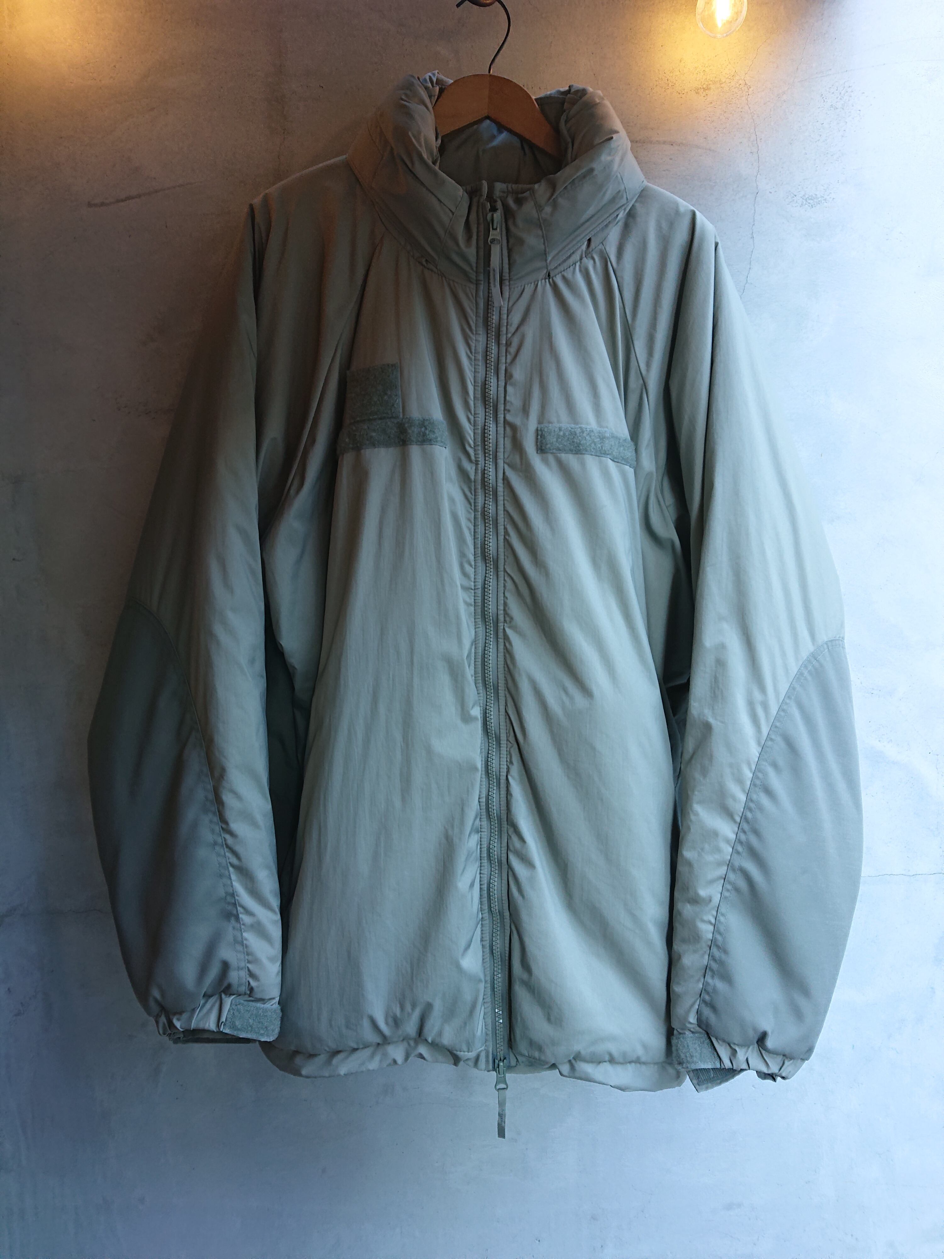 米陸軍が採用している張式寒冷地被服システム、ECWCS GEN III(Generetion3=第三世代)は、7種類のトップスと5種類のボトムから構成された、様々な気候やシチュエーションに対応したレイヤリングシステム。 中綿に使用されてるプリマロフトは軽量性と保温性ある優れもの。フードは襟の内側に収納されてます。寒くなってきた今、一軍になるジャケットです。コンディションはとても良いと思います。サイズ合う方是非!!