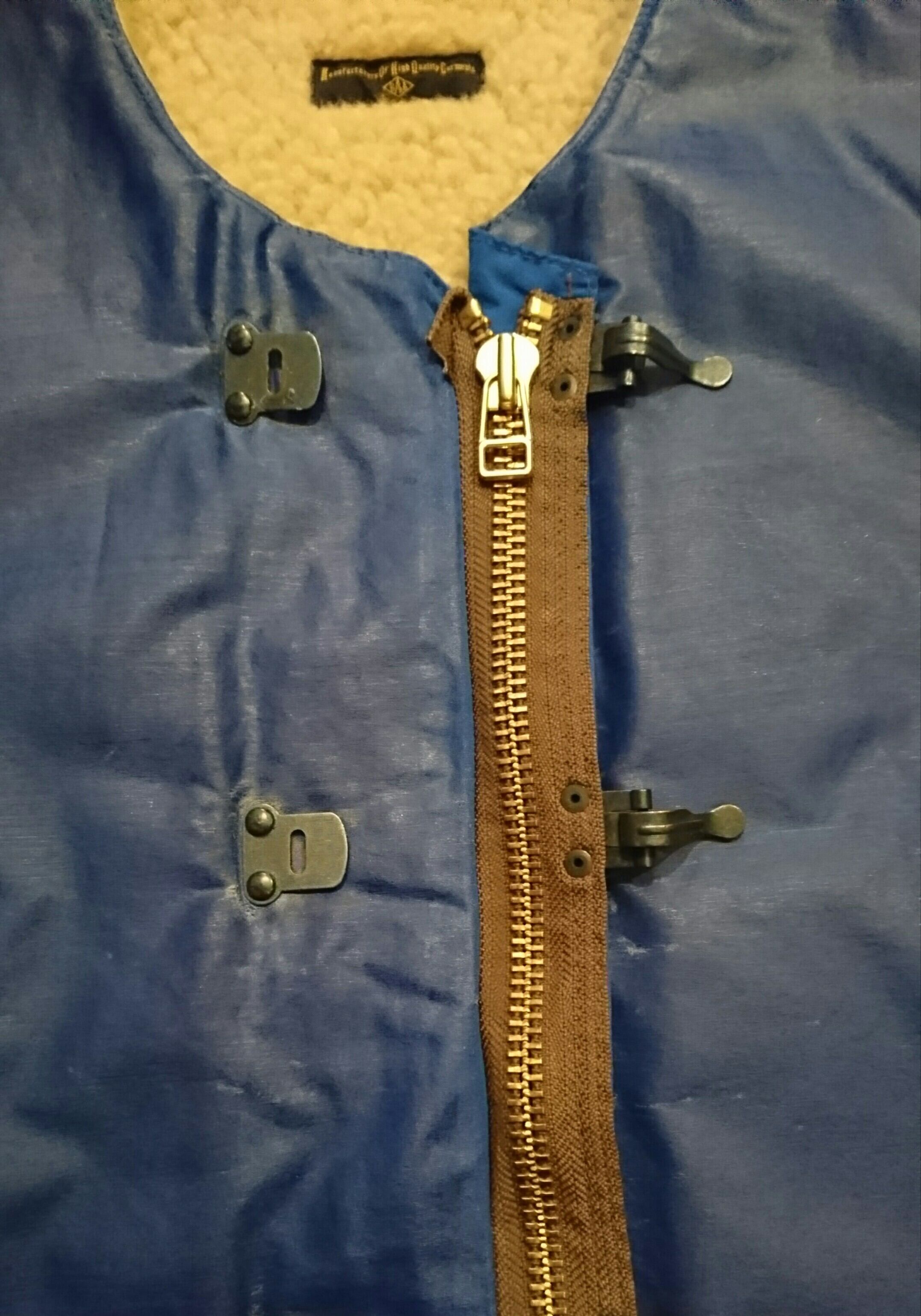 BAA "WAXED HOOK BOA VEST"。US NAVY然とした大振りなフック使用。更にYKKの10号サイズのブラスジッパーを特殊な仕様でウインドプルーフに仕立てております。防風、防水にも適してるワークベストです。