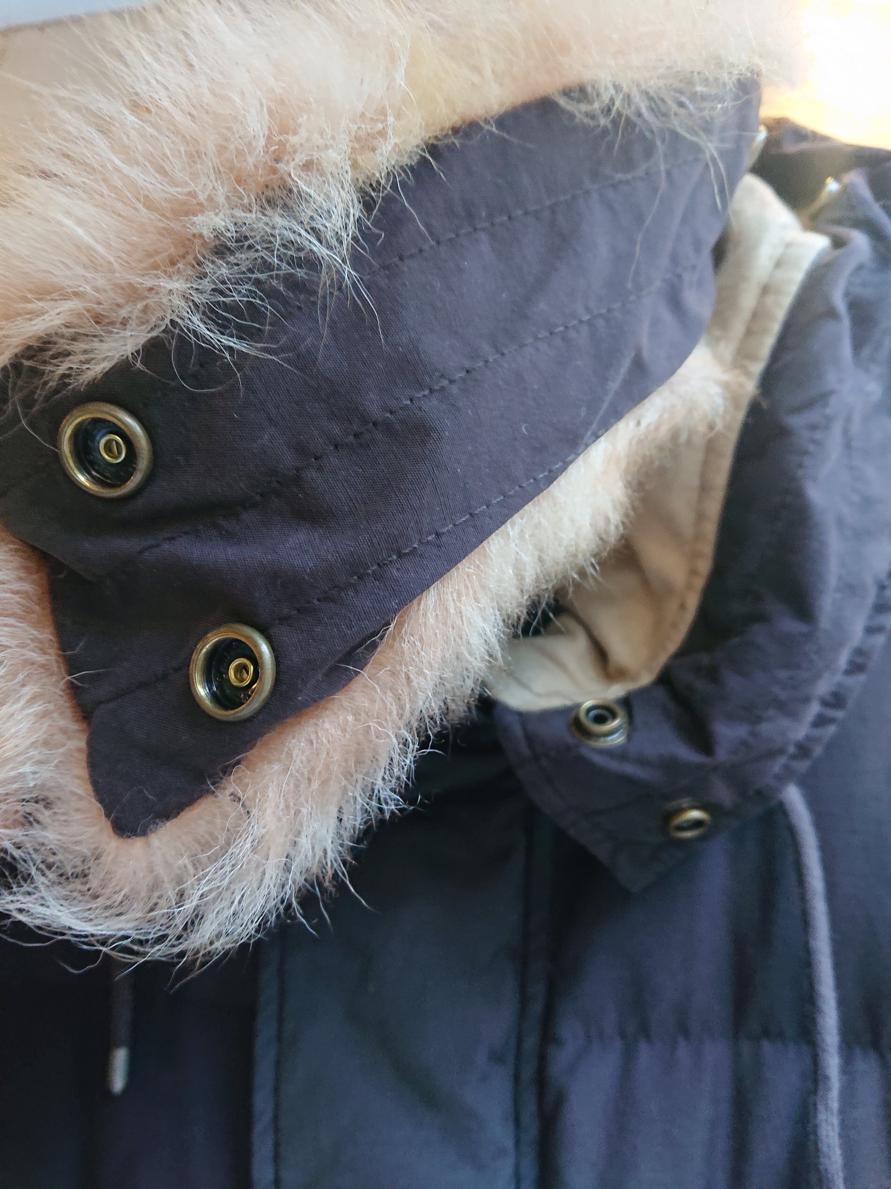 ミリタリージャケットを連想するデザイン。フード部分のリアルファーはスナップで取り外し可能。どちらかと言うと、ざっくりしたシルエットではなくややタイトな感じ。ブラックカラーなのも良いですよね。ダウン80% フェザー20%。
