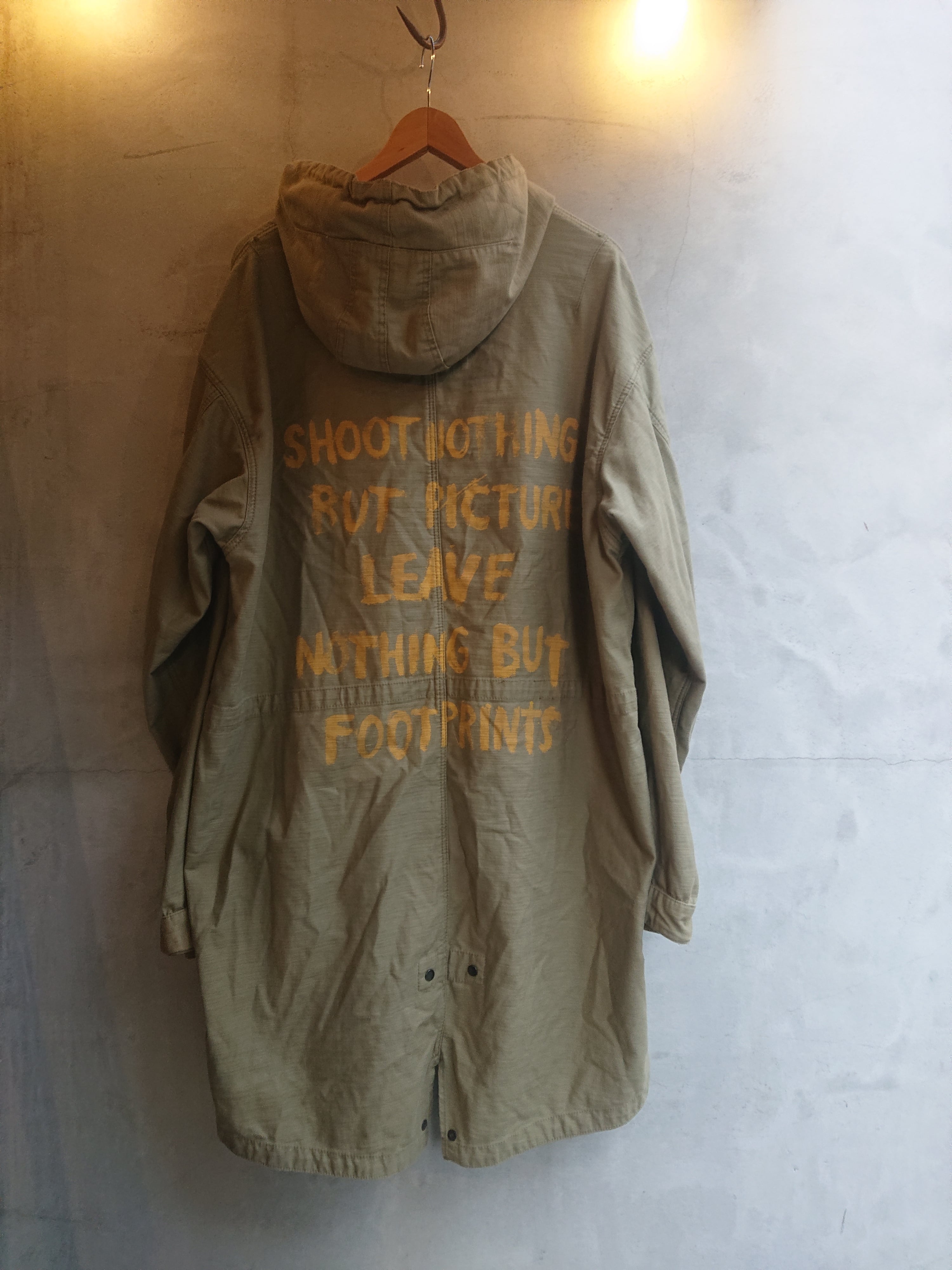 DENIM & SUPPLYのM‐51 PARKAタイプになります。色褪せたオリーブカラー、背中に入るイエローのプリントは見た目にもインパクトあります。