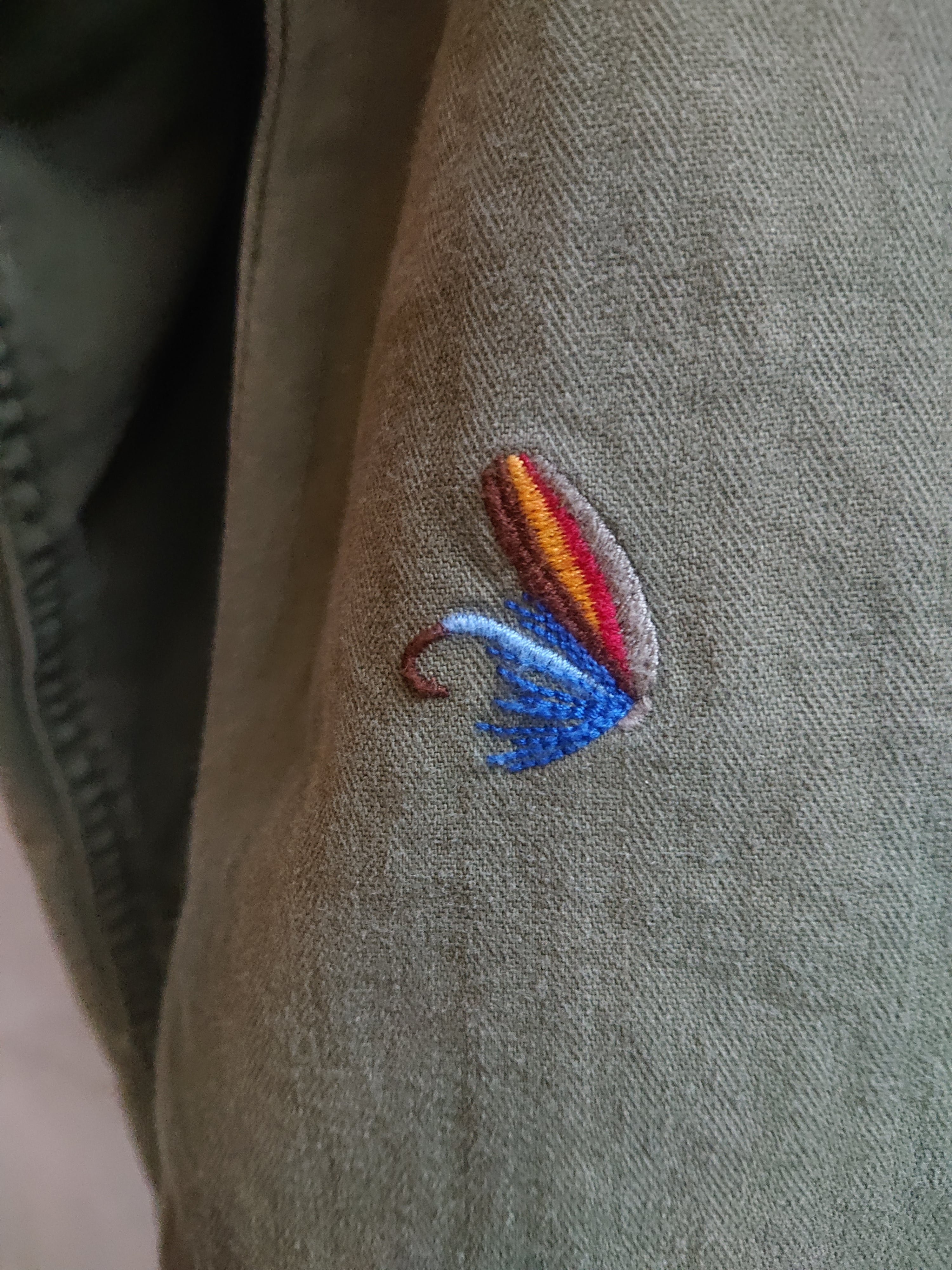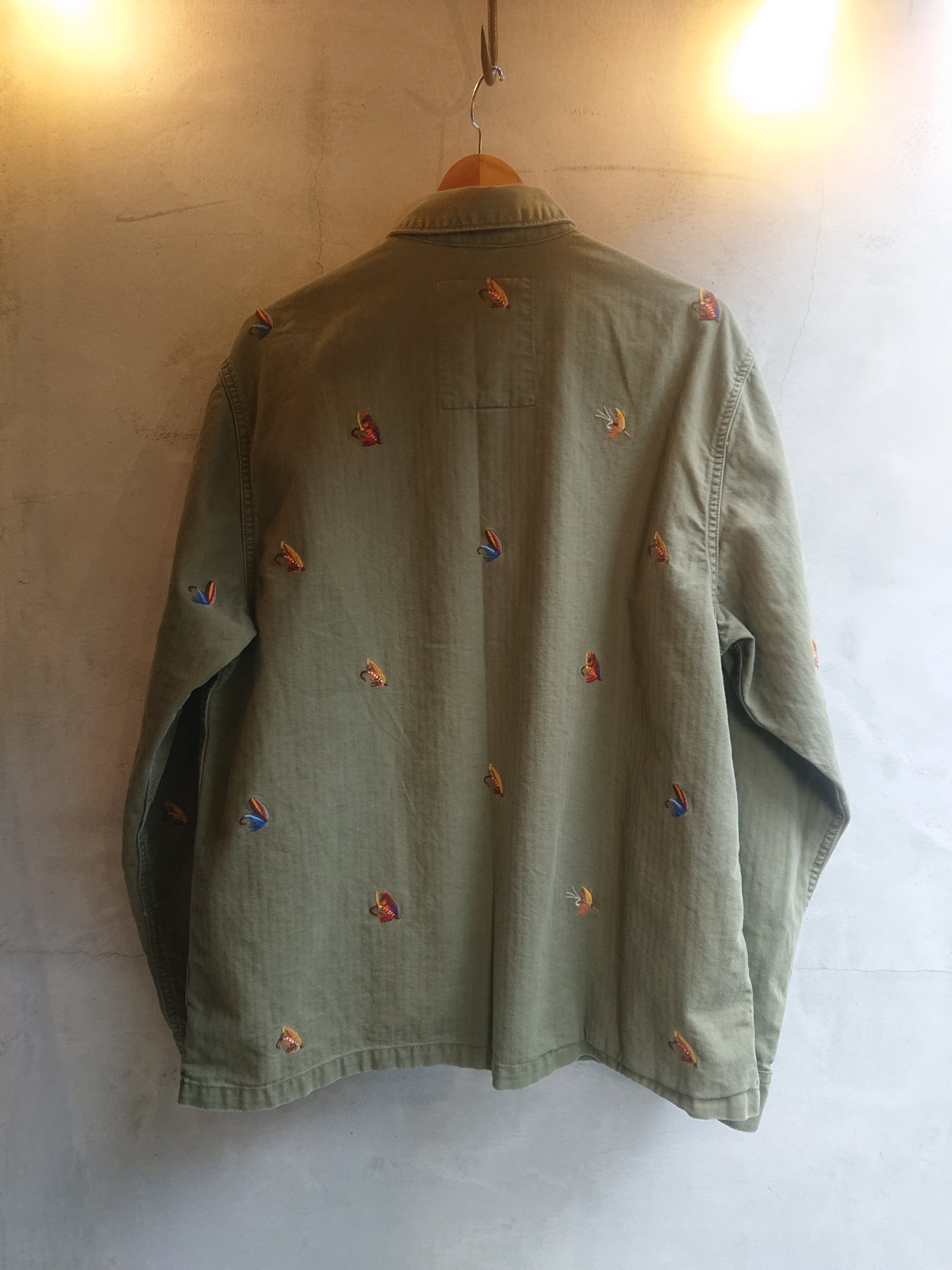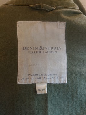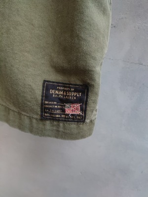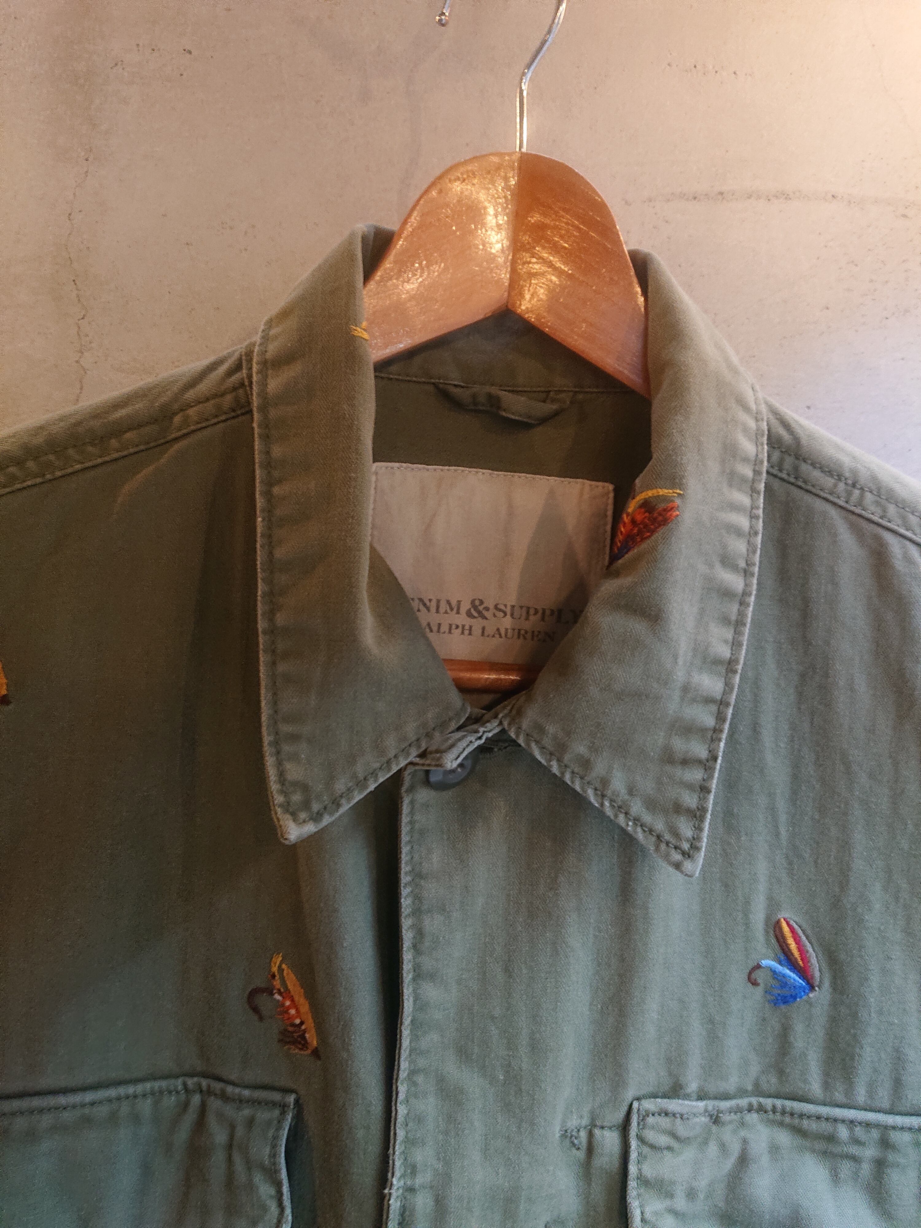 DENIM & SUPPLY Ralph Laurenミリタリーデザインのジャケットになります。シンプルなデザインでHBT生地。全体に毛鉤の刺繍が入ってるのがラルフローレンらしくもあり、このジャケットのポイントに。2011年にスタートし、2016年には終了したDENIM & SUPPLY。着用感ありますが、致命的な傷等はありません。