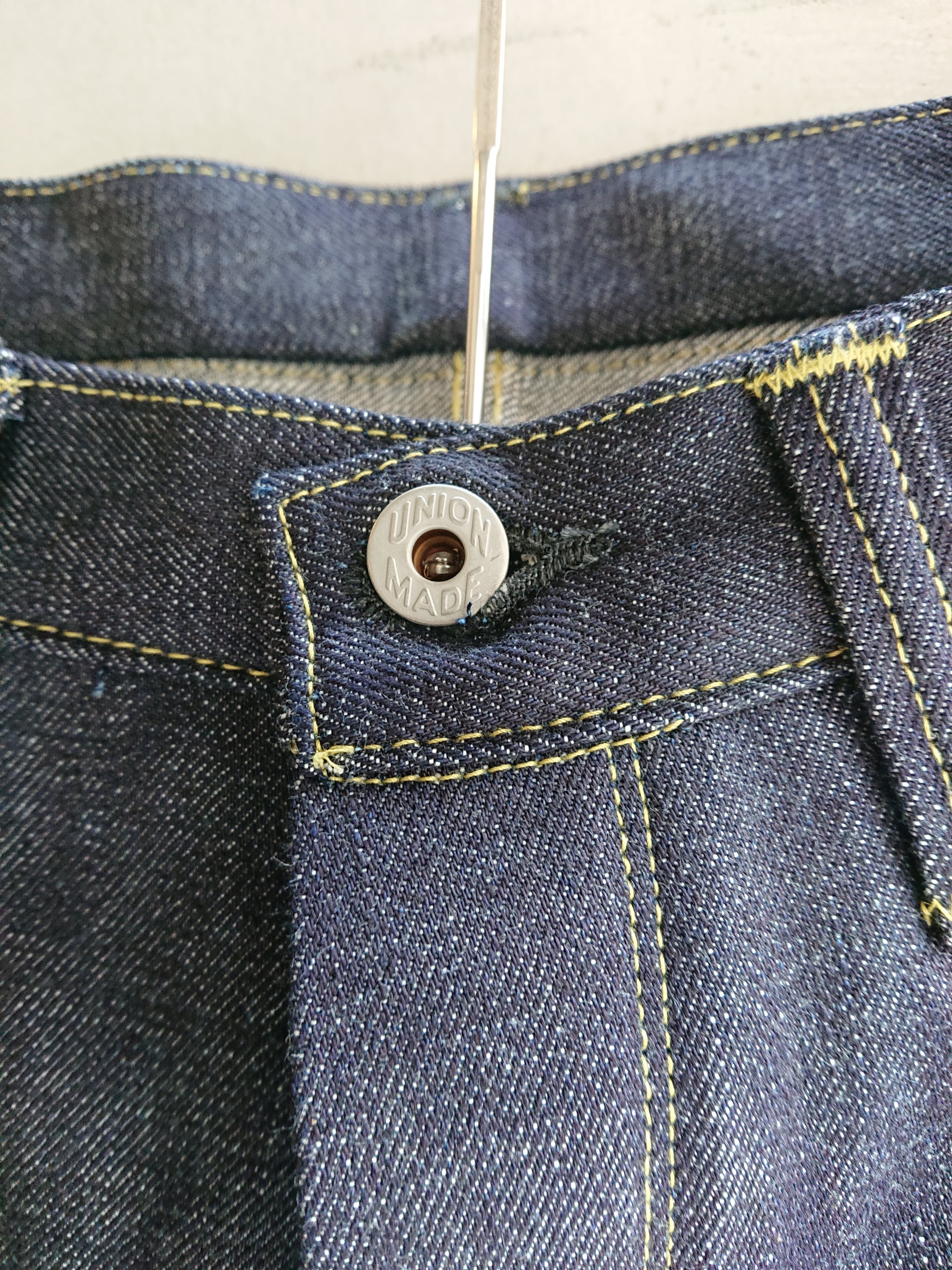 1940年代のカウボーイ達が愛用した、 極太シルエット&極上のデニムをオマージュ。縫製 は、30~40年代の繊細さと大胆さを、併せ持つた特 徴的な縫製をサンプリング。デニム生地は、40年代 を意識した、洗い込むと凹凸が現れる13.5oz右綾デ ニムを採用。