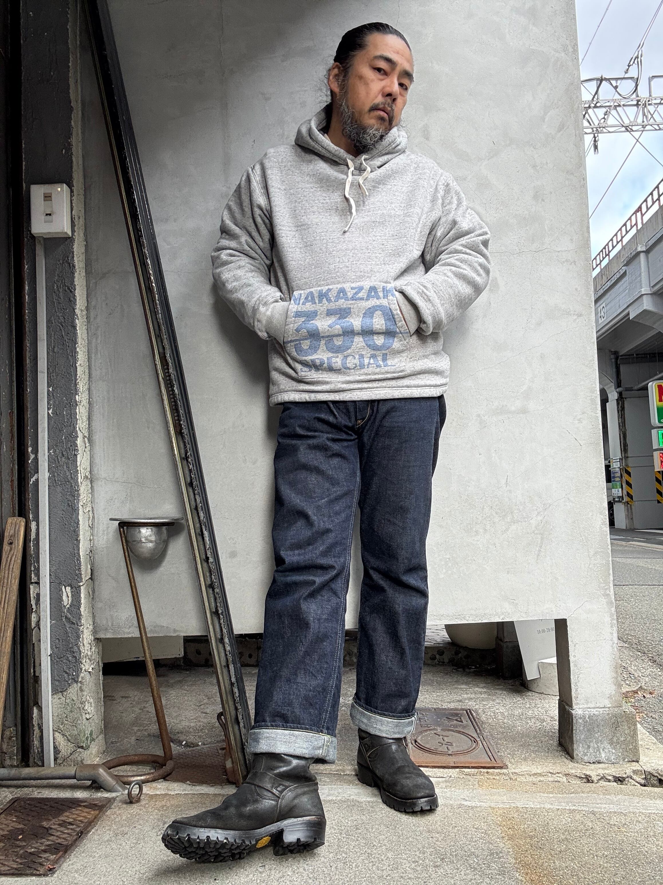WASEW × BAA COSTUME MFG. "NAKAZAKI M/C HOODIE SWEAT" GRAY/BLUE